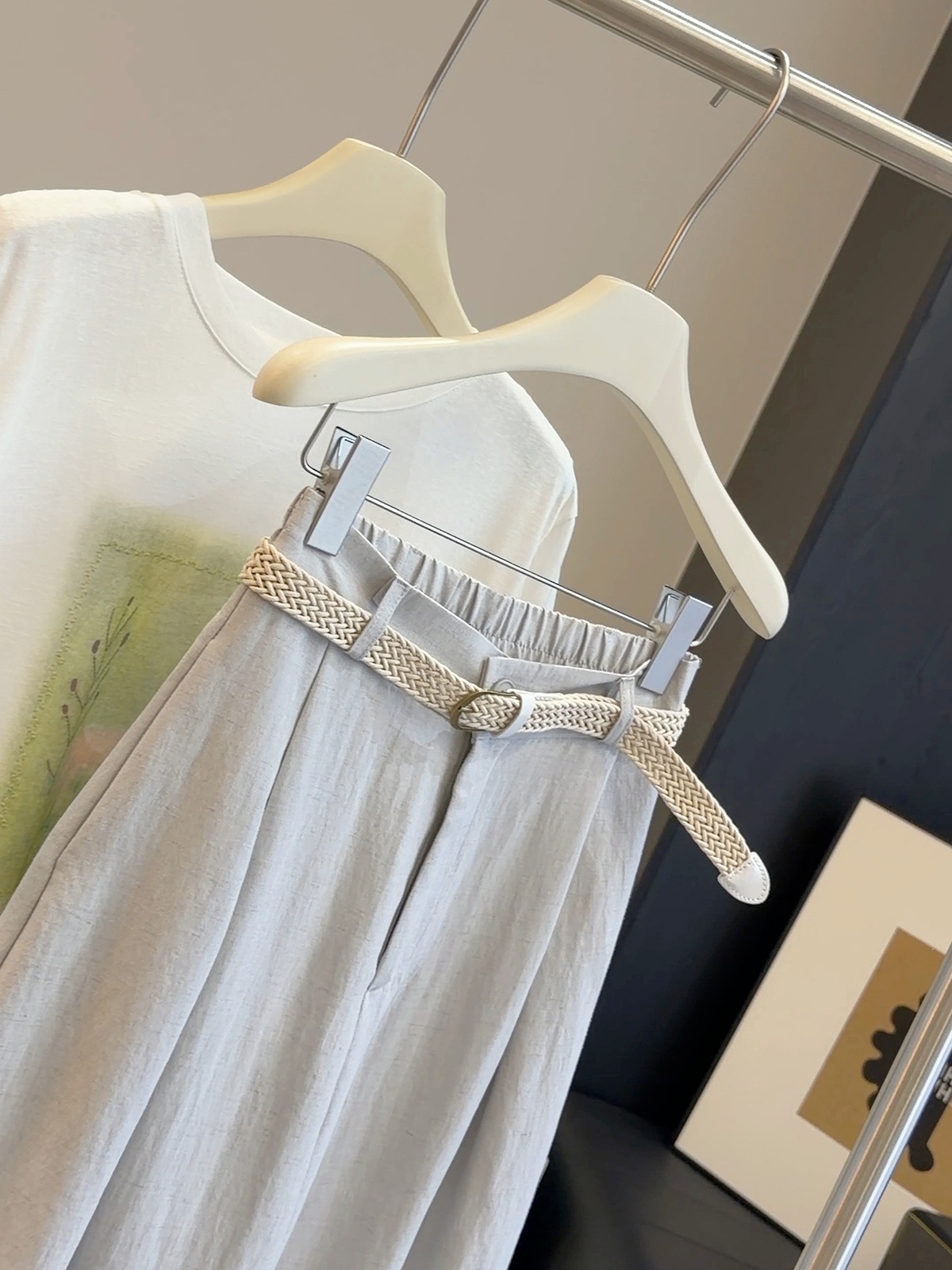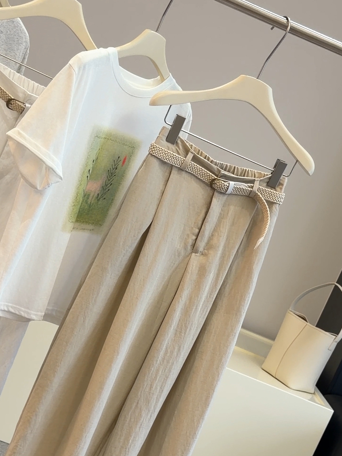 여름 고급 센스 세트 착용 가져 가라. 한국 스타일 패션 루즈핏 반팔 티셔츠 스트레이트 넓은 다리 8 점 바지 캐주얼 세트