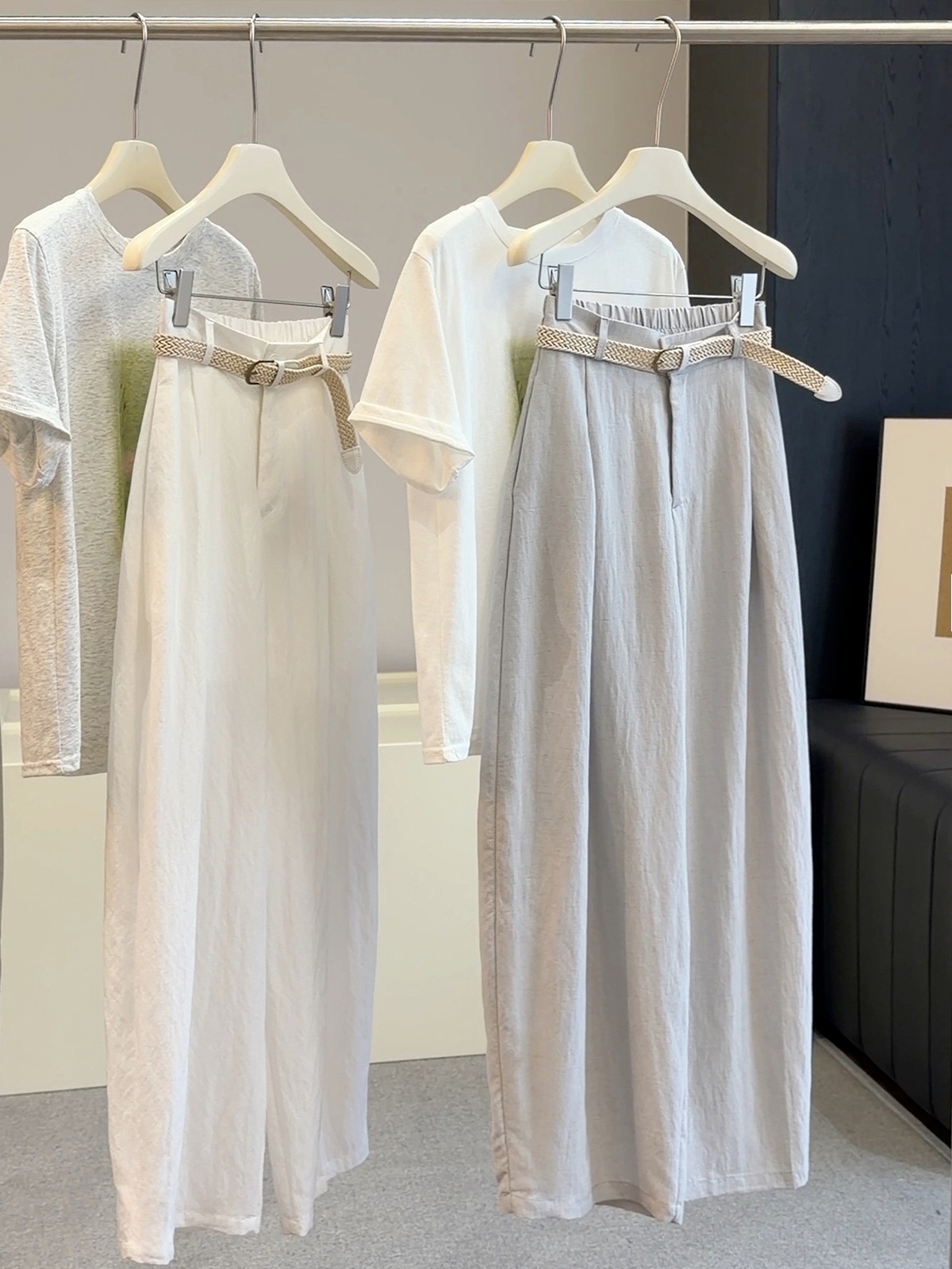 얼음 실크 아마 모통이 칼 와이드 레깅스 바지 여름 얇은 스타일 2026 새로운 폭발 루즈핏 슬림해 보이는 캐주얼 낫 바지