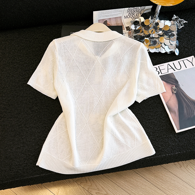 오래된 돈 바람 2026 여름 새로운 라운드 넥 민소매 홀로우 아웃 자수 폴로 칼라 얼음 실크 티셔츠 주간 실크 아마 니트 스웨터 여성