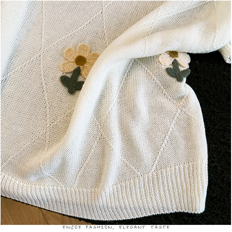 2026 여름 새로운 패션 다용도 라운드 넥 루즈핏 꽃 자수 얼음 실크 티셔츠 주간 실크 마 니트 스웨터 맨위 여성
