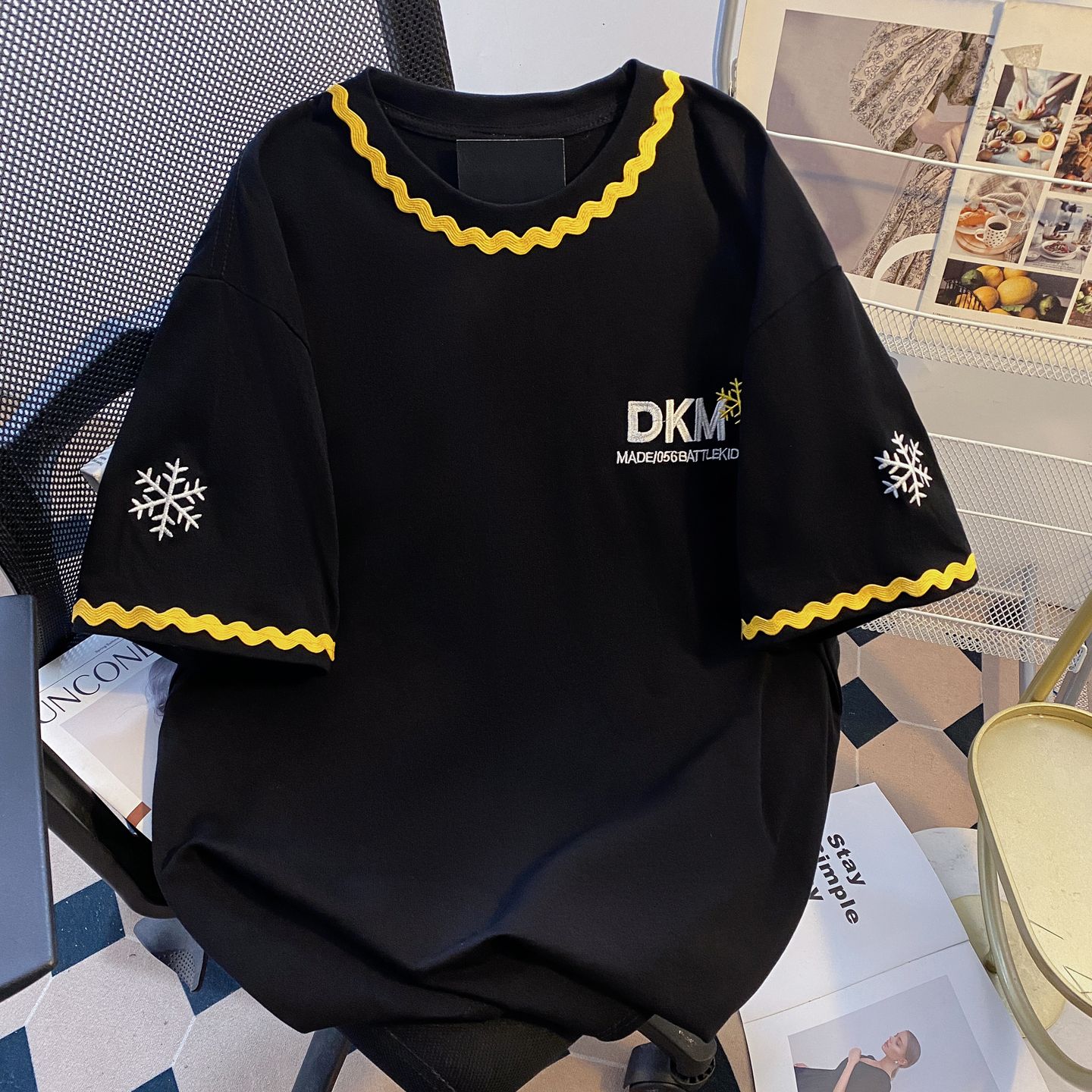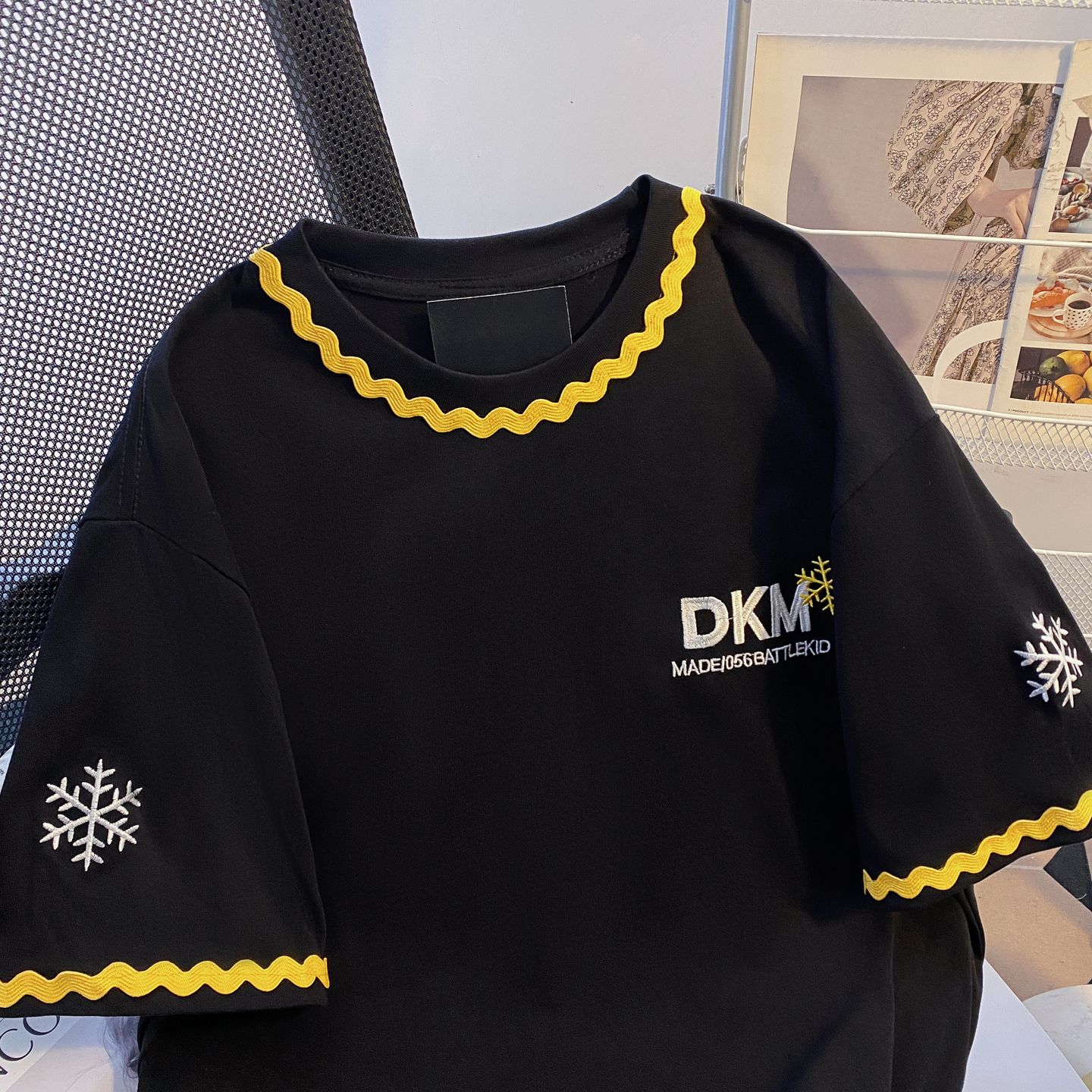 200그램 순면 이후 패키지 칼라 색상 색 후광 염색 루즈핏 티셔츠 여성 디자인 센스 프린트 슬림해 보이는 맨위 트렌디