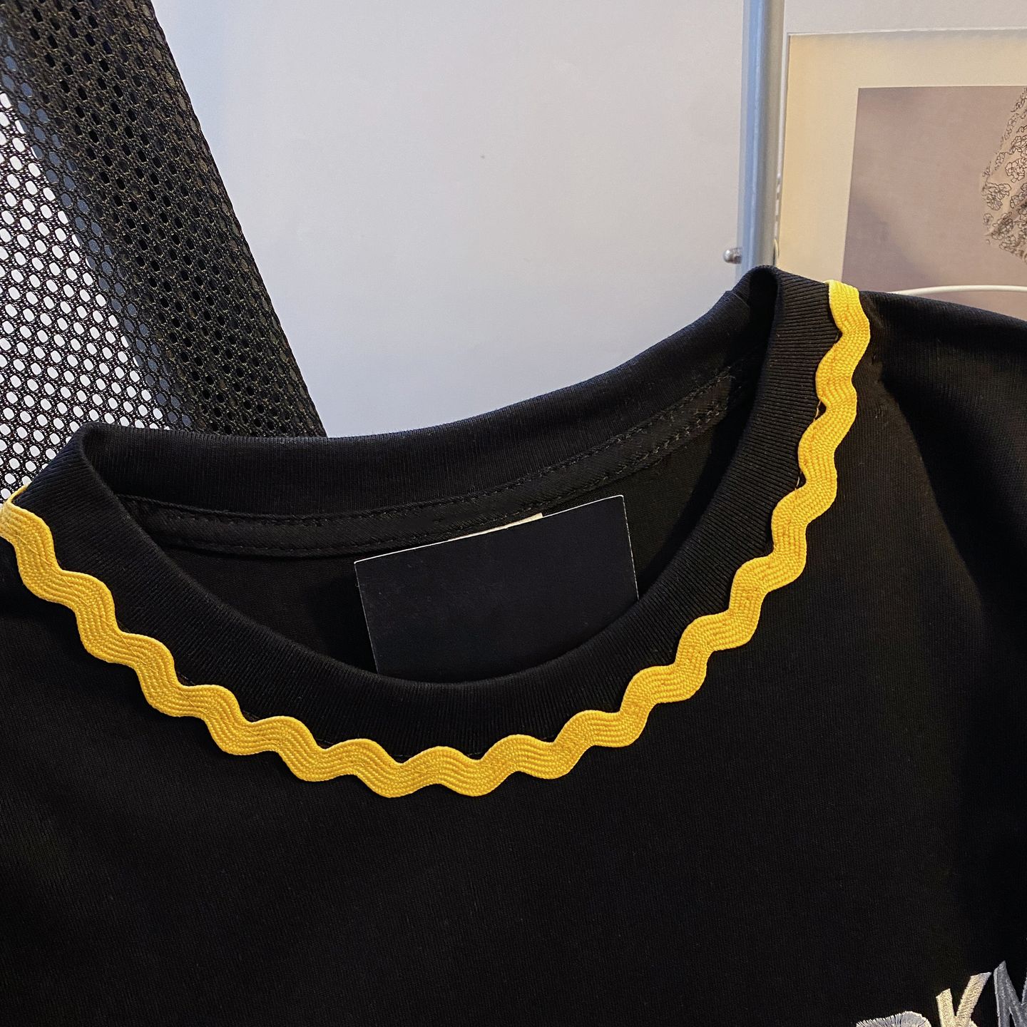 200그램 순면 이후 패키지 칼라 체크무늬 배색 삽입 어깨 반팔 티셔츠 여성 2026 여름 프린트 맨위