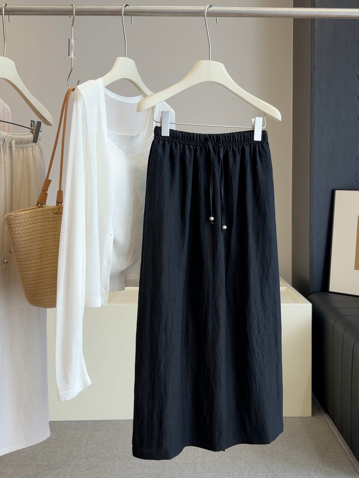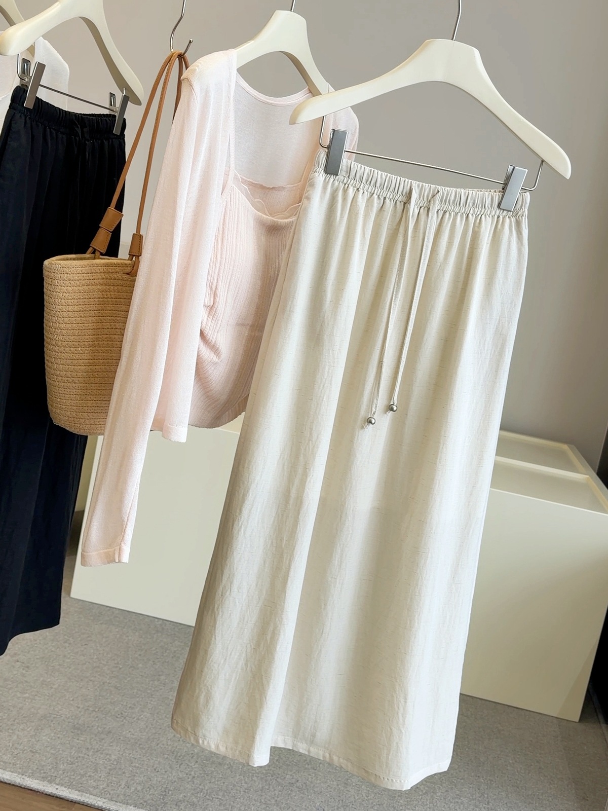 고급 분위기 센스 깃발 실 반신 스커트 여성 여름 2026 새로운 하이웨이스트 다용도 슬림해 보이는 캐주얼 우아한 A라인 스커트