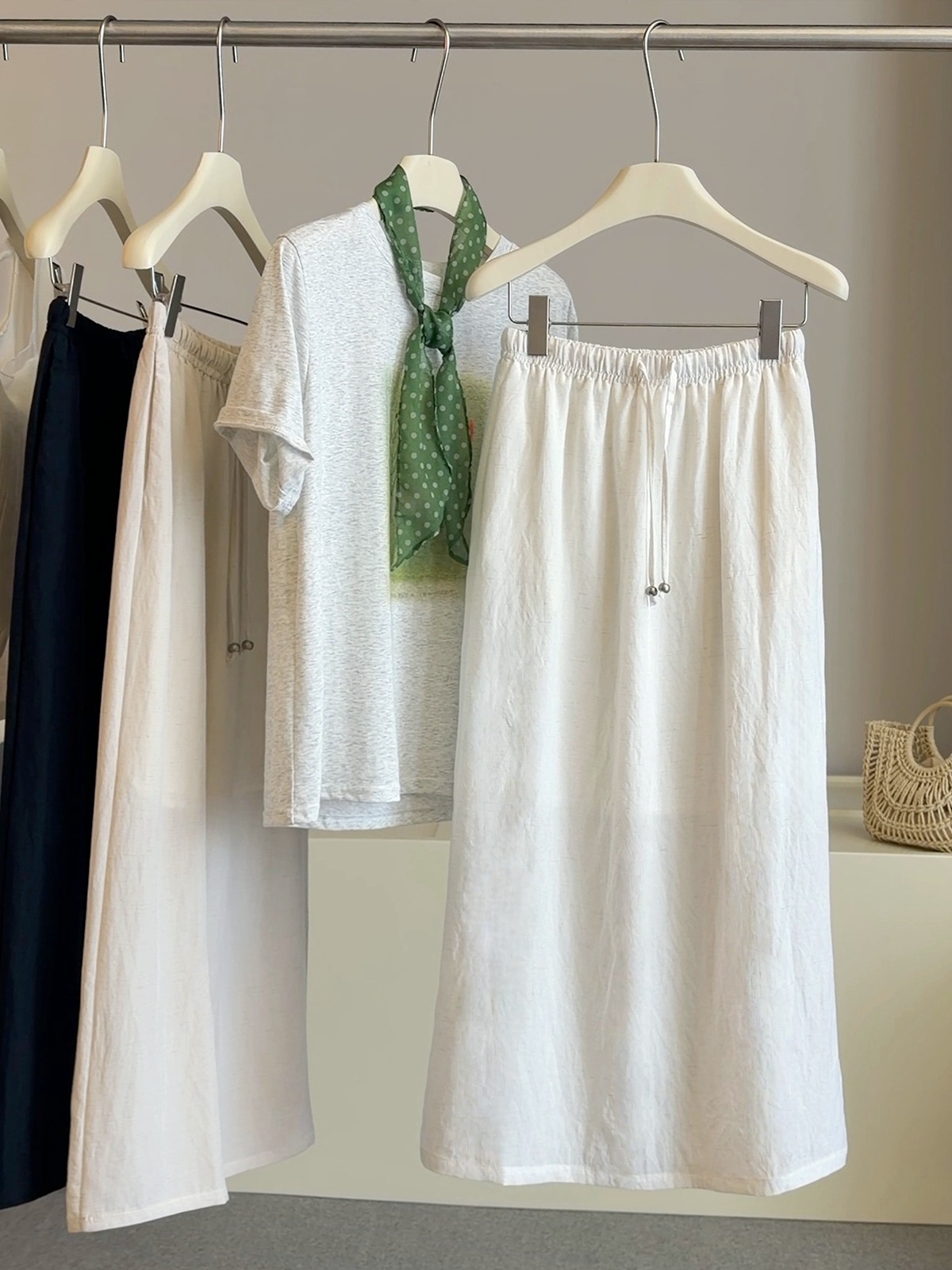 화이트 면 린넨 이후 트임 반신 스커트 여성 여름 2026 새로운 하이웨이스트 슬림해 보이는 캐주얼 다용도 중간 길이 스트레이트 치마