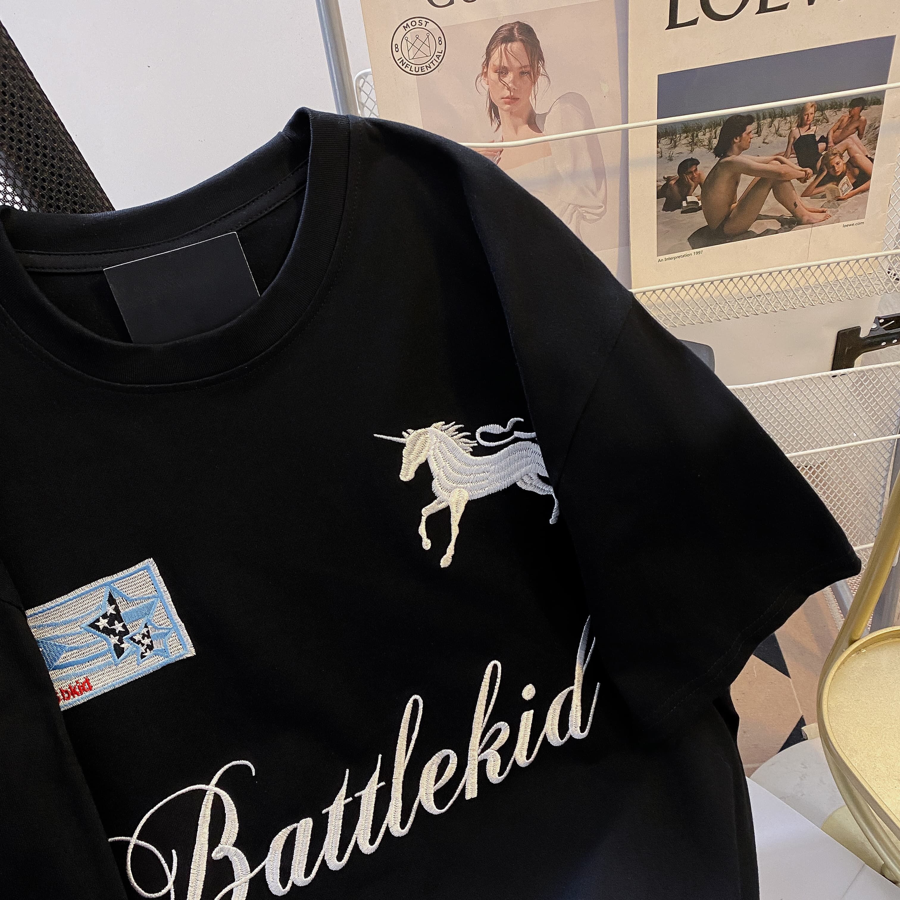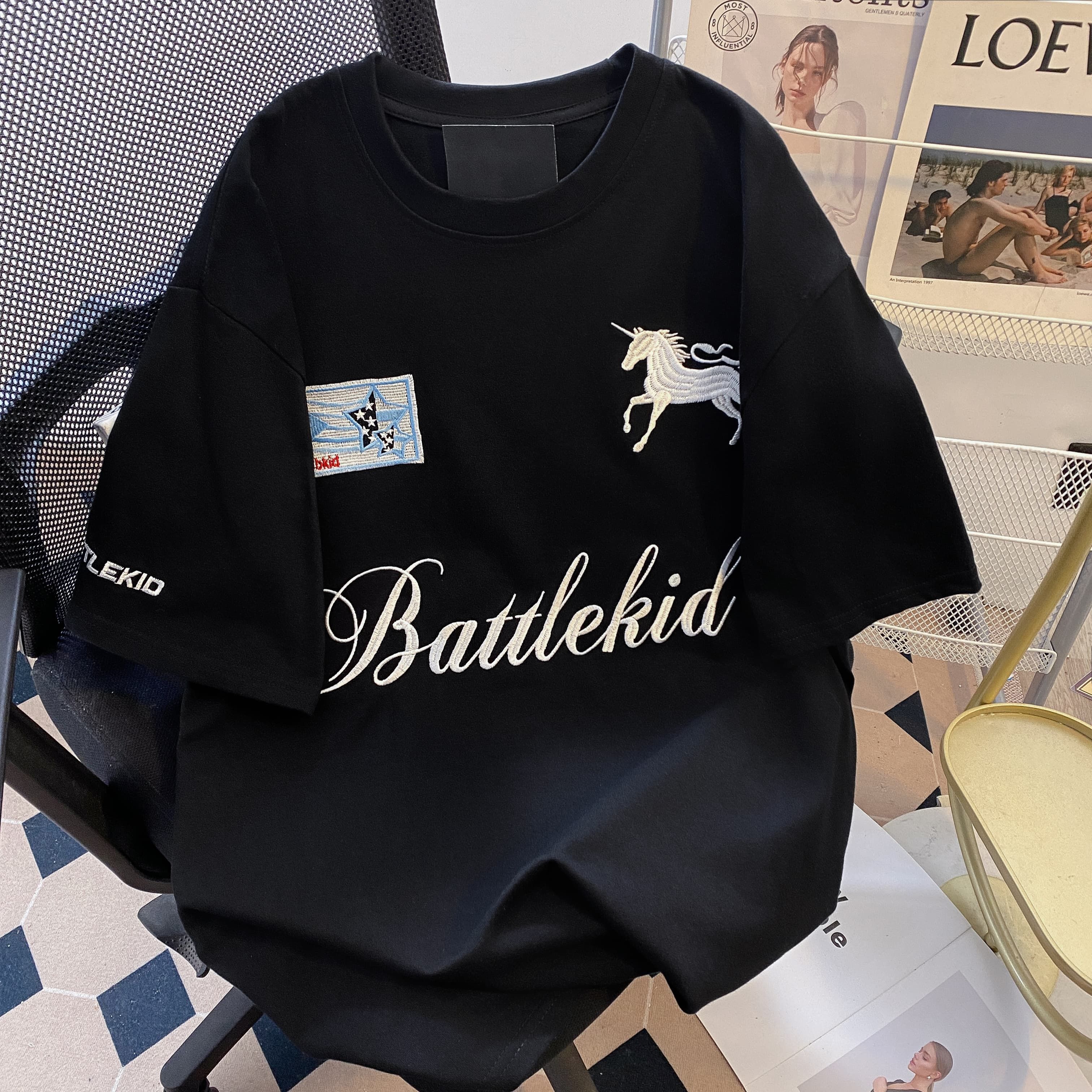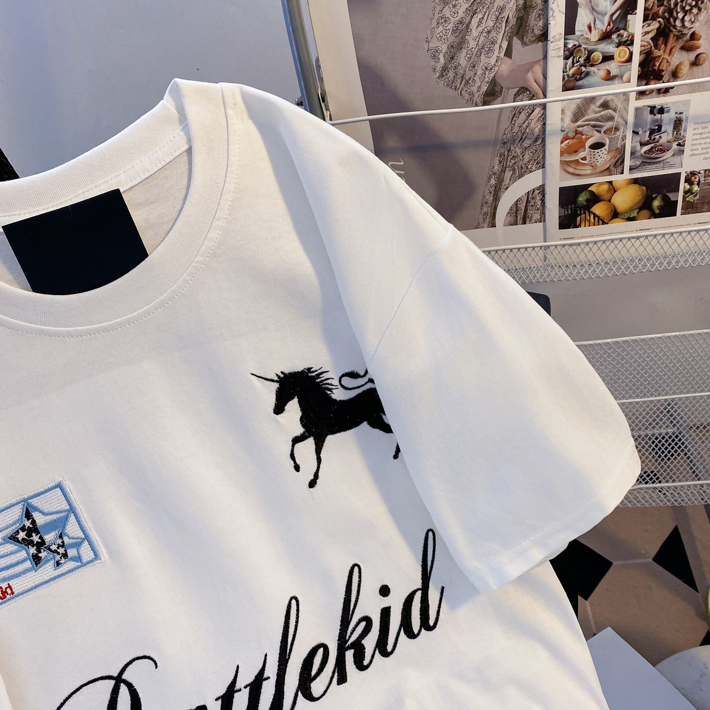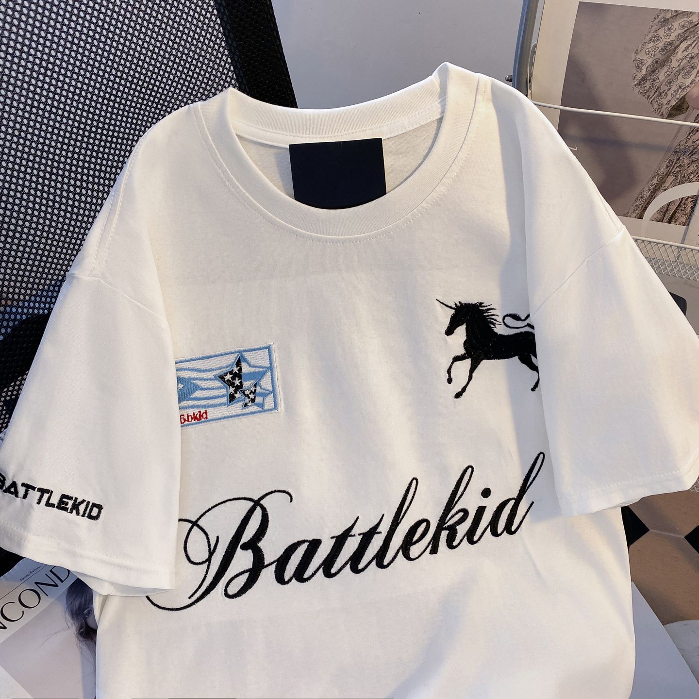 실사 2026 순면 반팔 티셔츠 여성 여름 새로운 한국 스타일 작은 말 자수 빅 사이즈 여성 의류