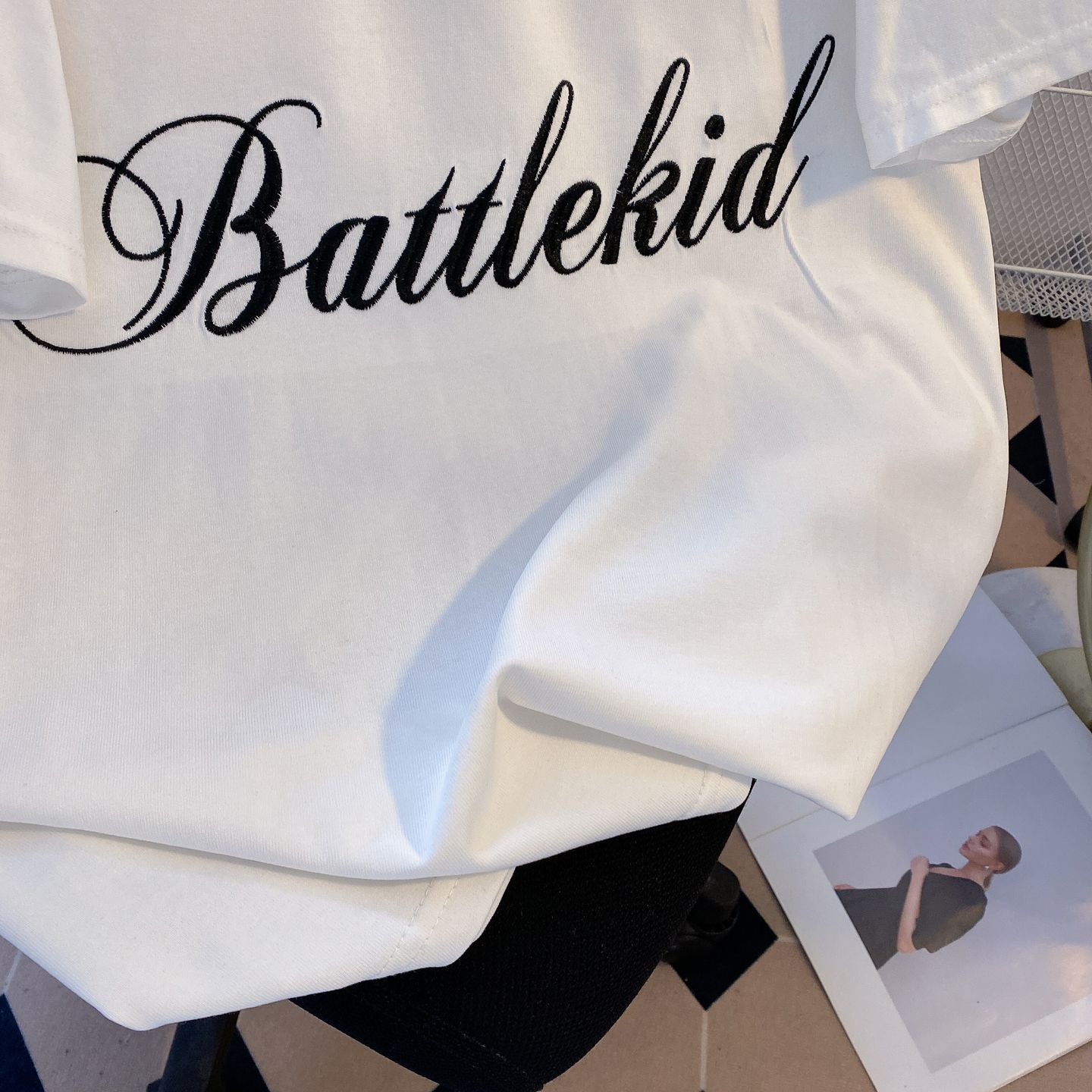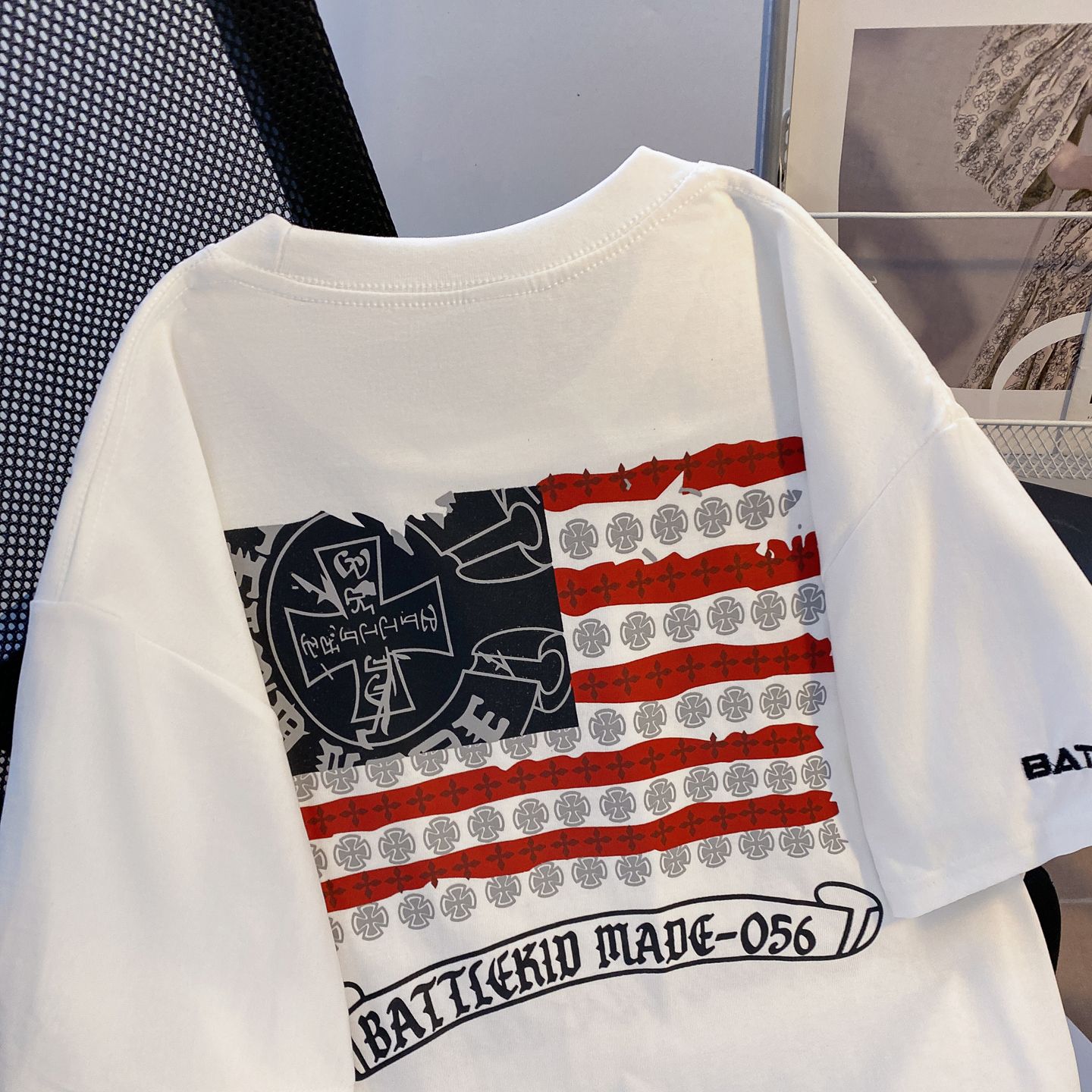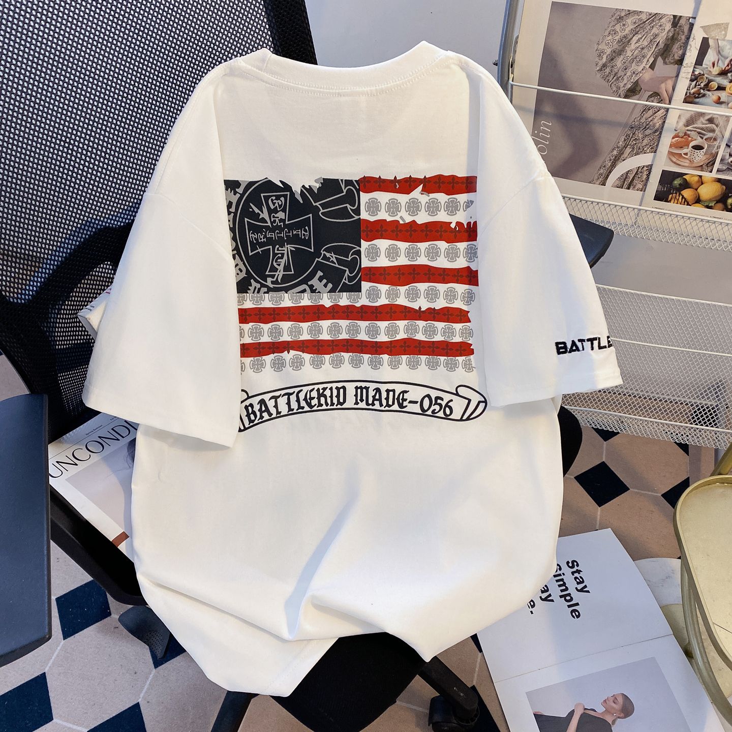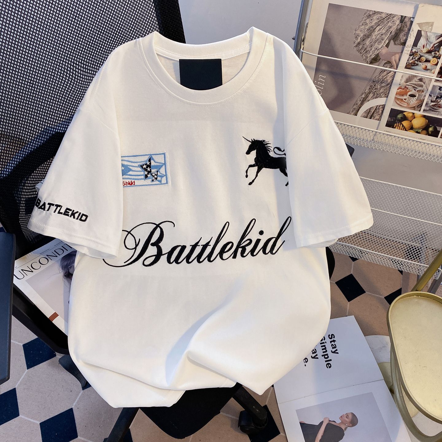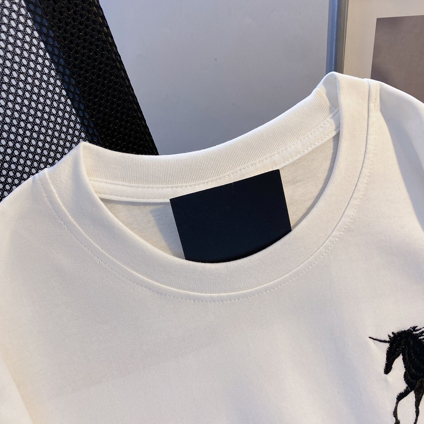 실사 정가 한국 디스플레이 화이트 색상 시스템 풀오버 라운드 넥 루즈핏 미니멀리즘 다용도 단색 반팔 티셔츠