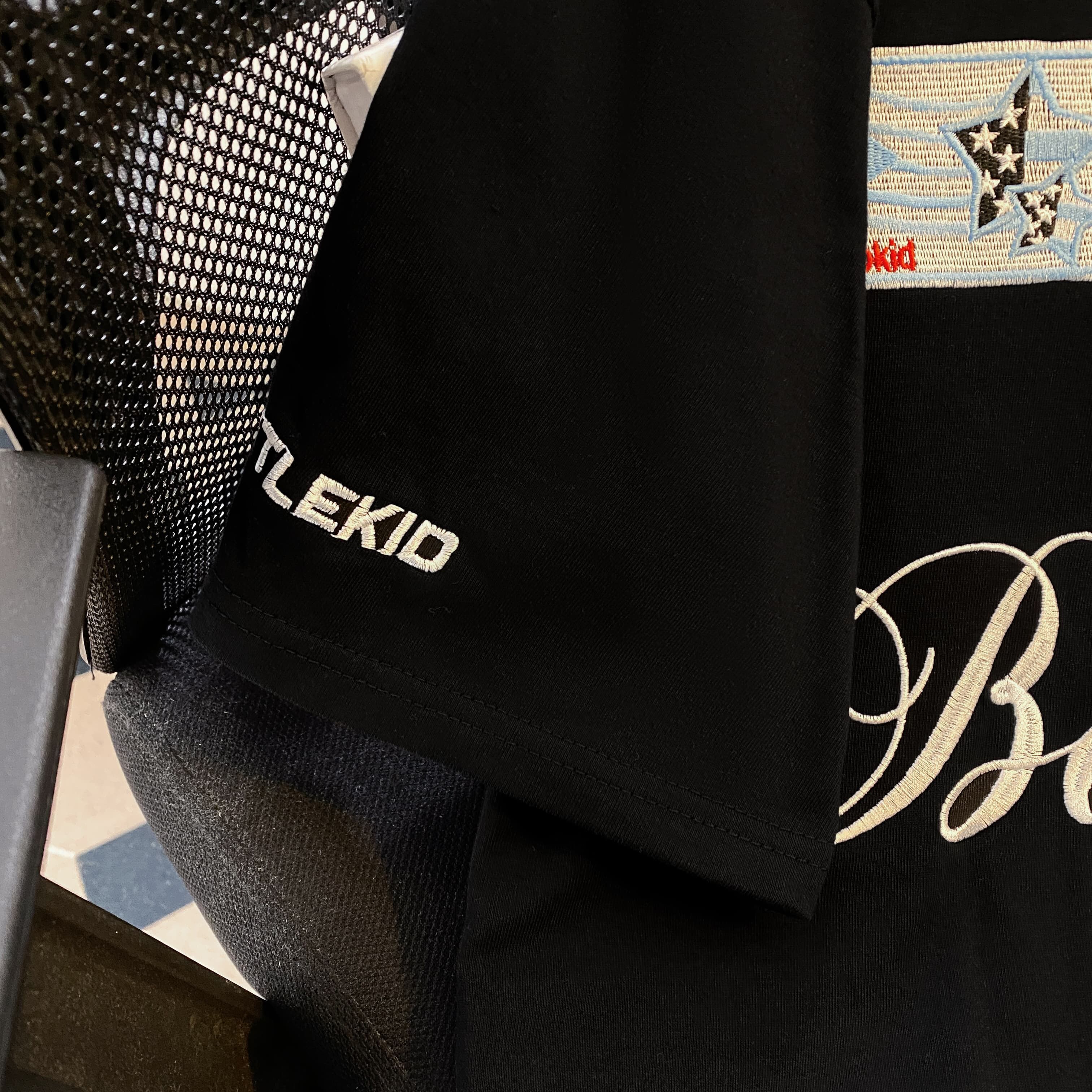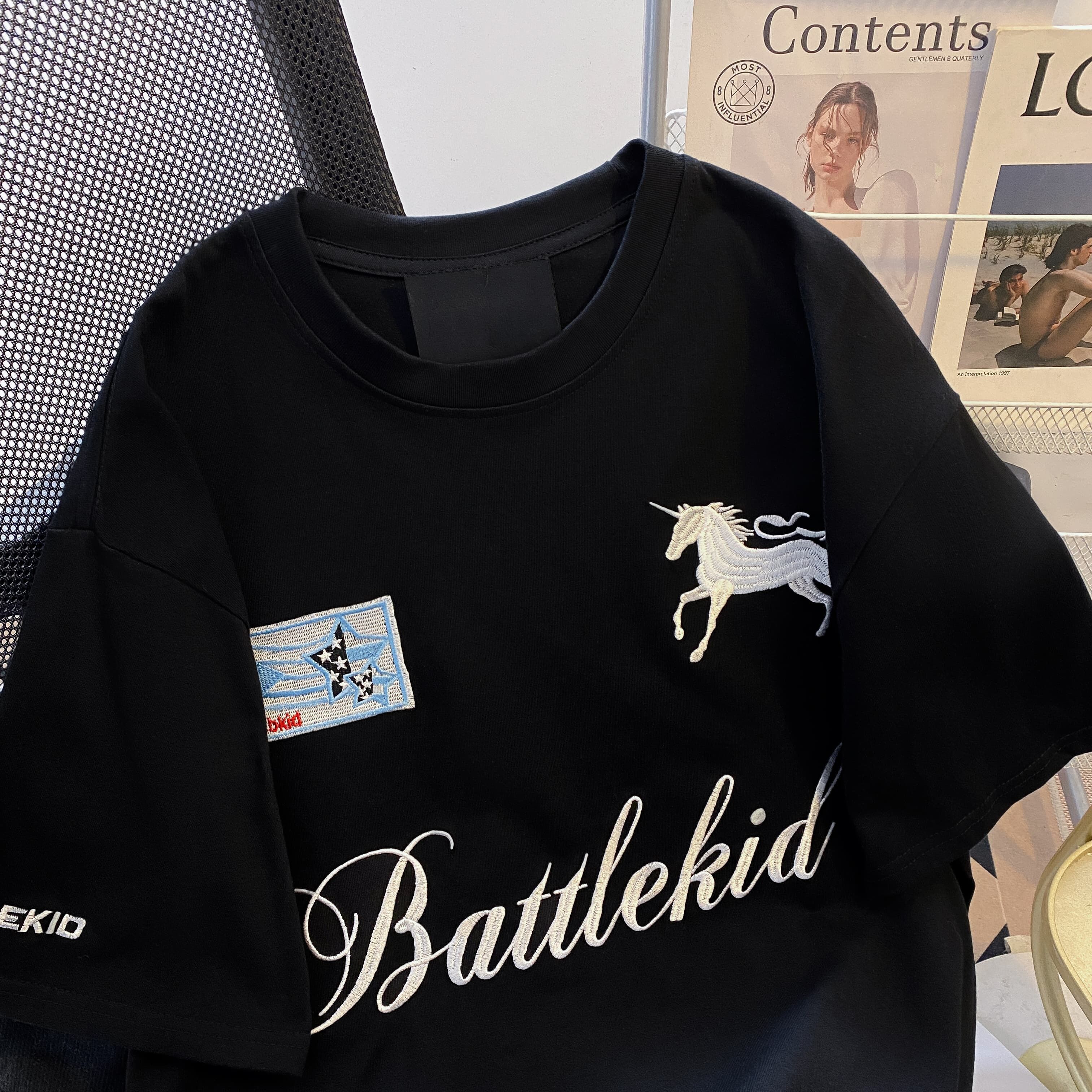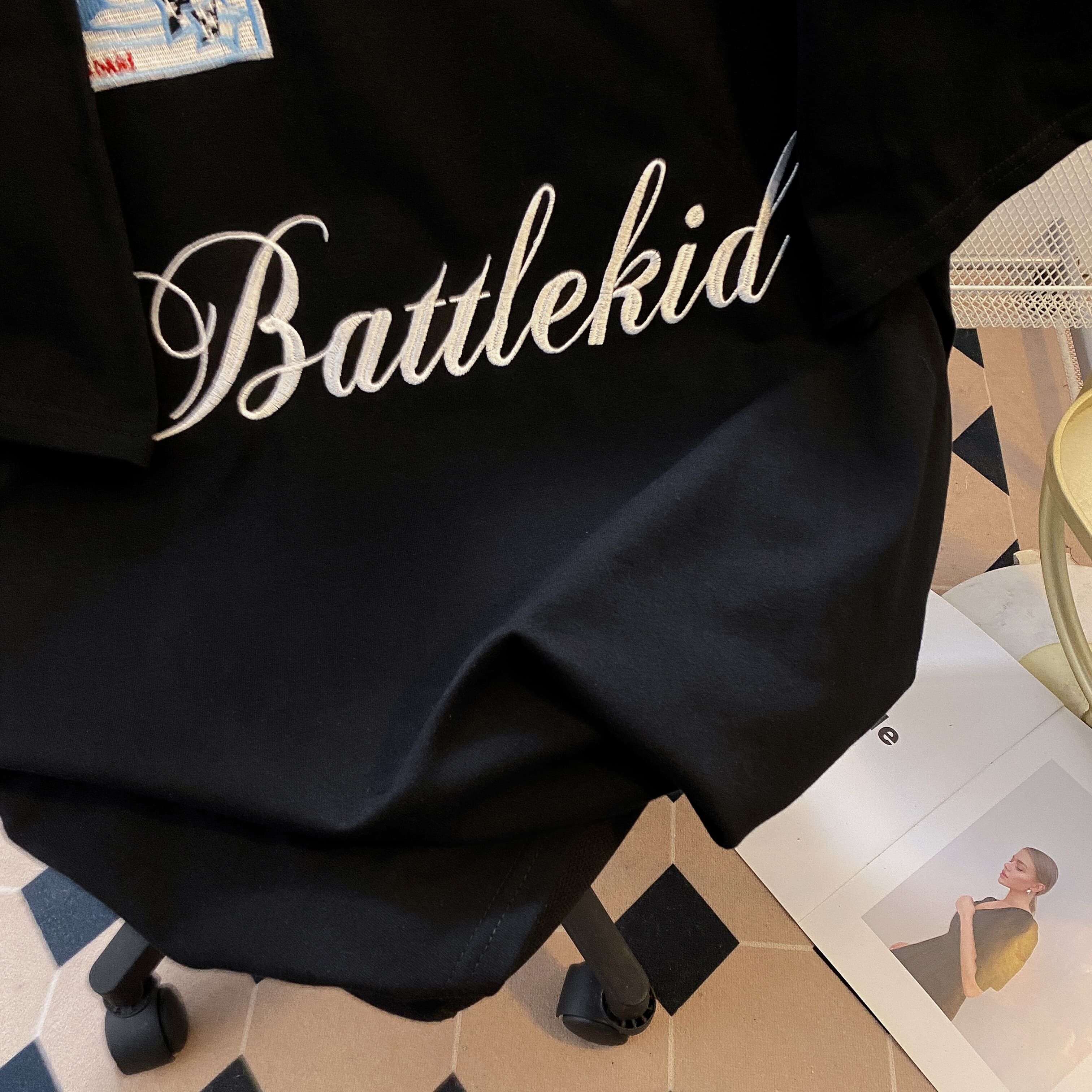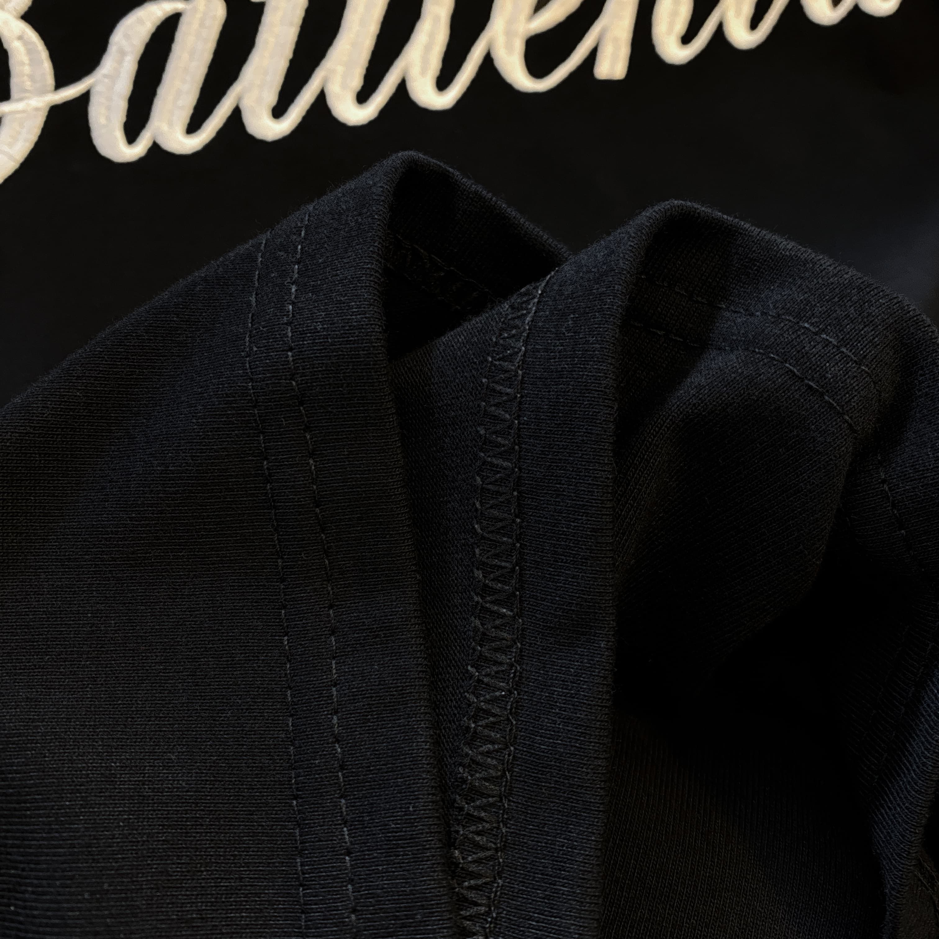 실사 더블 실 240 그램 순면 반팔 티셔츠 여성 여름 새로운 루즈핏 긍정적 인 어깨 알파벳 자수 라운드 넥 맨위
