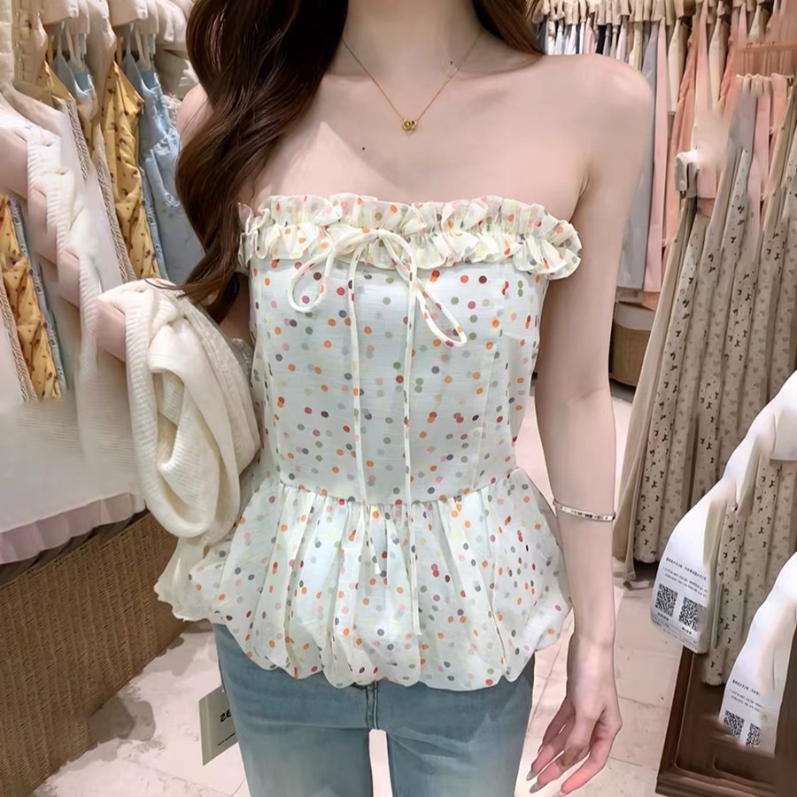 주문 재고 있음 휴가 바람 색상 도트 무늬 튜브탑 조끼 레이스업 꽃밭 허리 수축 슬림해 보이는 달콤한 핫걸 슬립 맨위