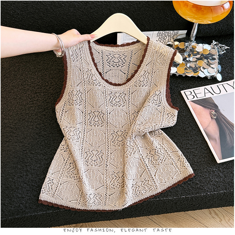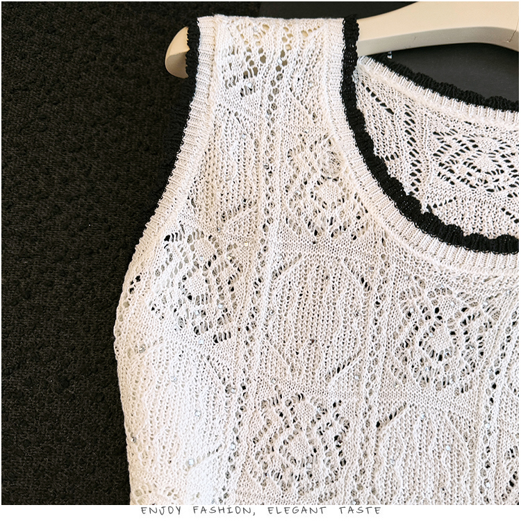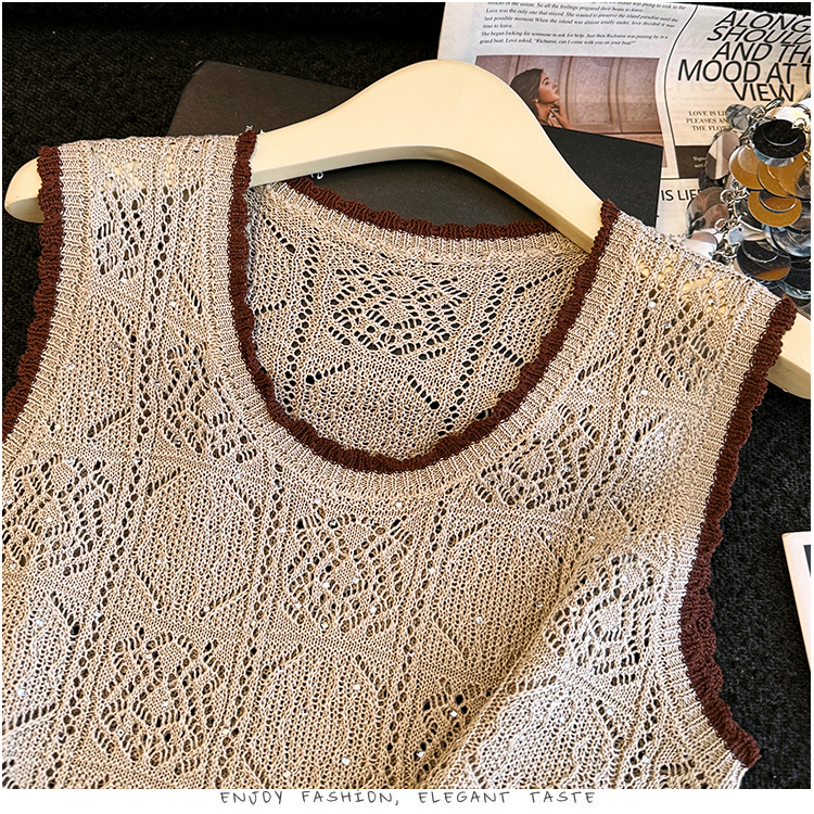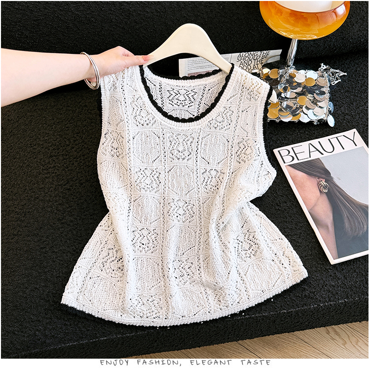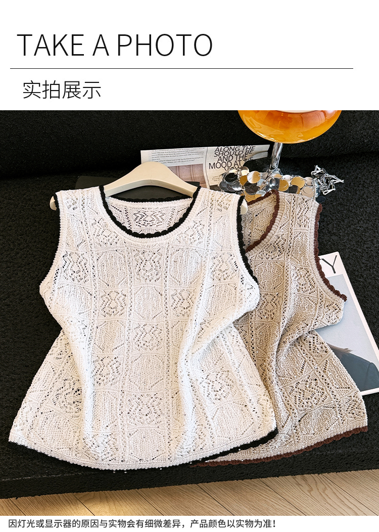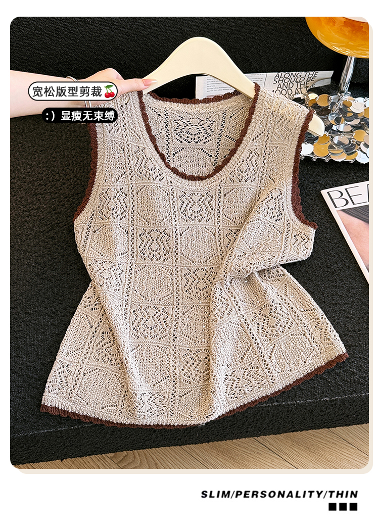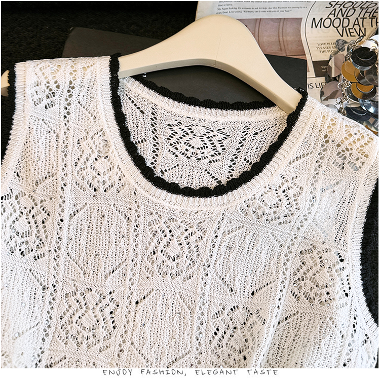 오래된 돈 바람 2026 여름 새로운 라운드 넥 민소매 홀로우 아웃 자수 얼음 실크 조끼 티셔츠 주간 실크 아마 니트 스웨터 여성