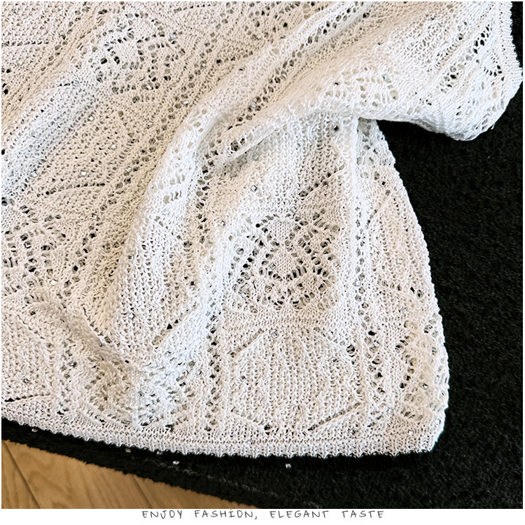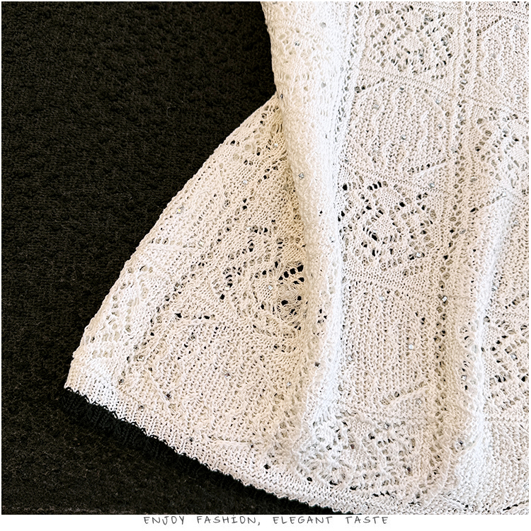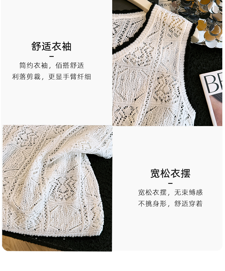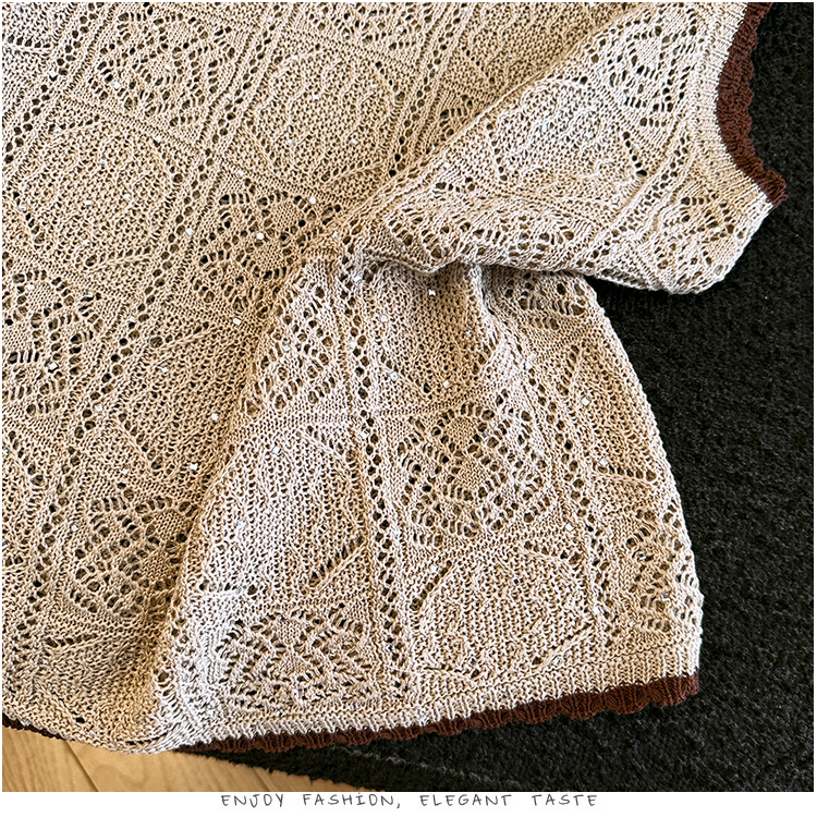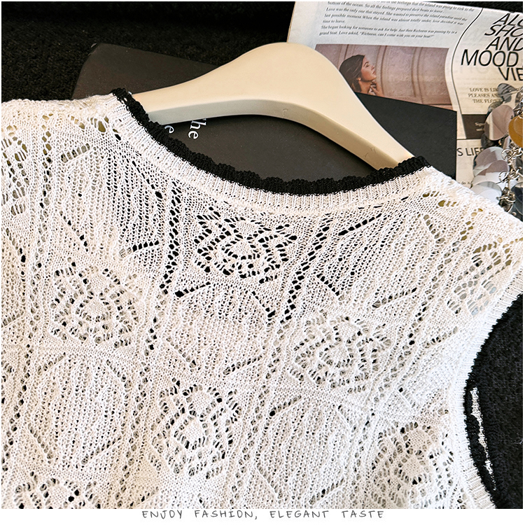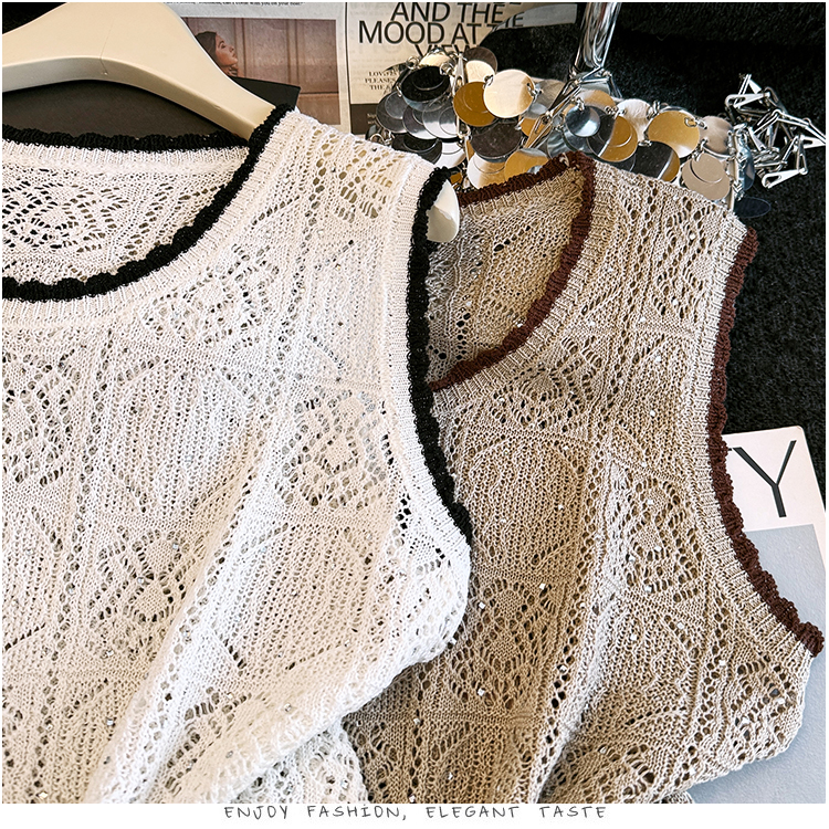 오래된 돈 바람 2026 여름 새로운 라운드 넥 민소매 홀로우 아웃 자수 폴로 칼라 얼음 실크 티셔츠 주간 실크 아마 니트 스웨터 여성