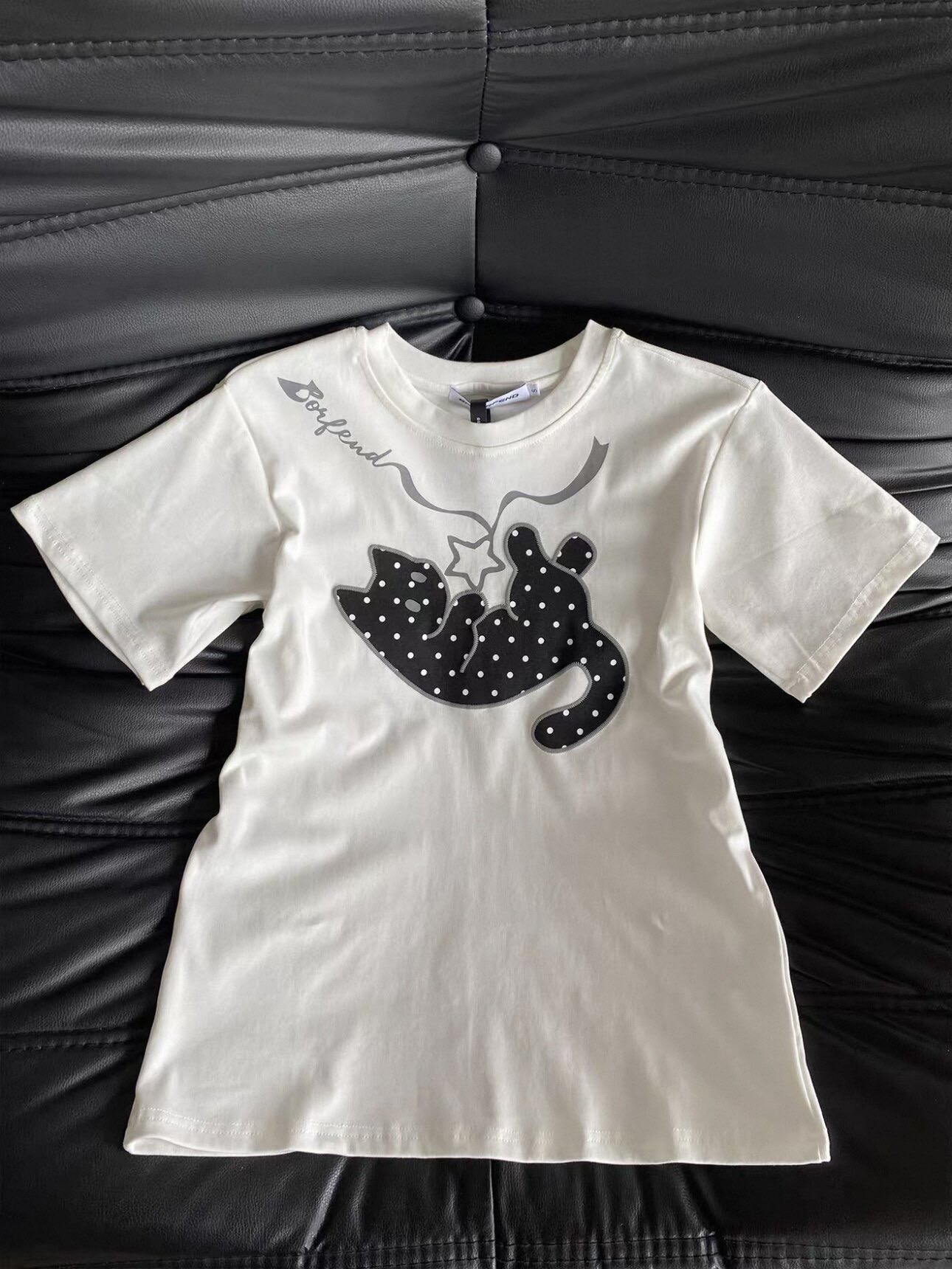 아메리칸 레트로 홀로우 아웃 비스듬한 어깨 반팔 티셔츠 여성 여름 새로운 핫걸 느긋한 바람 루즈핏 슬림해 보이는 알파벳 맨위