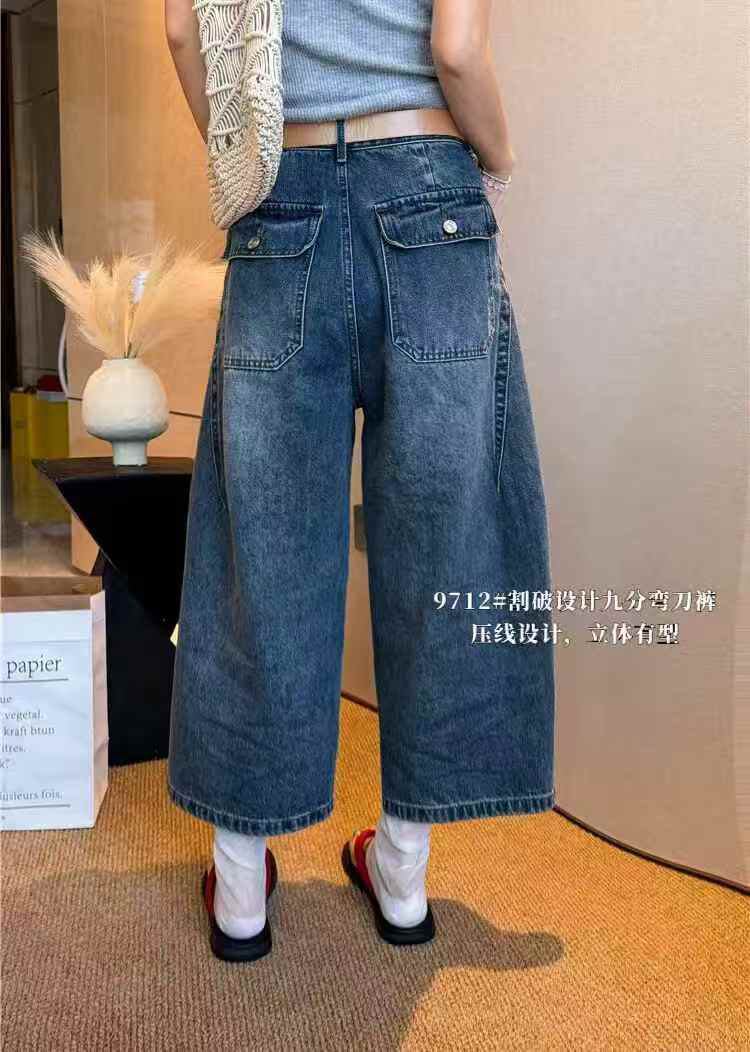 트렌디 공주 66085 찢어진 부분 7 점 와이드 레그 팬츠 2026 여름 새로운 패션 트렌디 다용도 루즈핏 슬림해 보이는 청바지