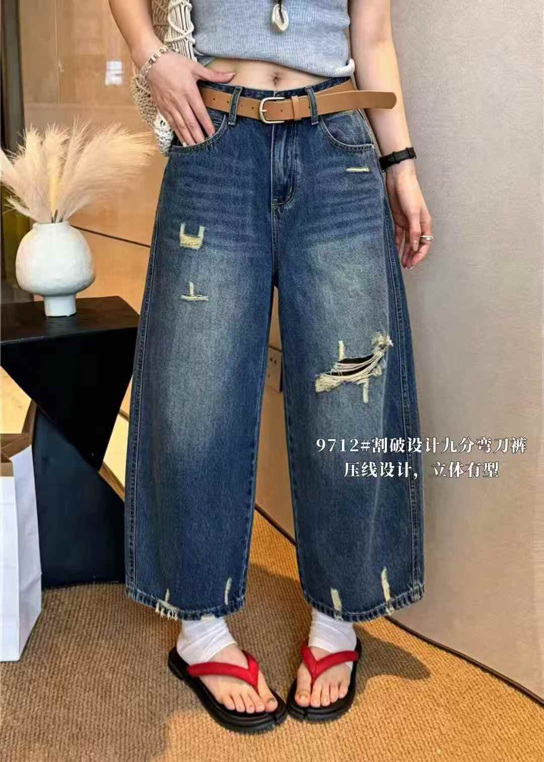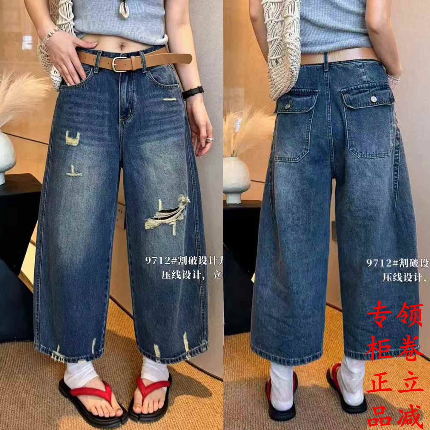 2026 여름 새로운 차가운 그리스어 라이 9712 유럽 상품 레트로 찢어진 부분 8 점 모통이 칼 바지 하이웨이스트 루즈핏 여성 청바지 얇은