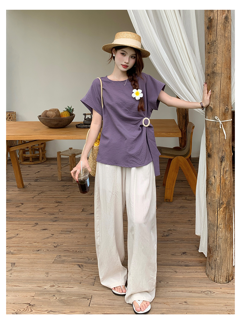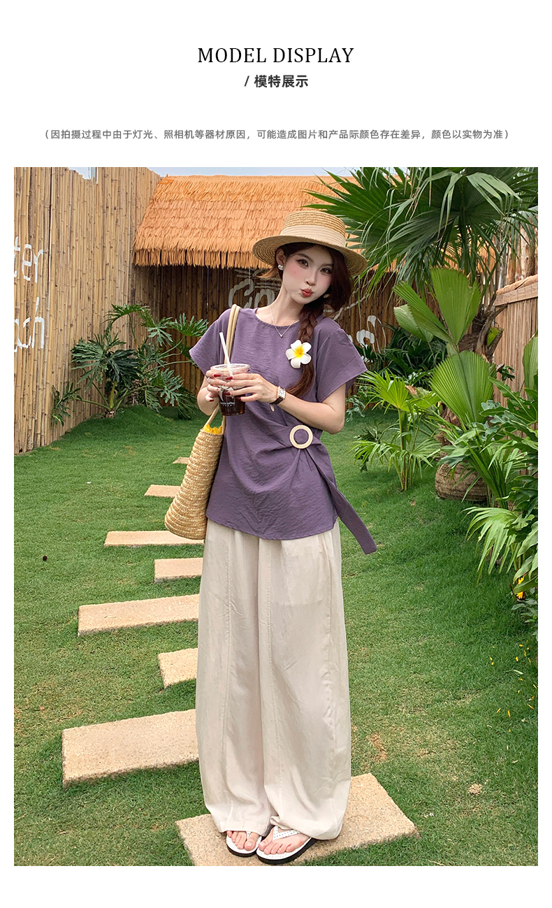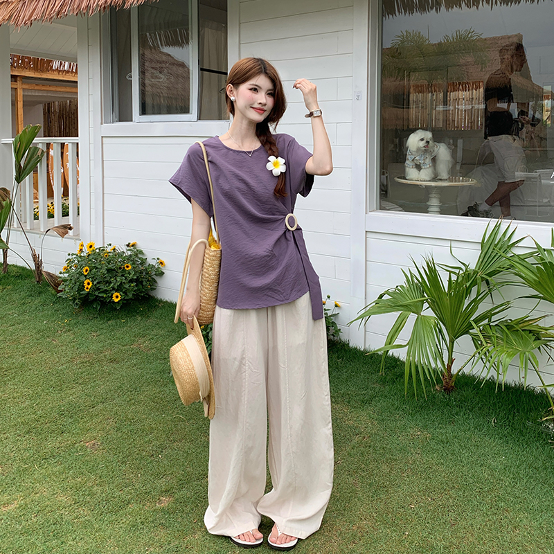 빅 사이즈 여성 의류 여름 미니멀리즘 반팔 맨위 허리밴드 바지 빅 사이즈 세트