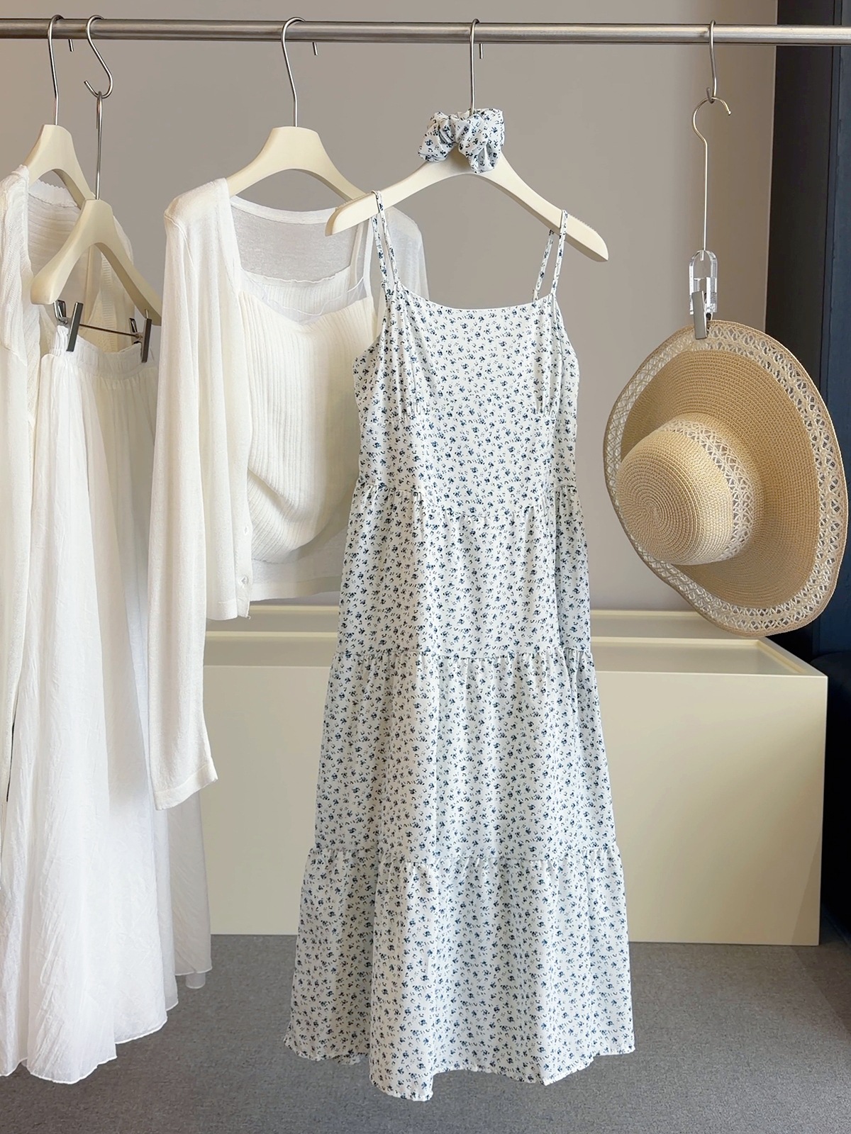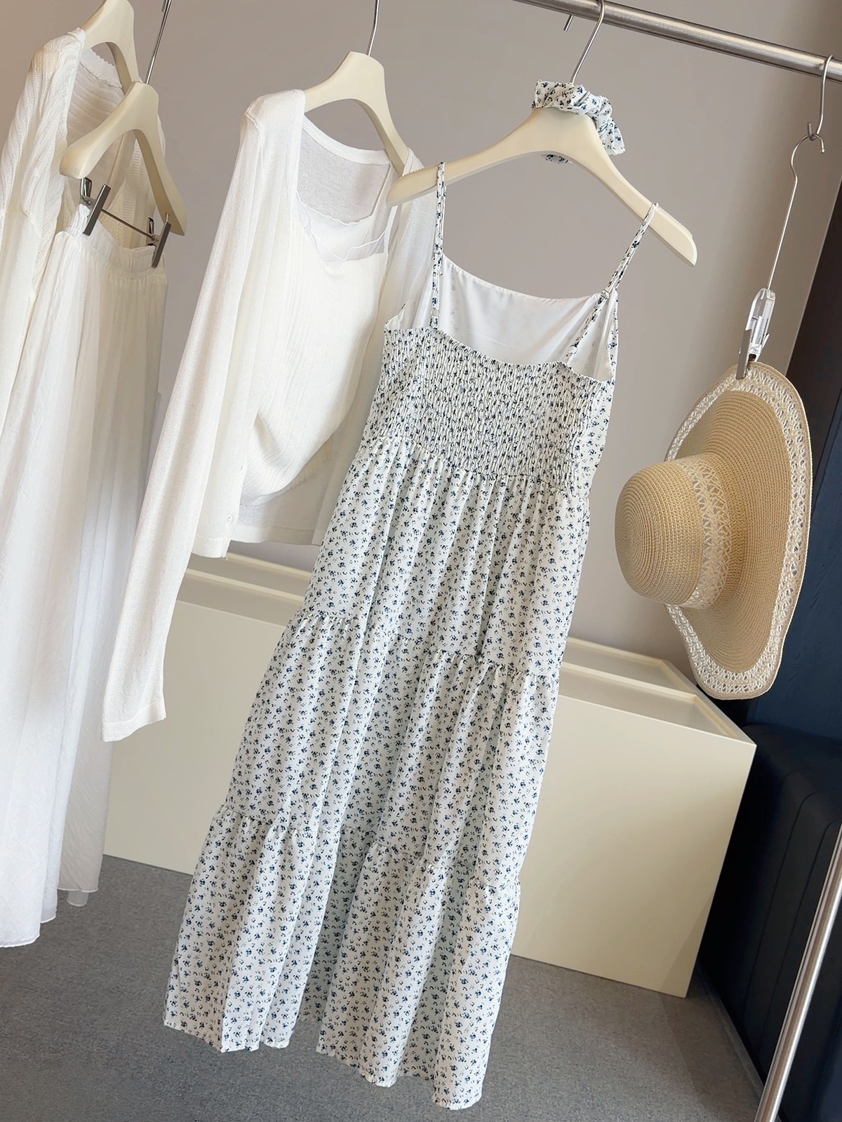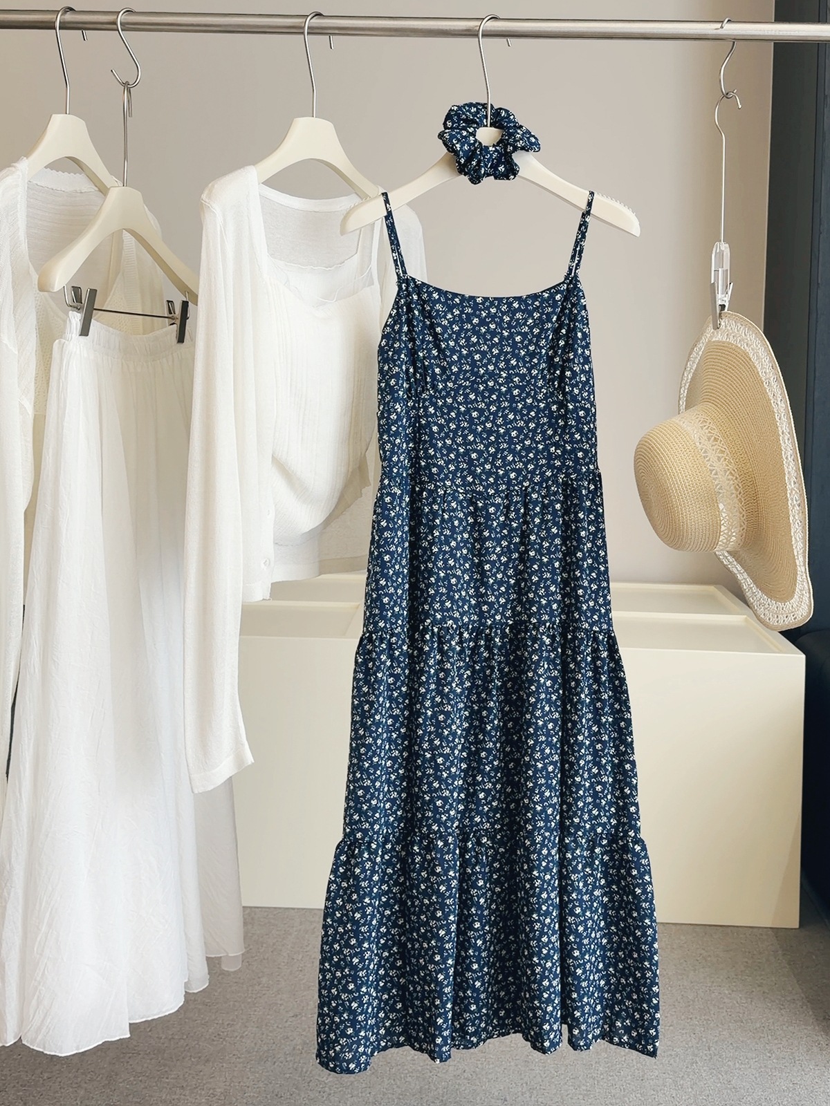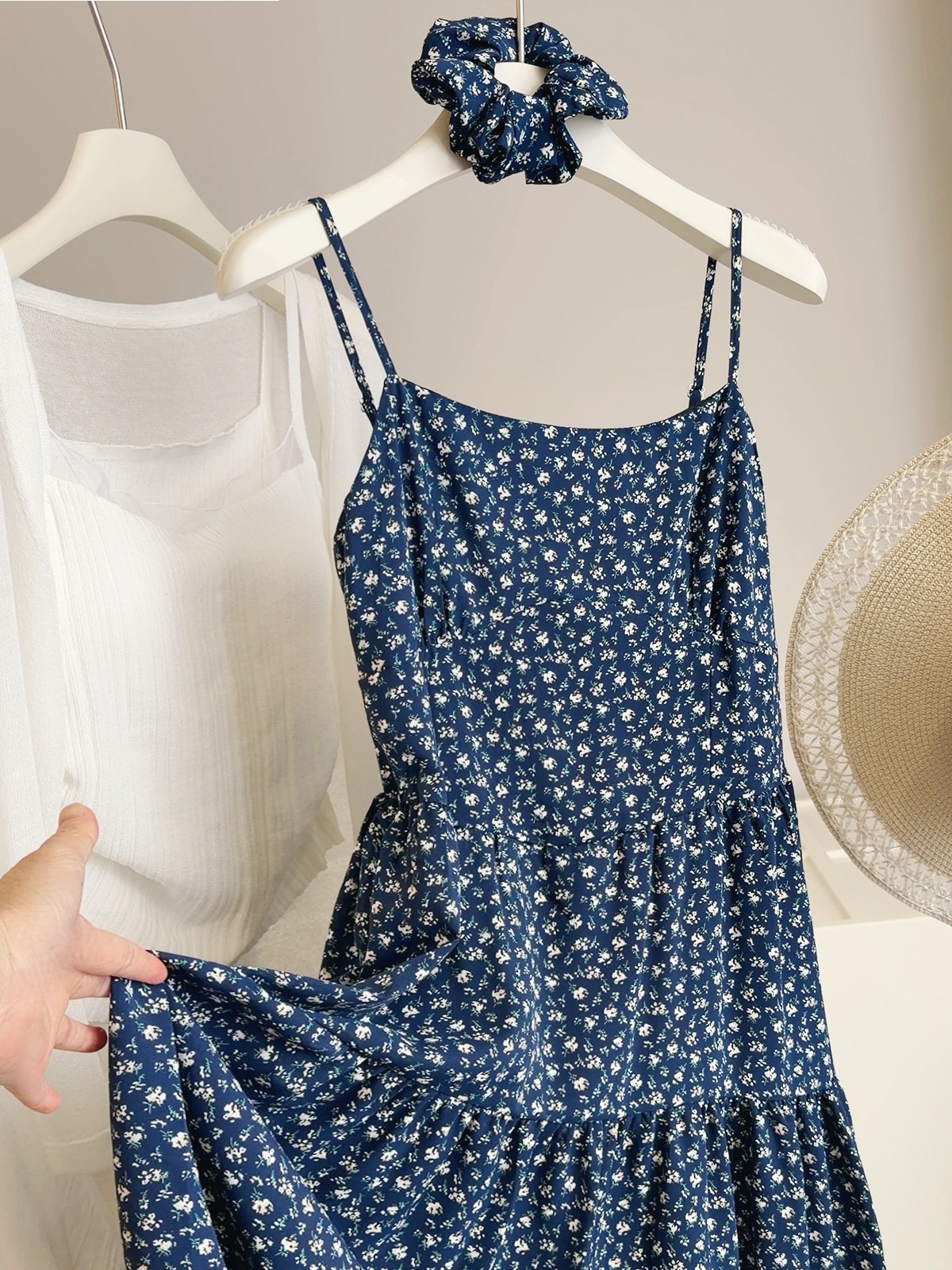 해군 꽃무늬 슬립 여성 드레스 여름 해변가 휴가 부드러운 바람 패션 다용도 슬림해 보이는 롱 코트 케이크 드레스