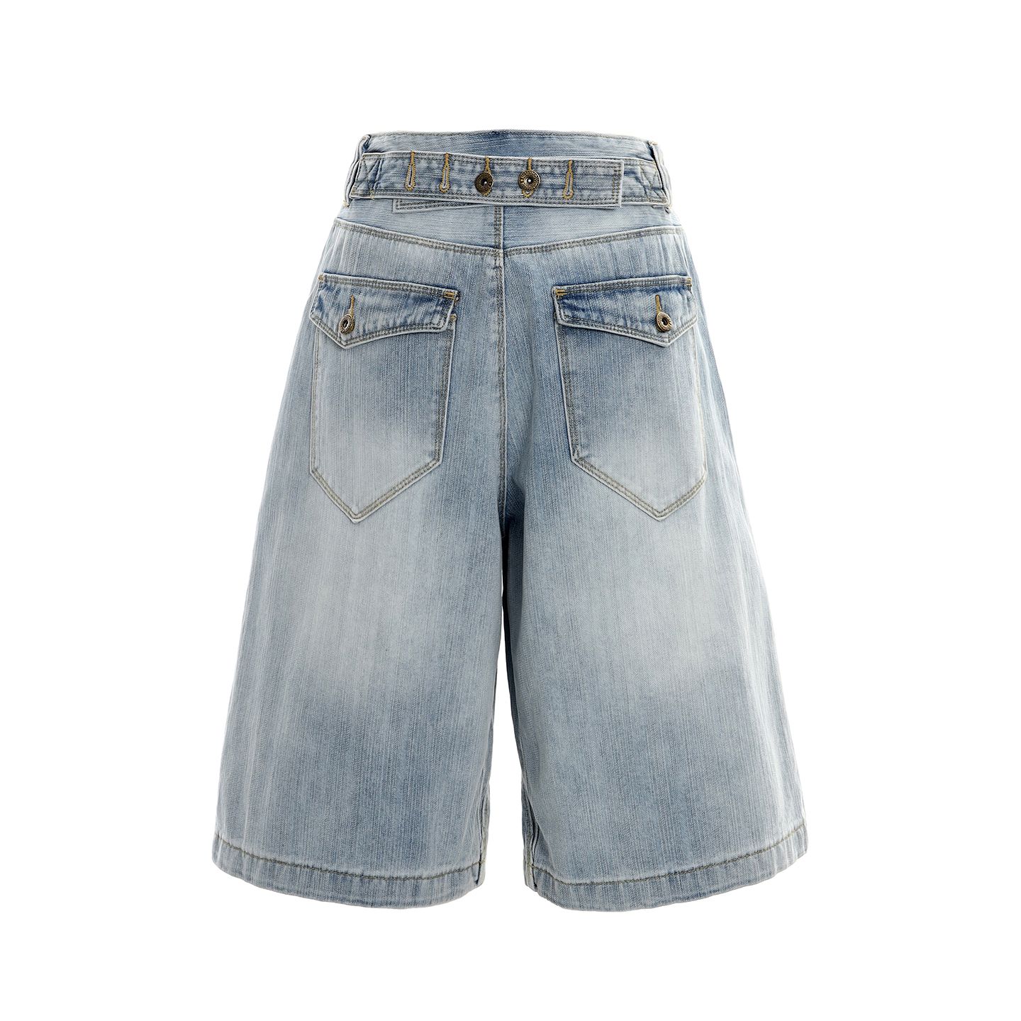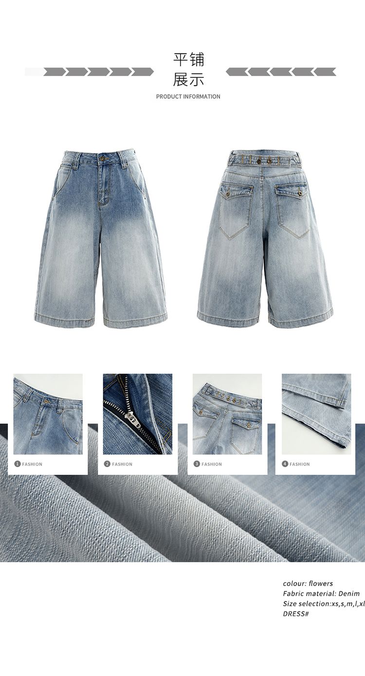 아메리칸 레트로 루즈핏 와이드 레그 팬츠 다용도 외국 가스 이후 부서 버클 디자인 센스 7부 바지 청바지 여성 새로운