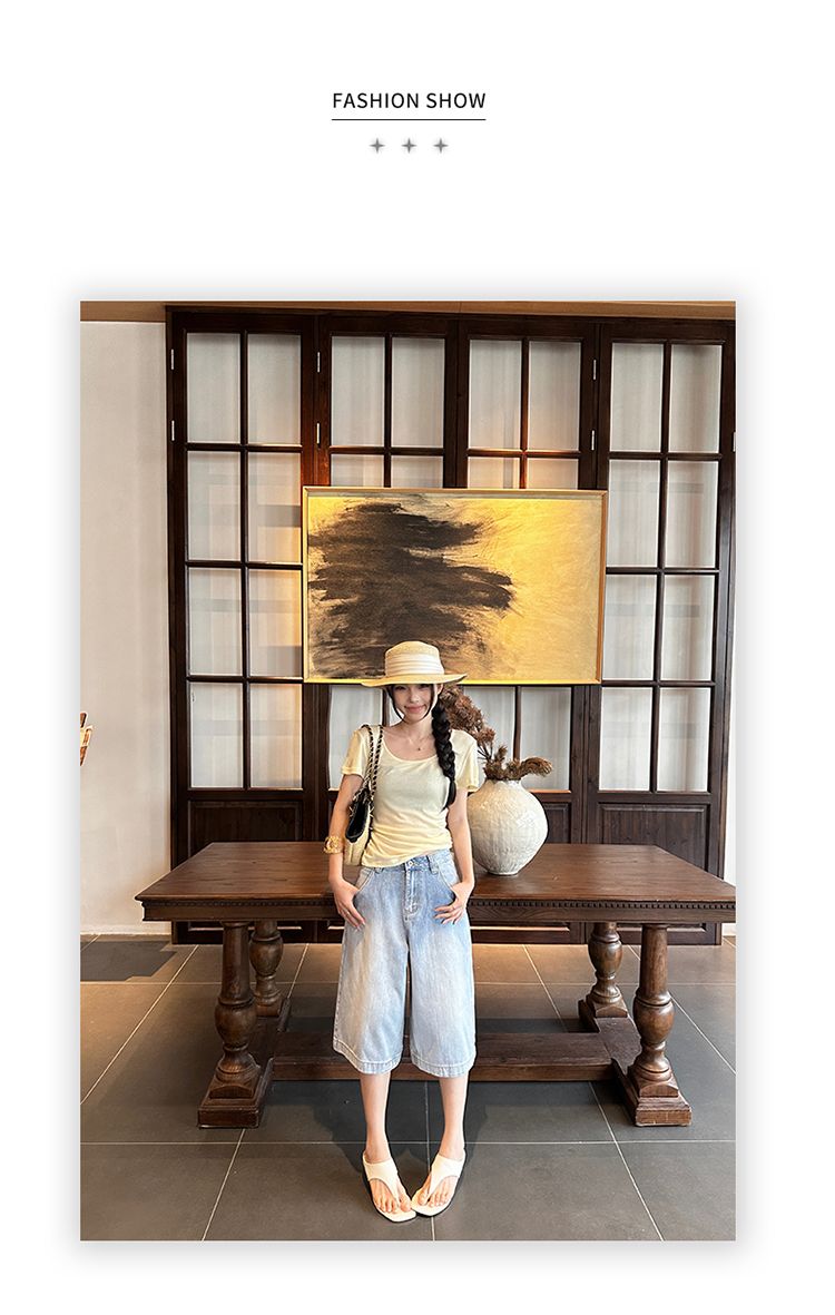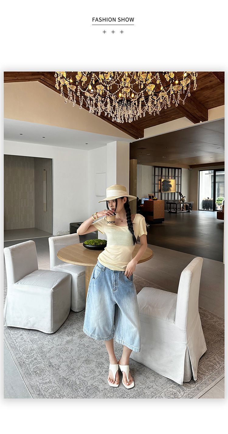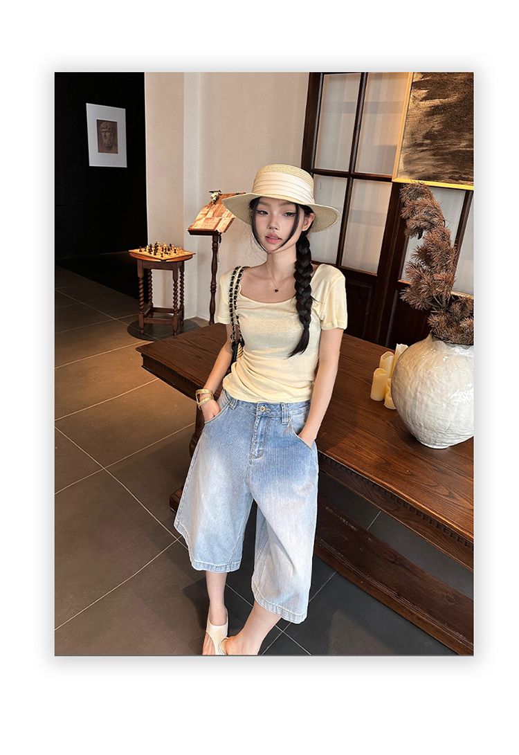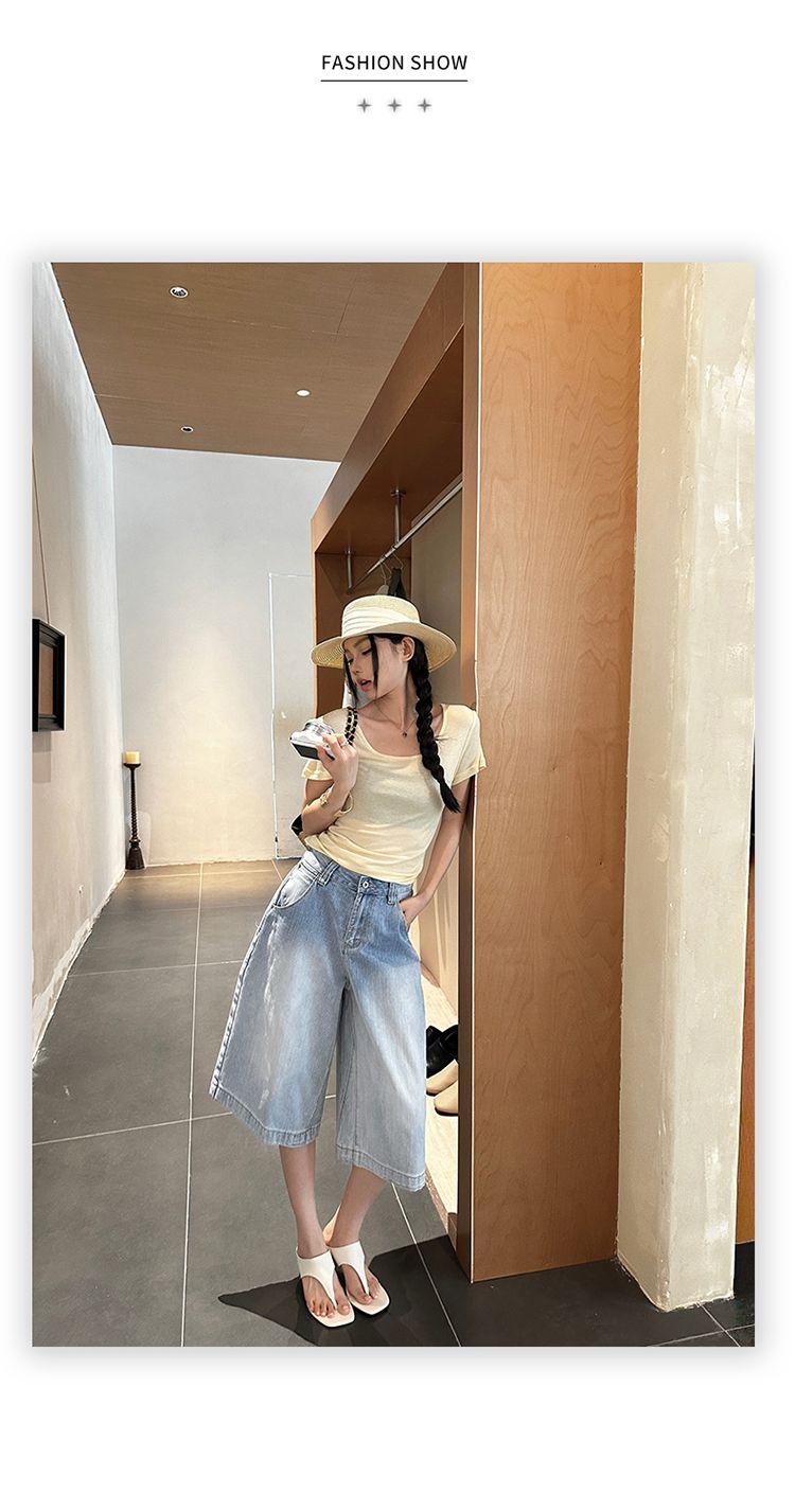 아메리칸 레트로 루즈핏 느슨함 센스 넓은 다리 5 점 청바지 여성