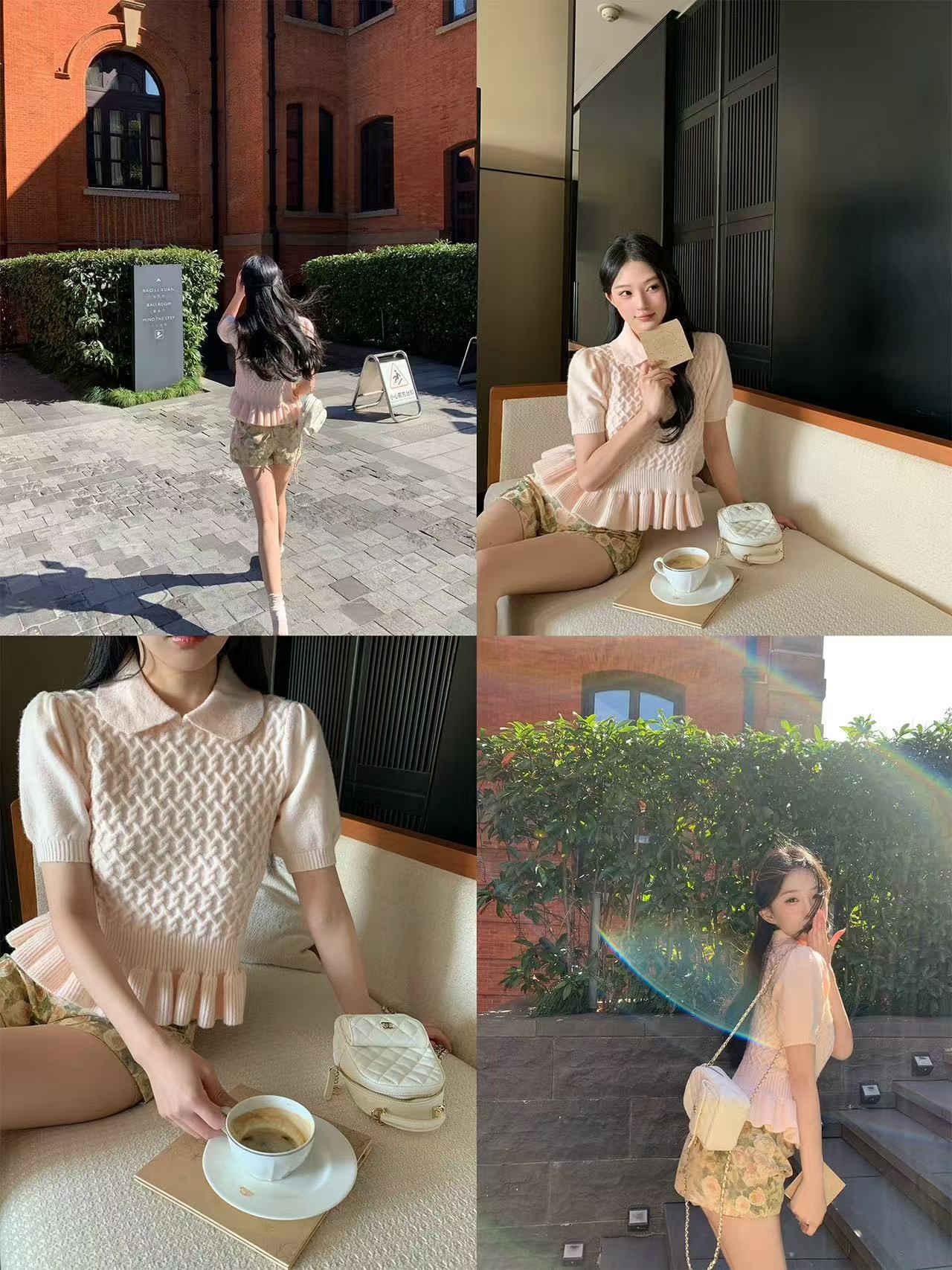 프랑스식 레트로 홀로우 아웃 반팔 니트 스웨터 여성 2026 여름 새로운 얇은 스타일 색상 자수 연령 감소 슬림해 보이는 맨위
