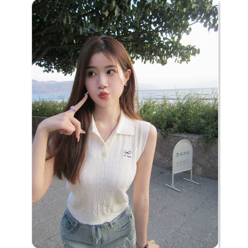 니트 조끼 여성 여름 외출용 2026 새로운 표지 대리인 우유 슬립 인사이드 가져 가라. 민소매 POLO 칼라 맨위