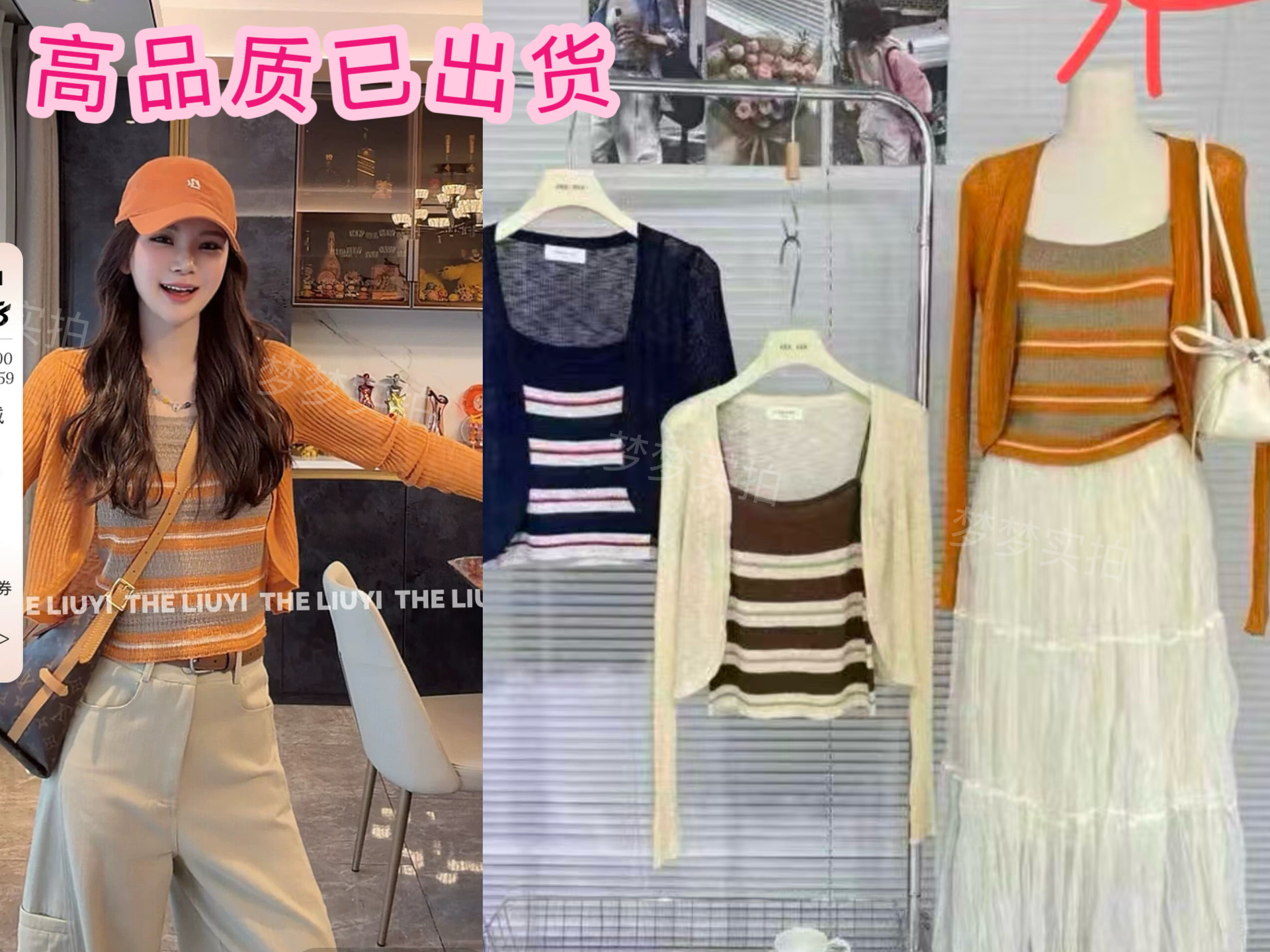 liuyi 주황색 소다 여름 차가운 센스 대나무 마디 얼음 실크 슬립 오픈 가디건 투피스 세트 64223