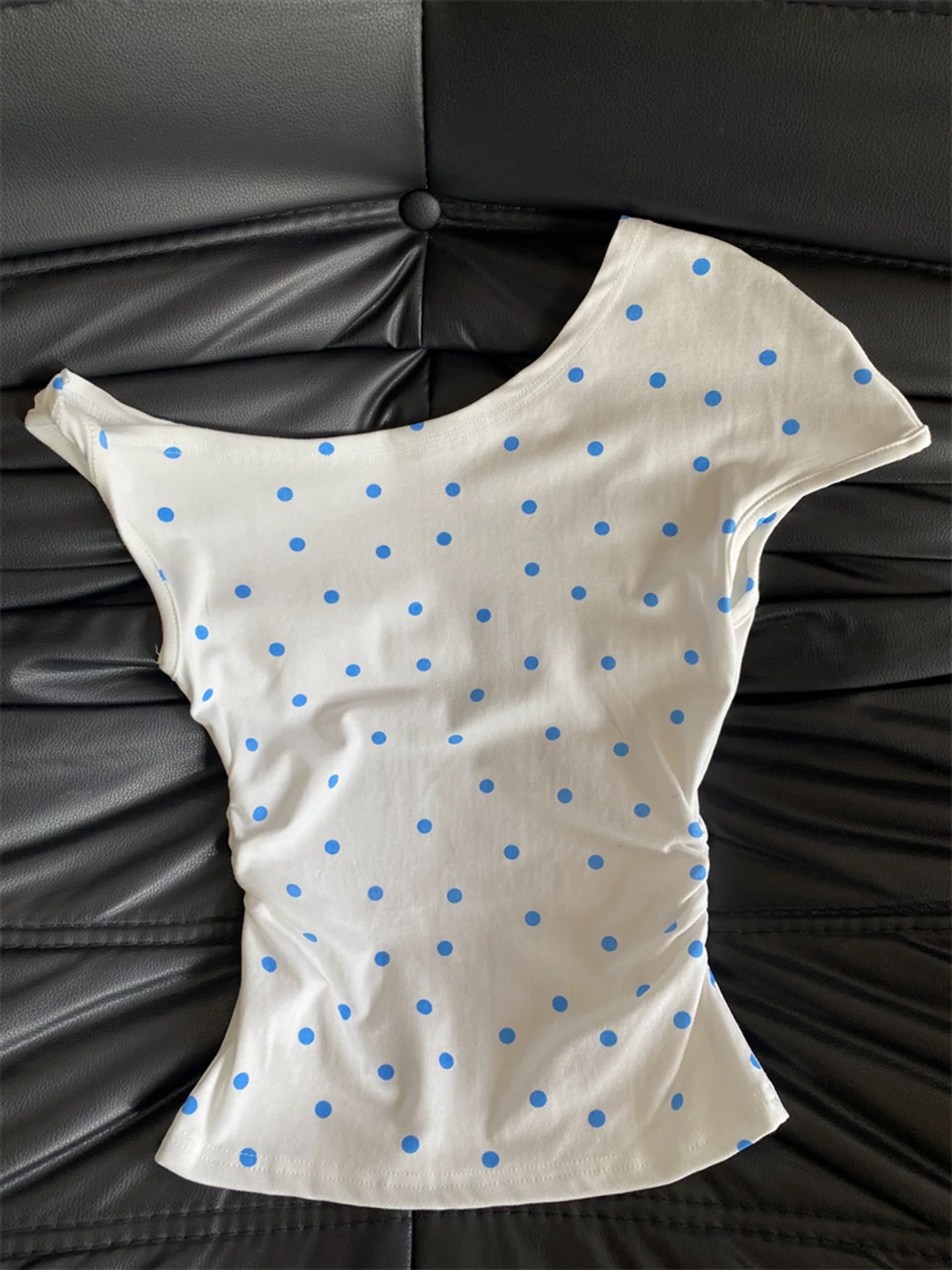 necoyep 아메리칸 창의성 하트 도트 무늬 비스듬한 어깨 반팔 여성 핫걸 여름 몸매 가꾸기 슬림해 보이는 다용도 기본 셔츠