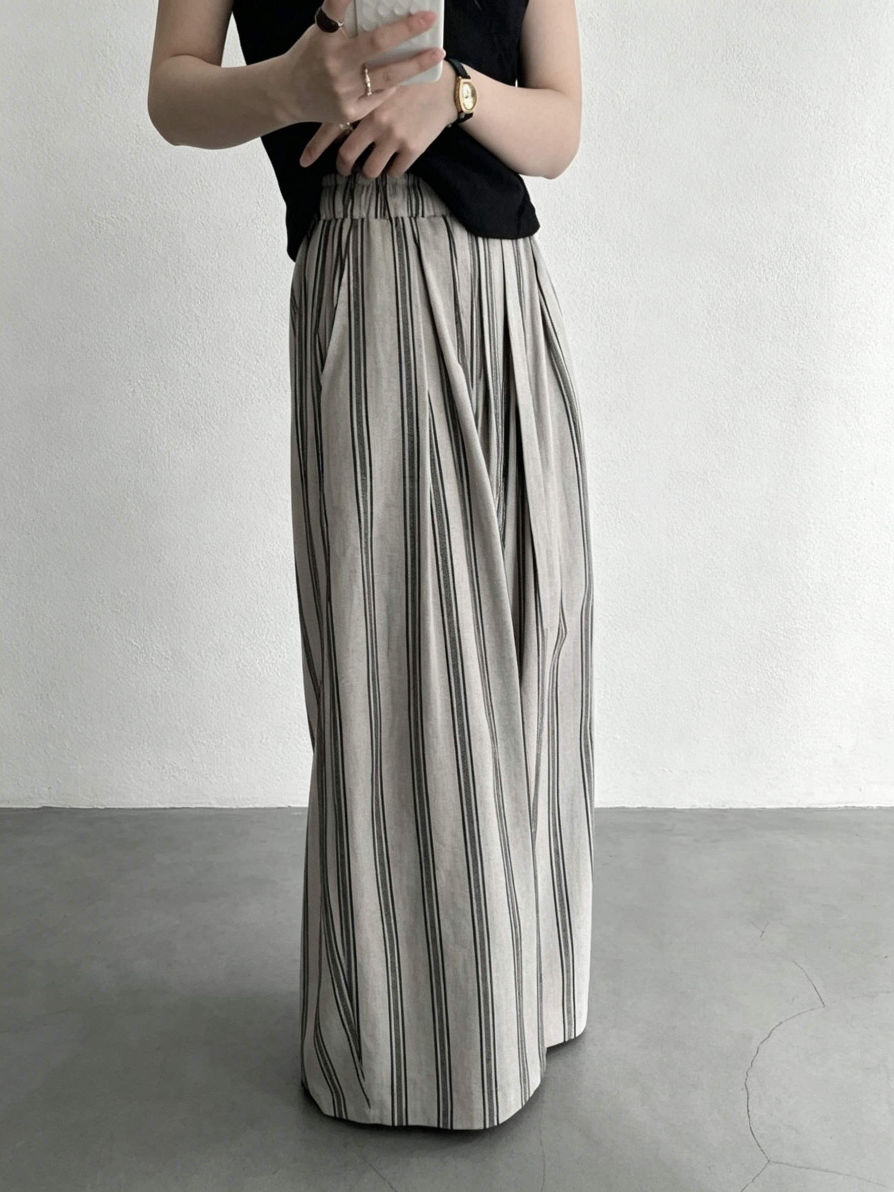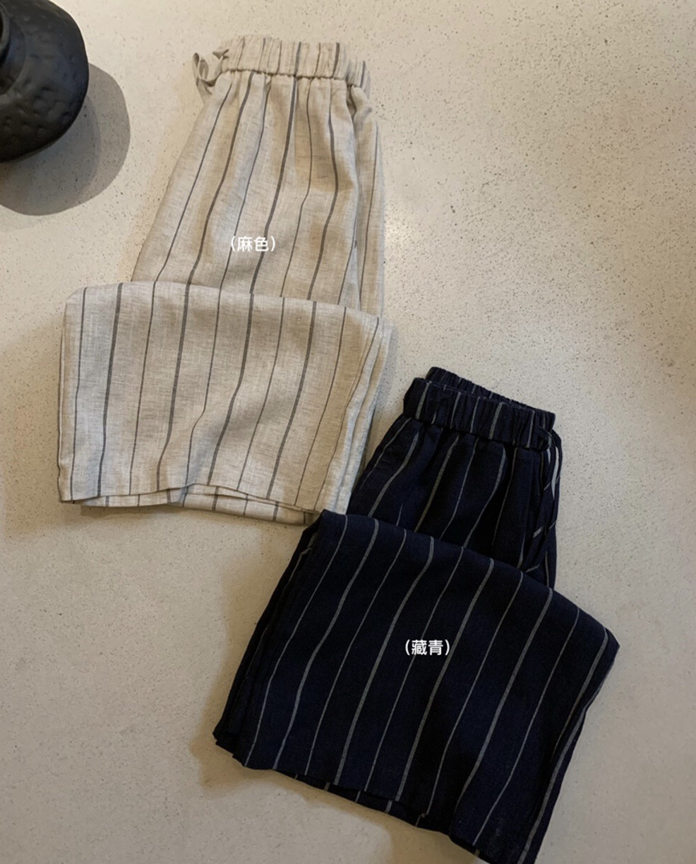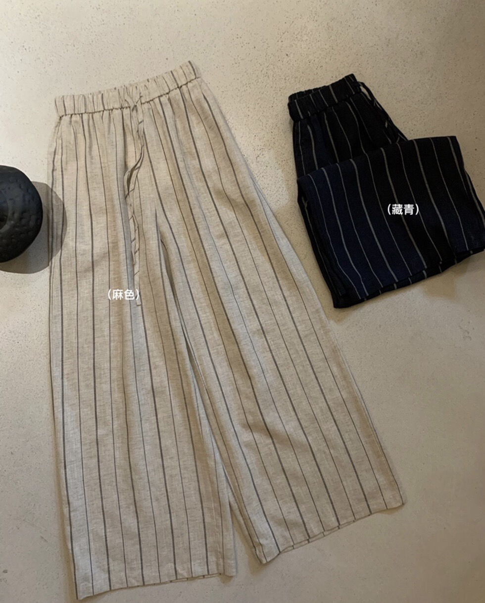 여름 섹션 새로운 느긋한 바람 세로 줄무늬 허리밴드 캐주얼 바지