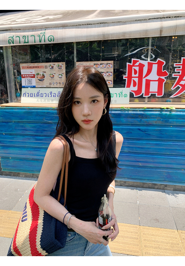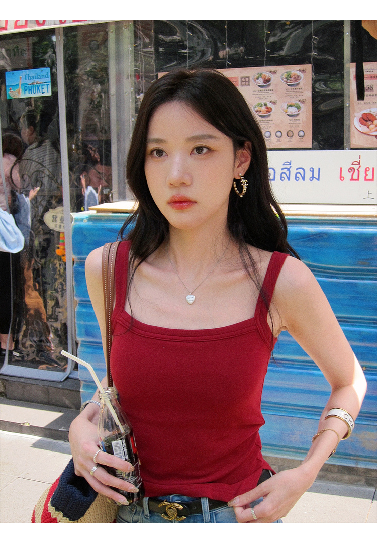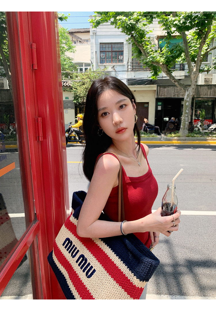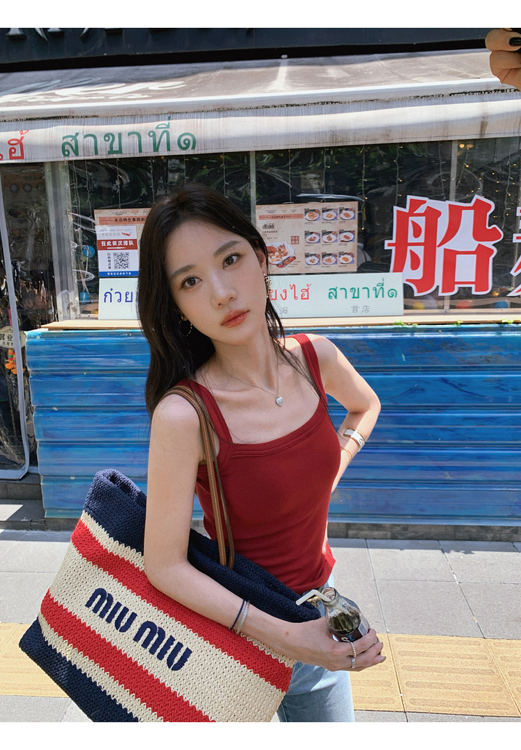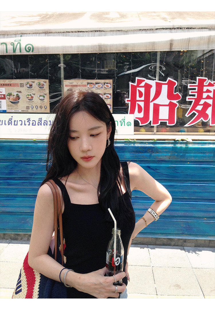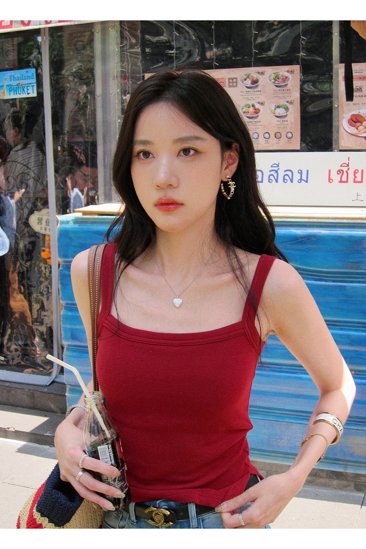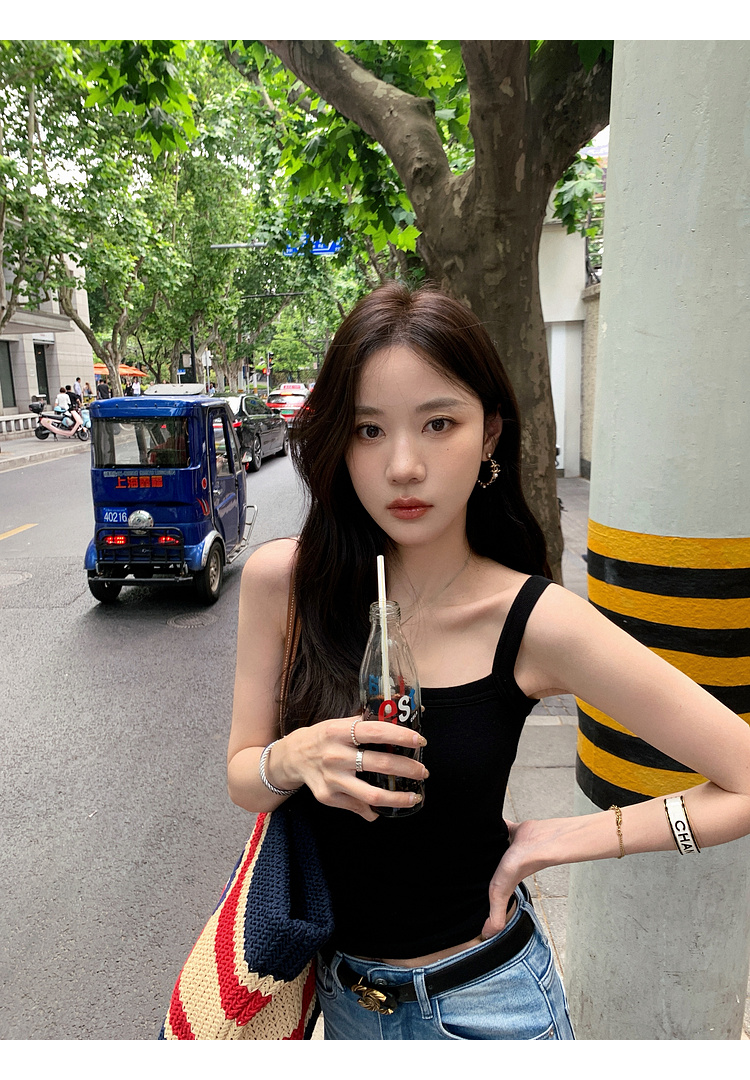 비 실사 감소되지 않음 패션 달콤한 매운맛 바람 섹시함 캐미솔 여름 새로운 몸매 가꾸기 슬림해 보이는 스트랩 아름다움 뒤로 트렌디