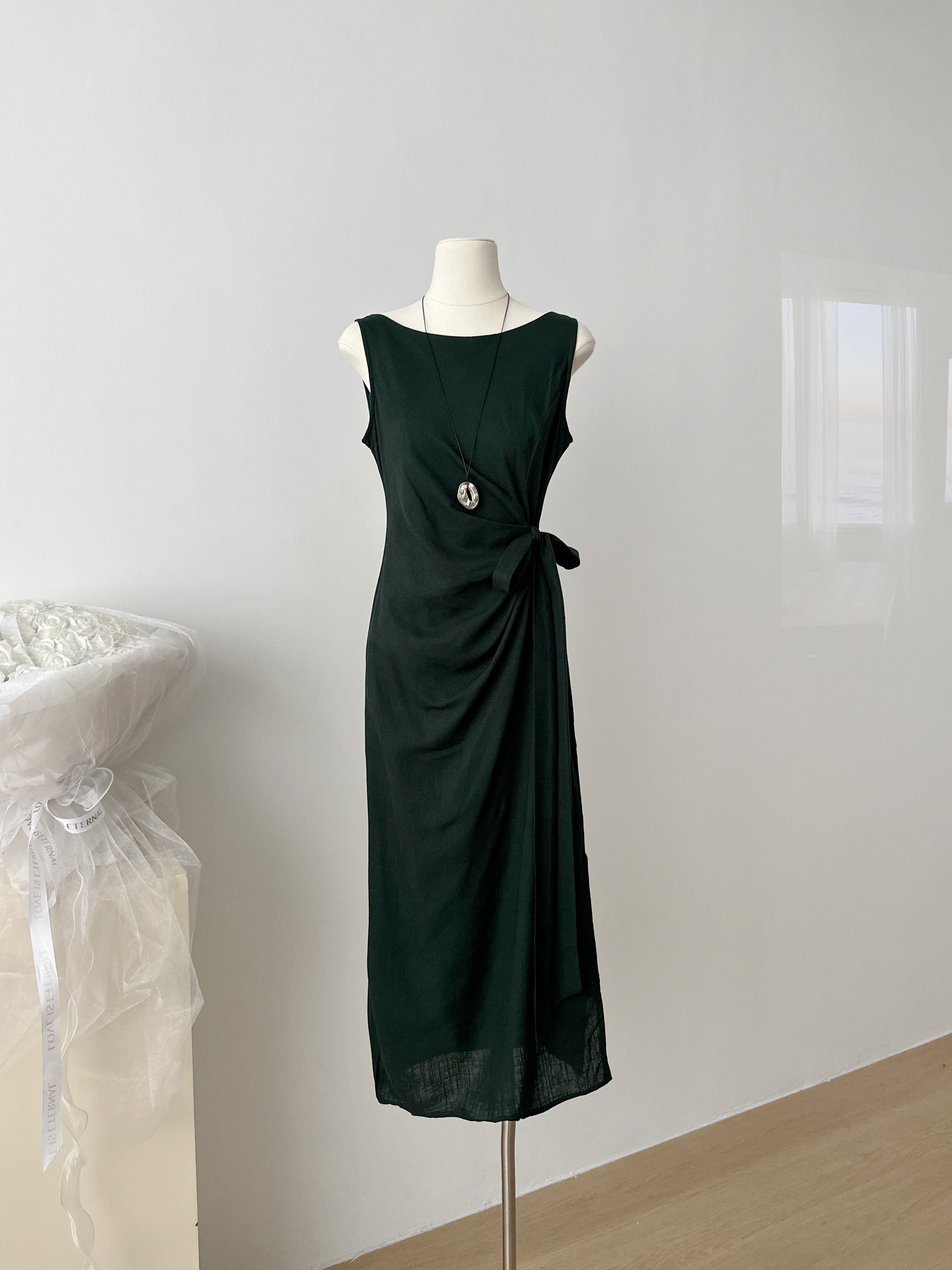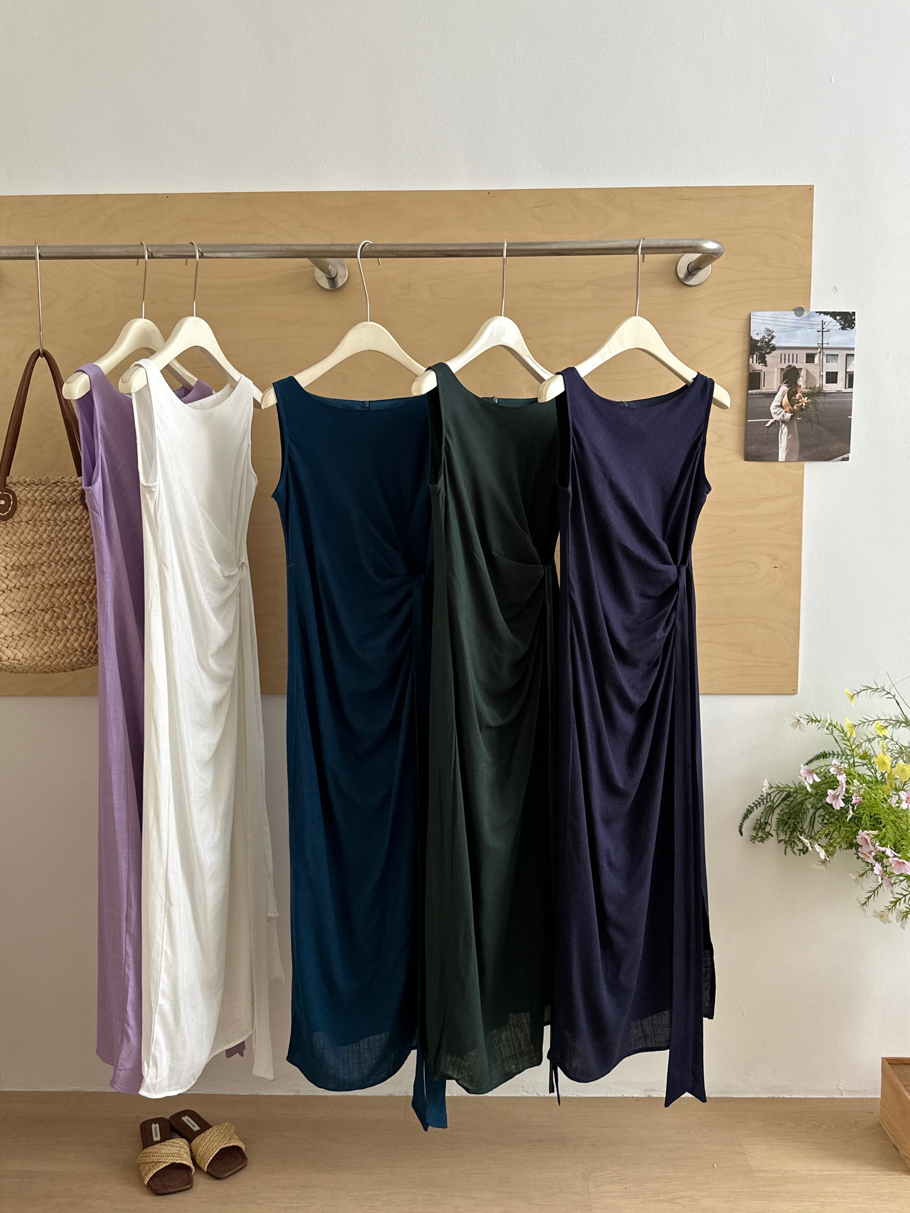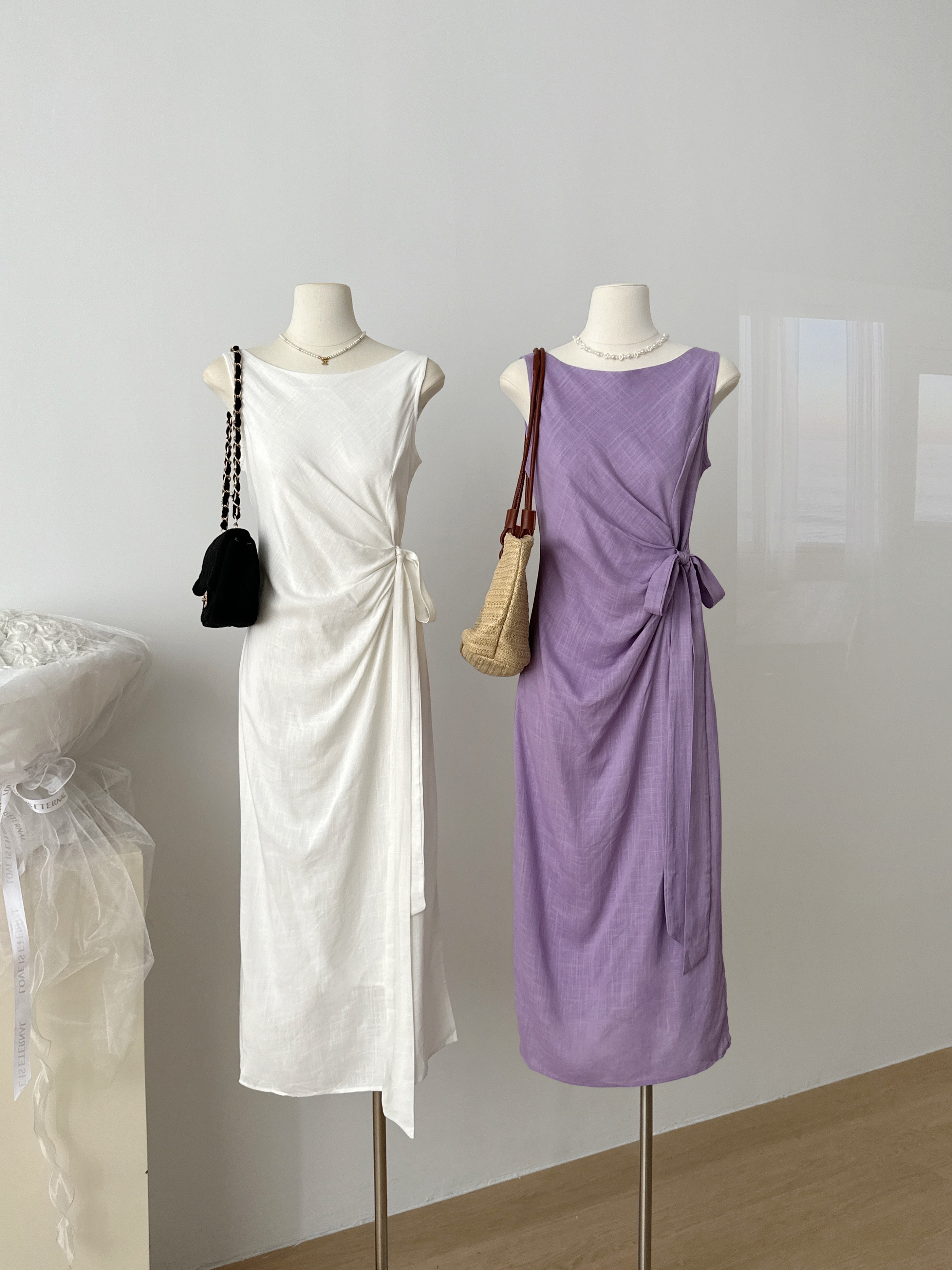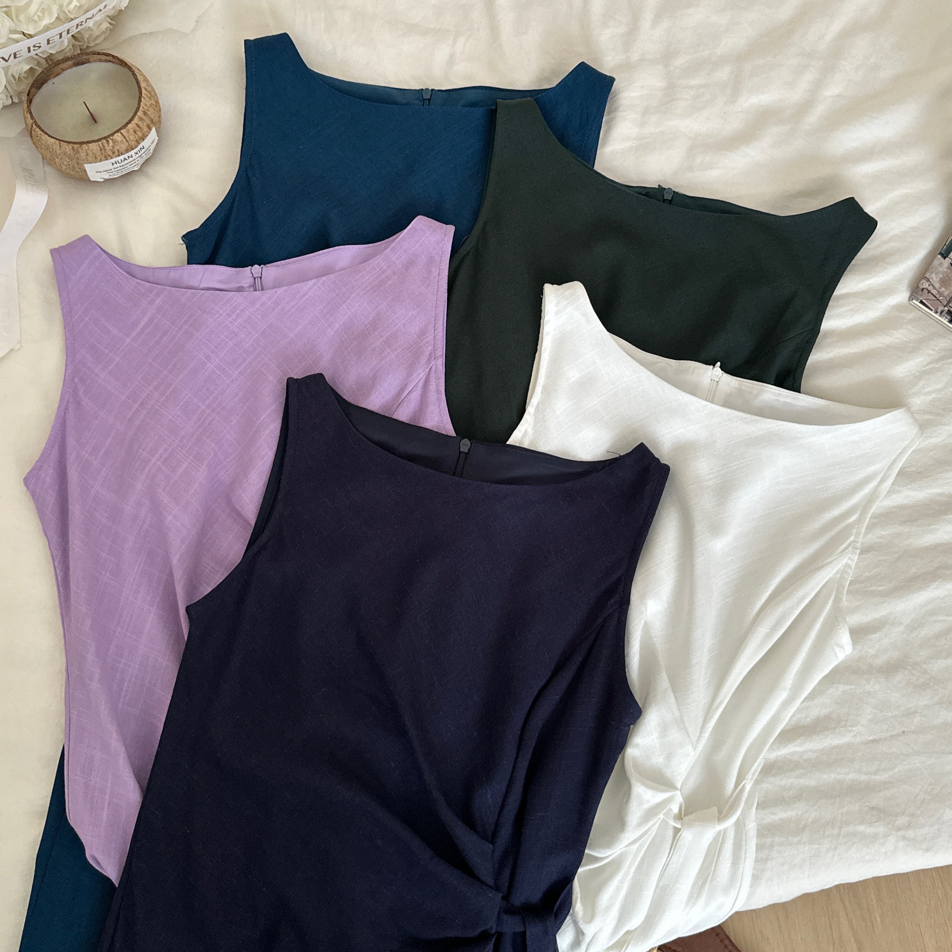 작은 허리 좋은 3 차원 겹침 Pleat 드레스 아니요 인내심있는 슬림해 보이는 민소매 허리 수축 치마 2026 여름 새로운