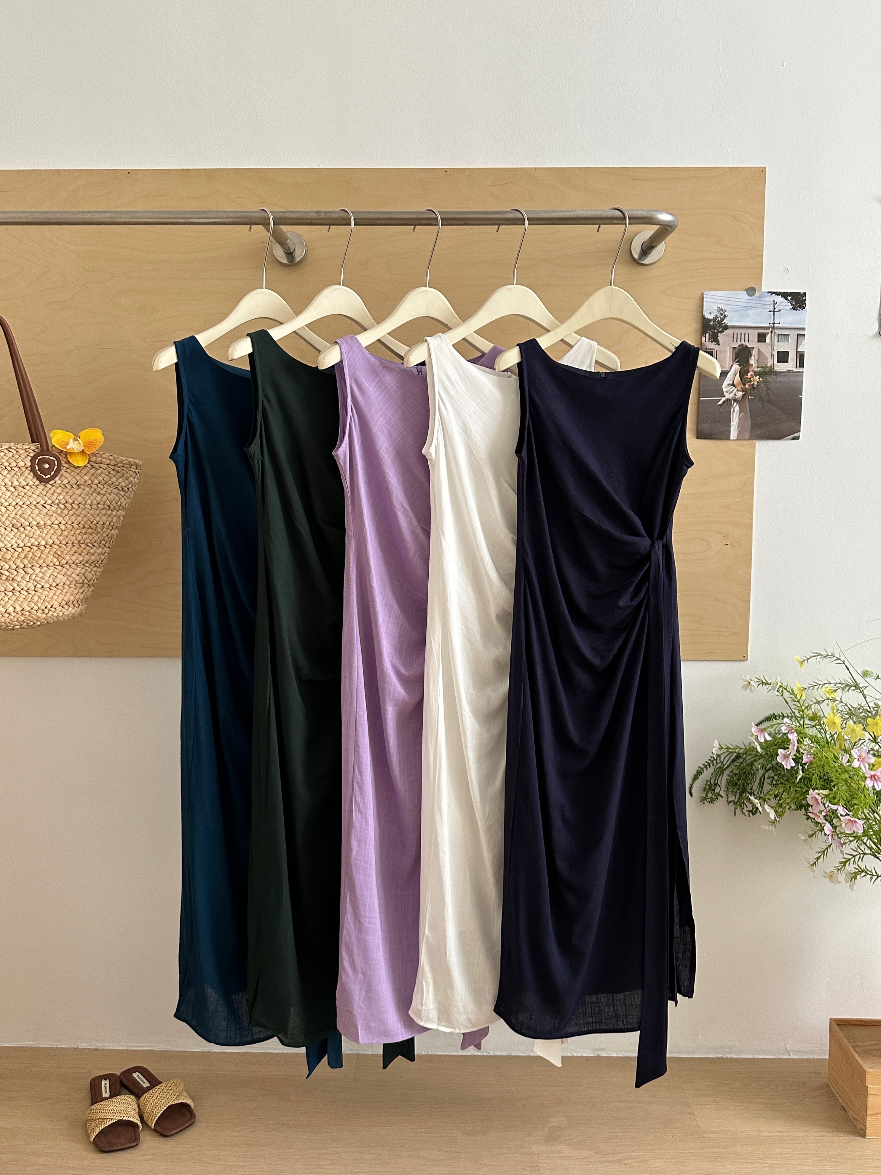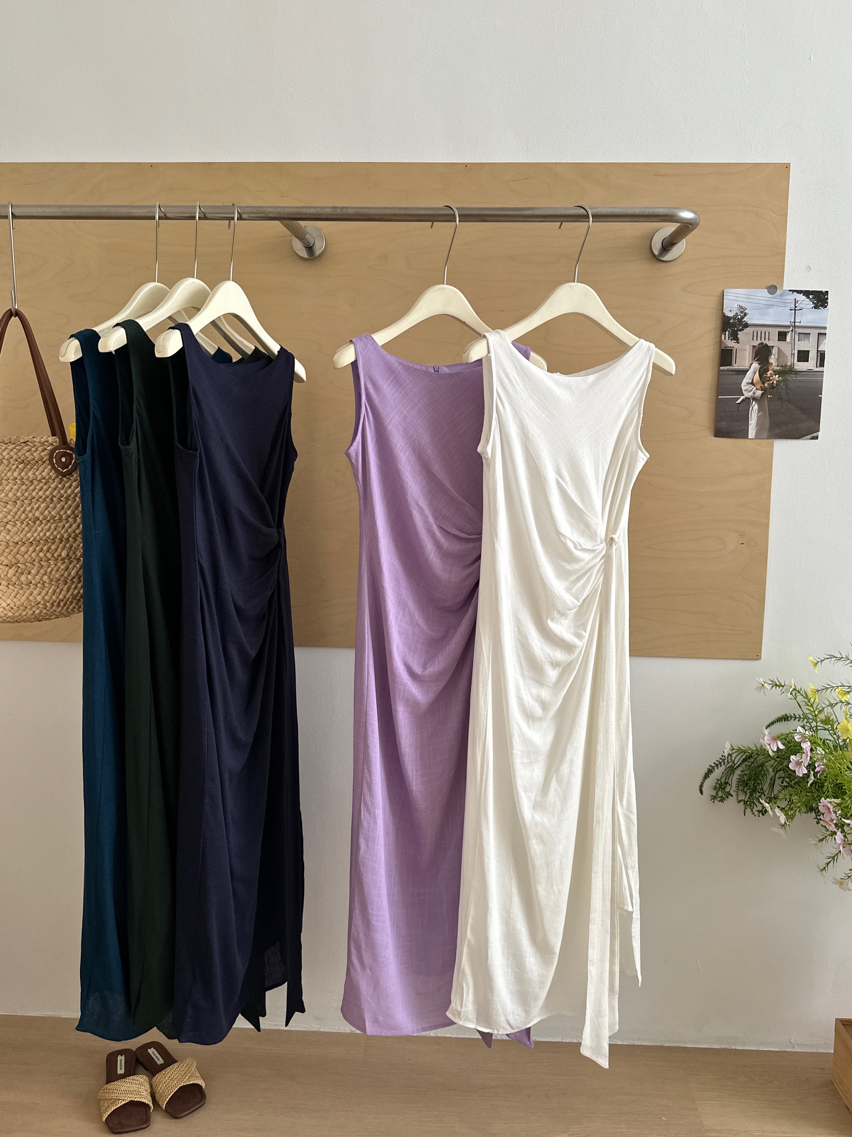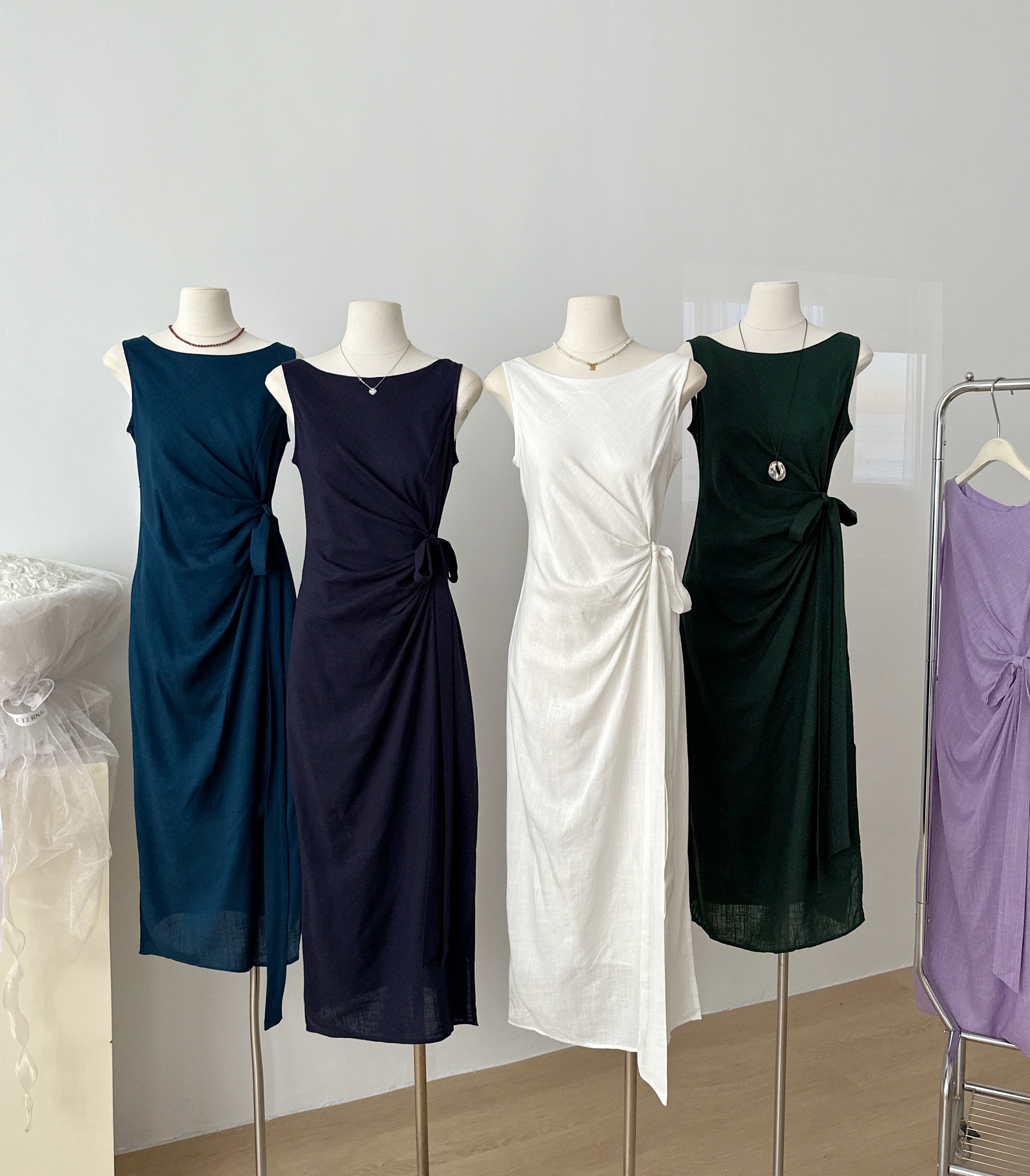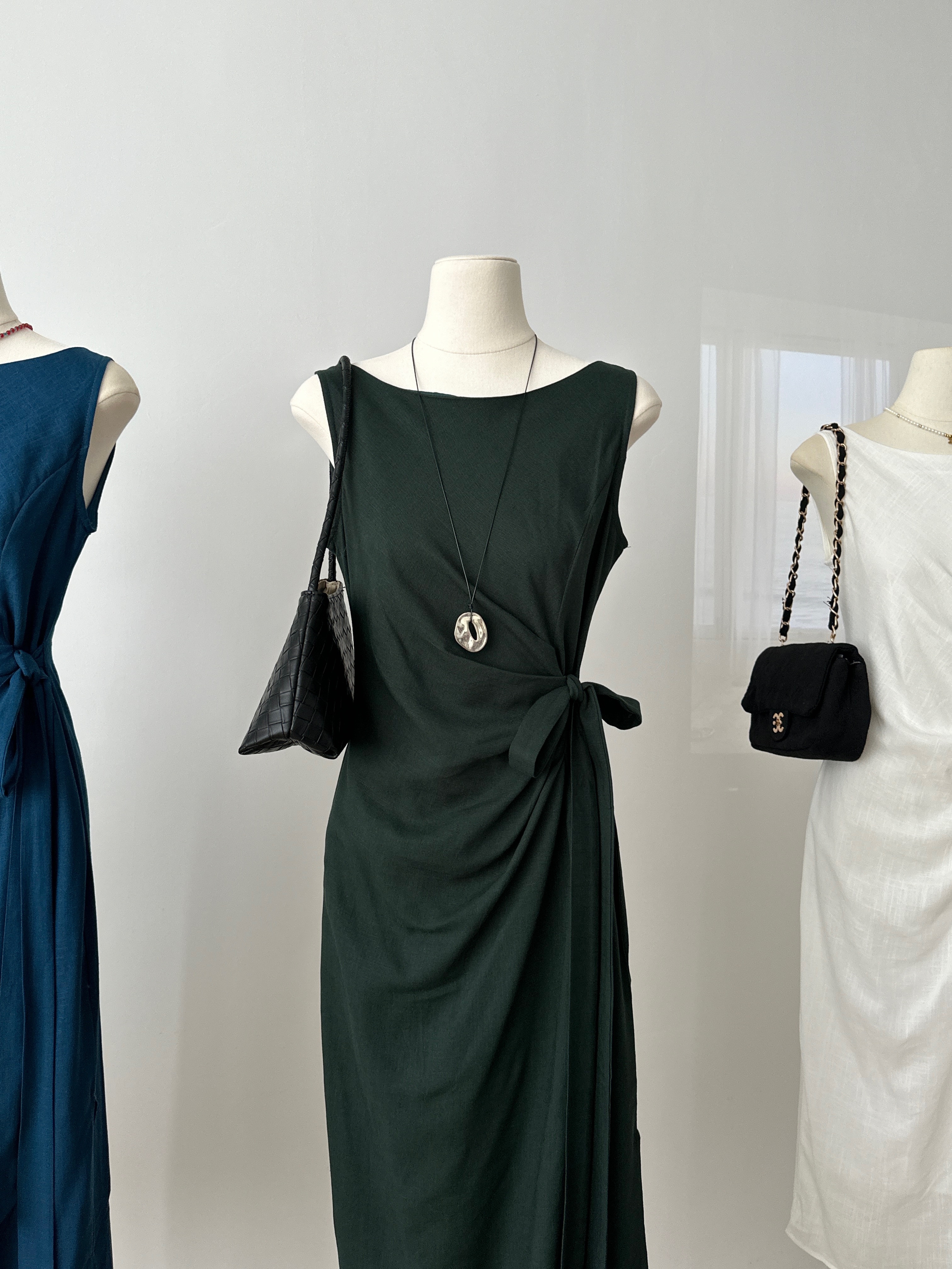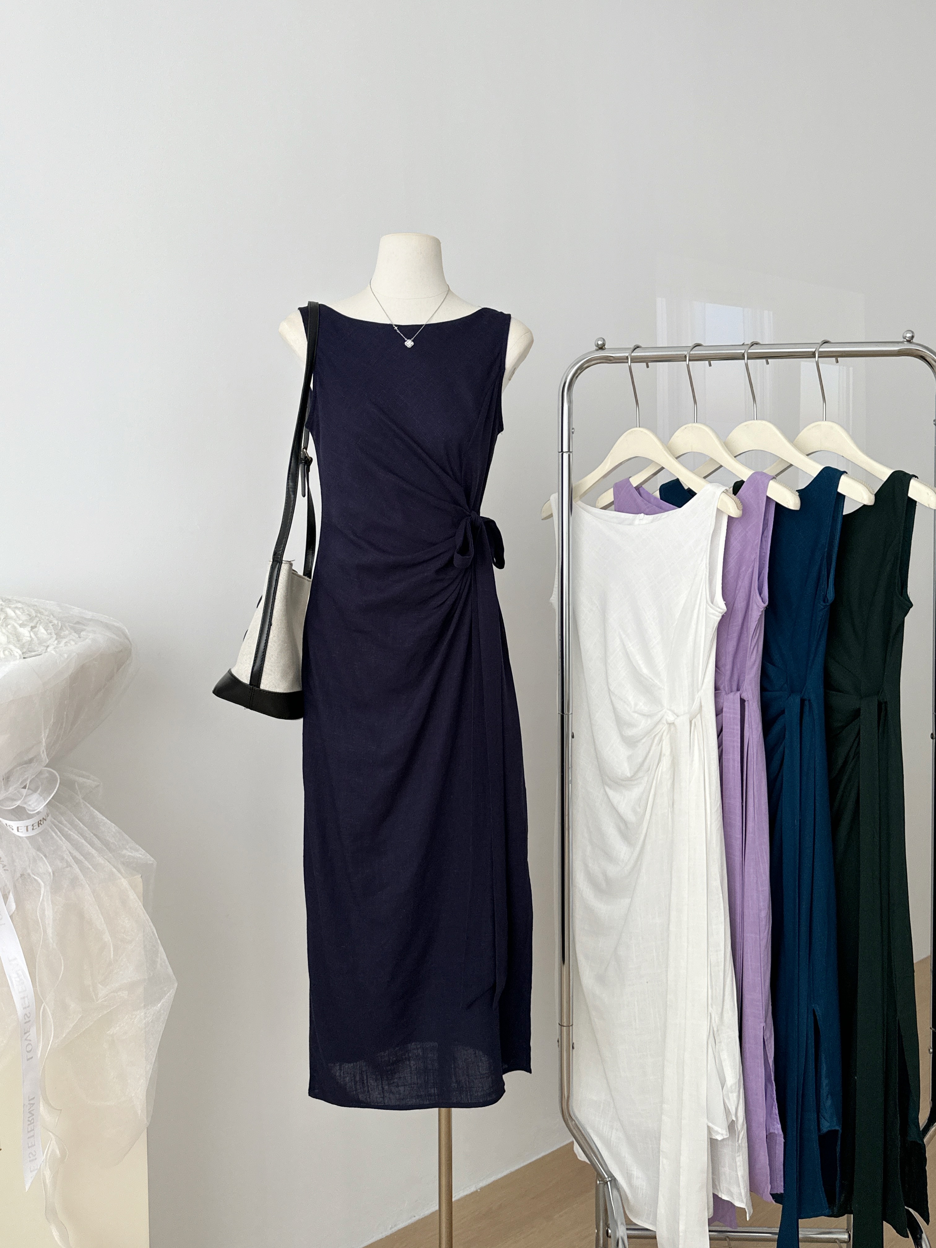 작은 허리 좋은 3 차원 겹침 Pleat 드레스 아니요 인내심있는 슬림해 보이는 민소매 허리 수축 치마 2026 여름 새로운