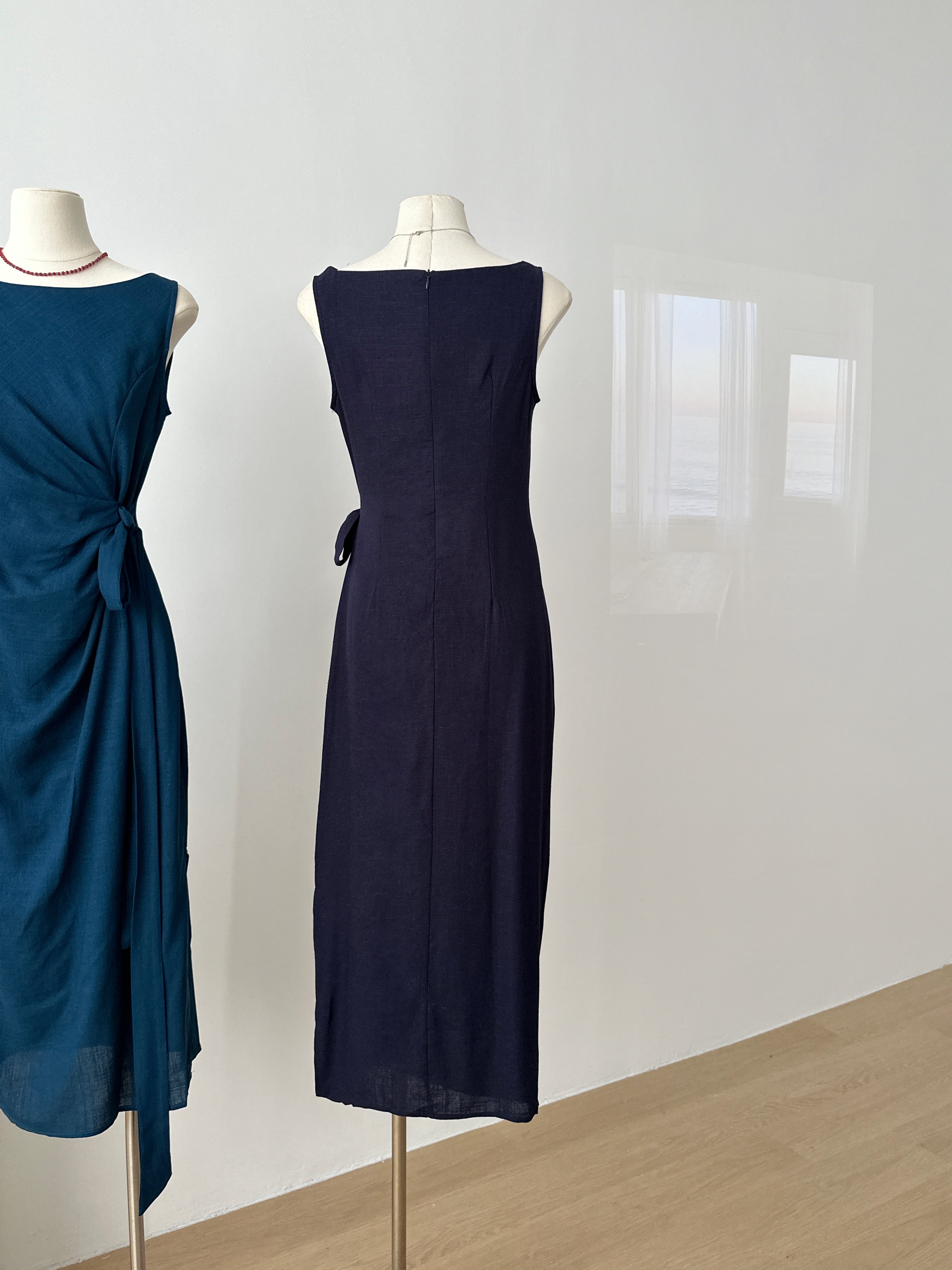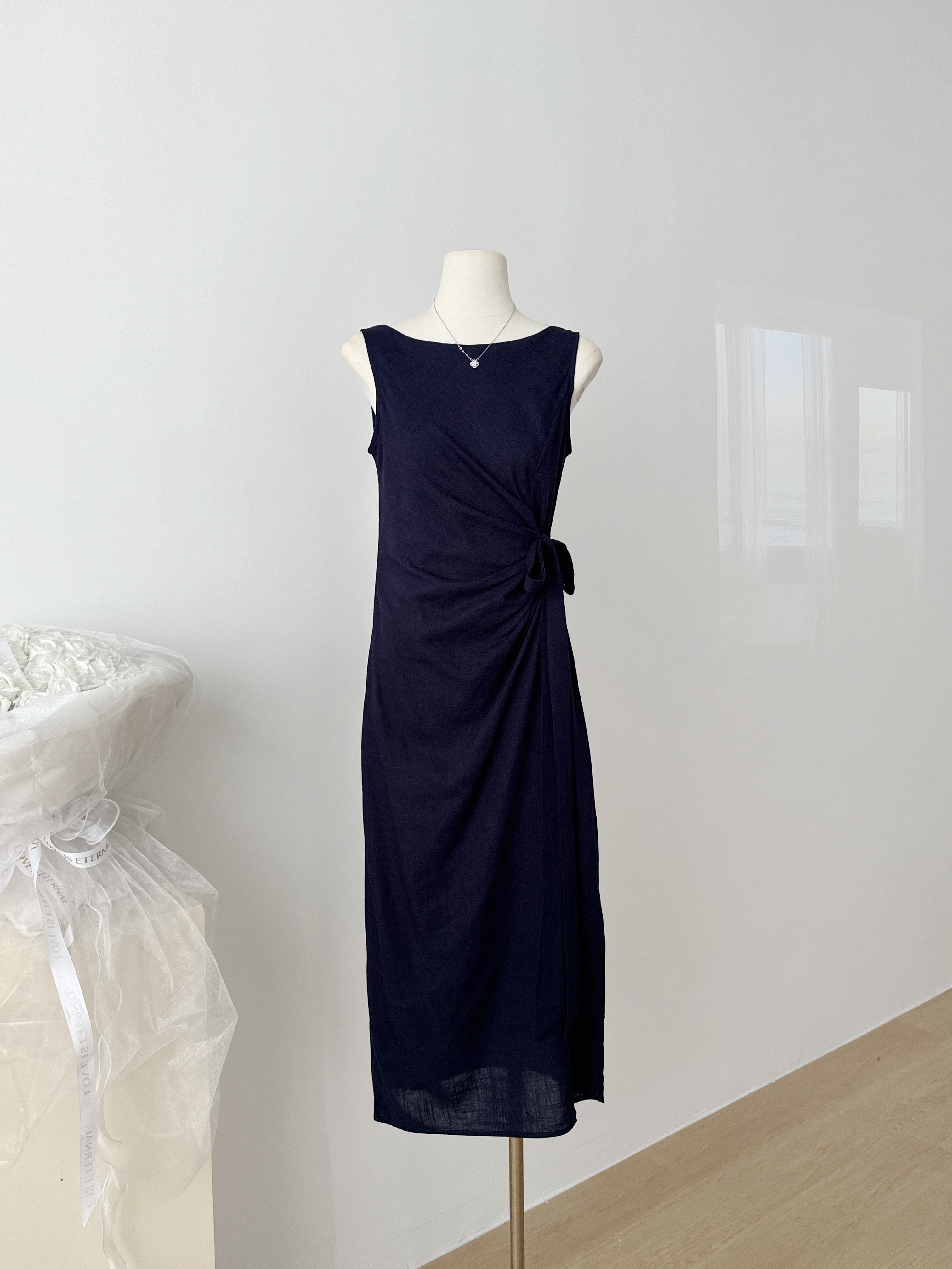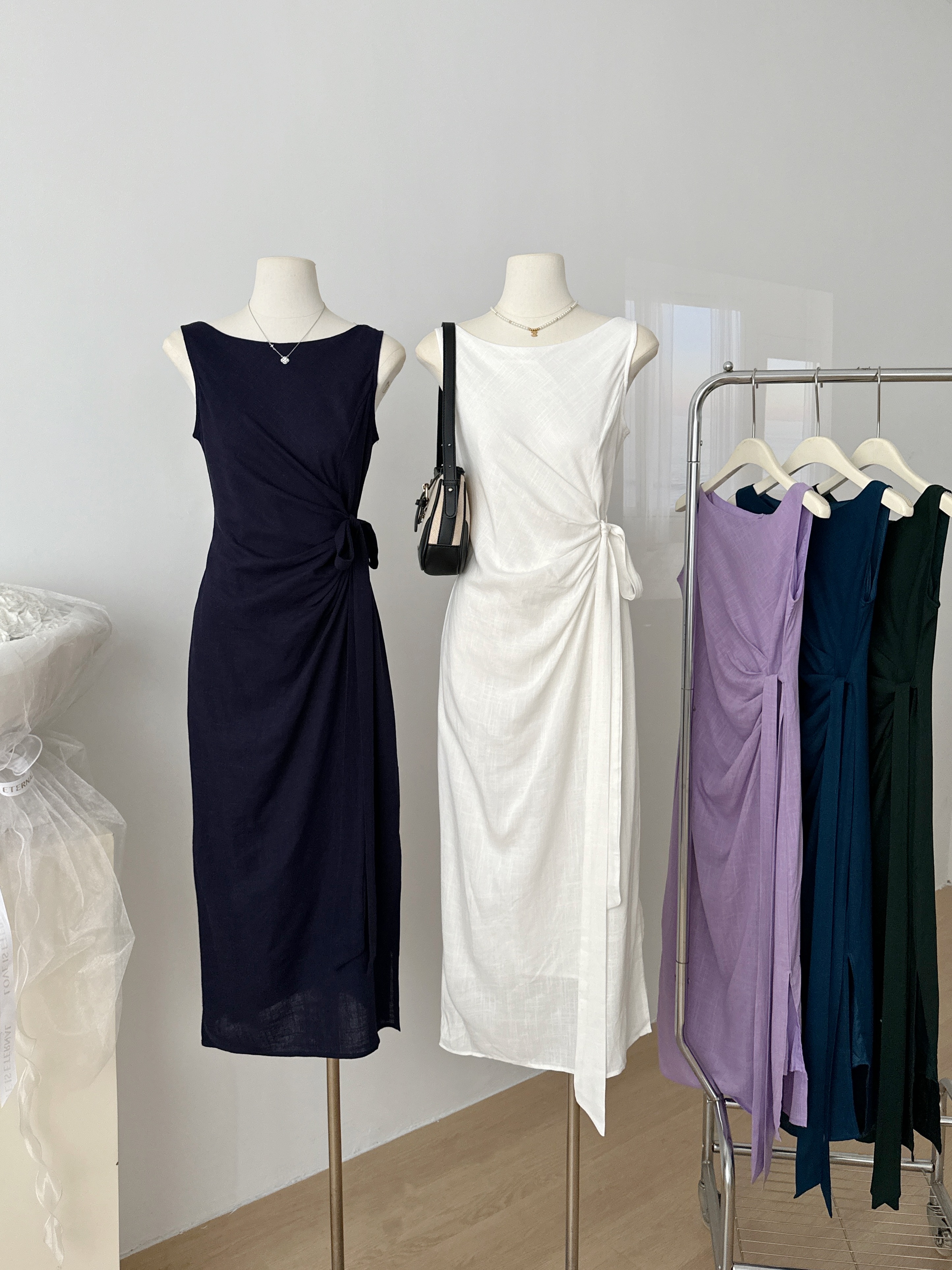 소나무 객실 달 고급 센스 품격 도트 무늬 여성 드레스 측면 허리 수축 리넨 면화 프랑스식 롱 스커트
