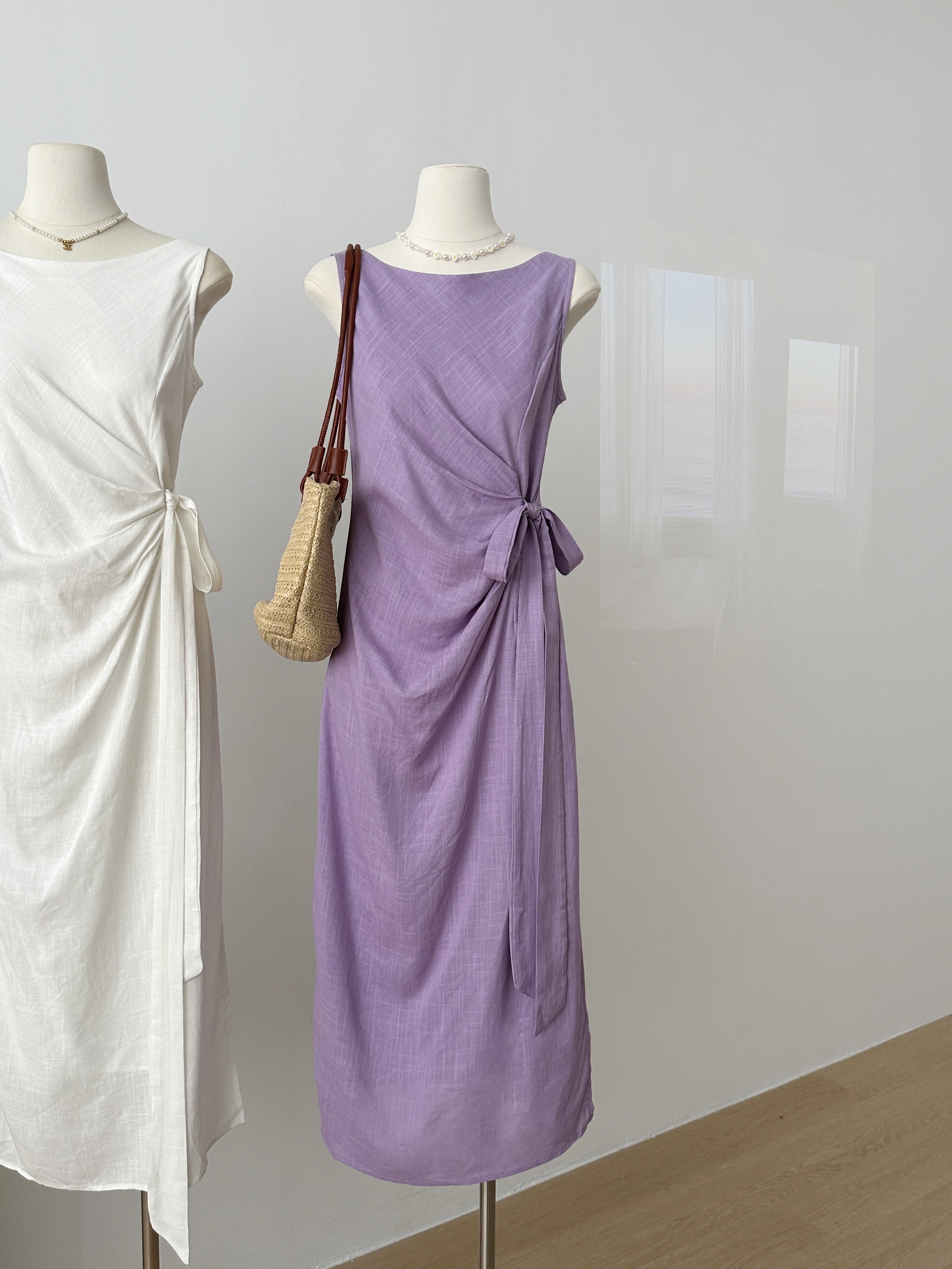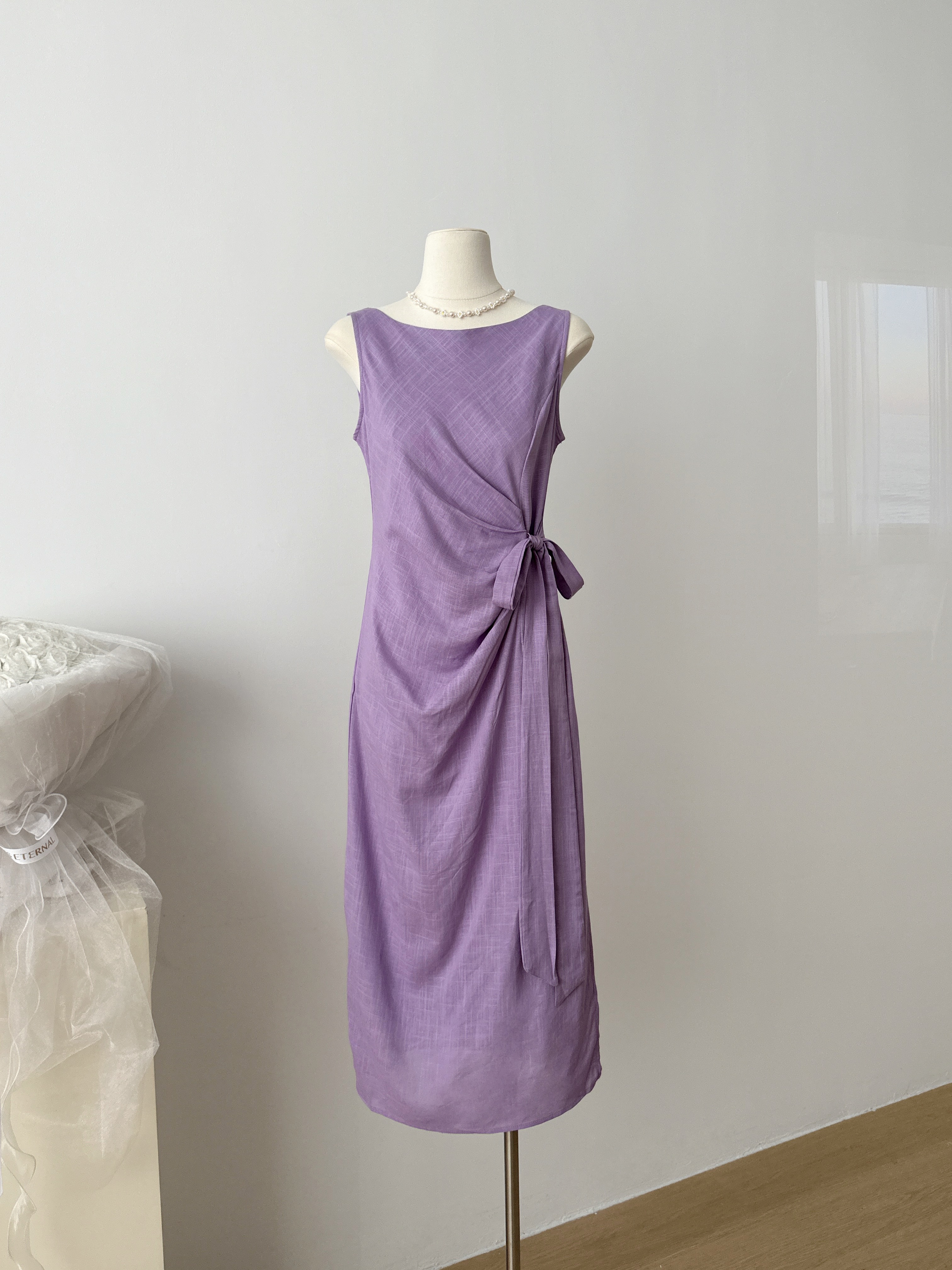 보라색 레이스업 허리 수축 슬림해 보이는 반팔 여성 드레스 여름 2026 새로운 프랑스식 우아함 롱 스커트