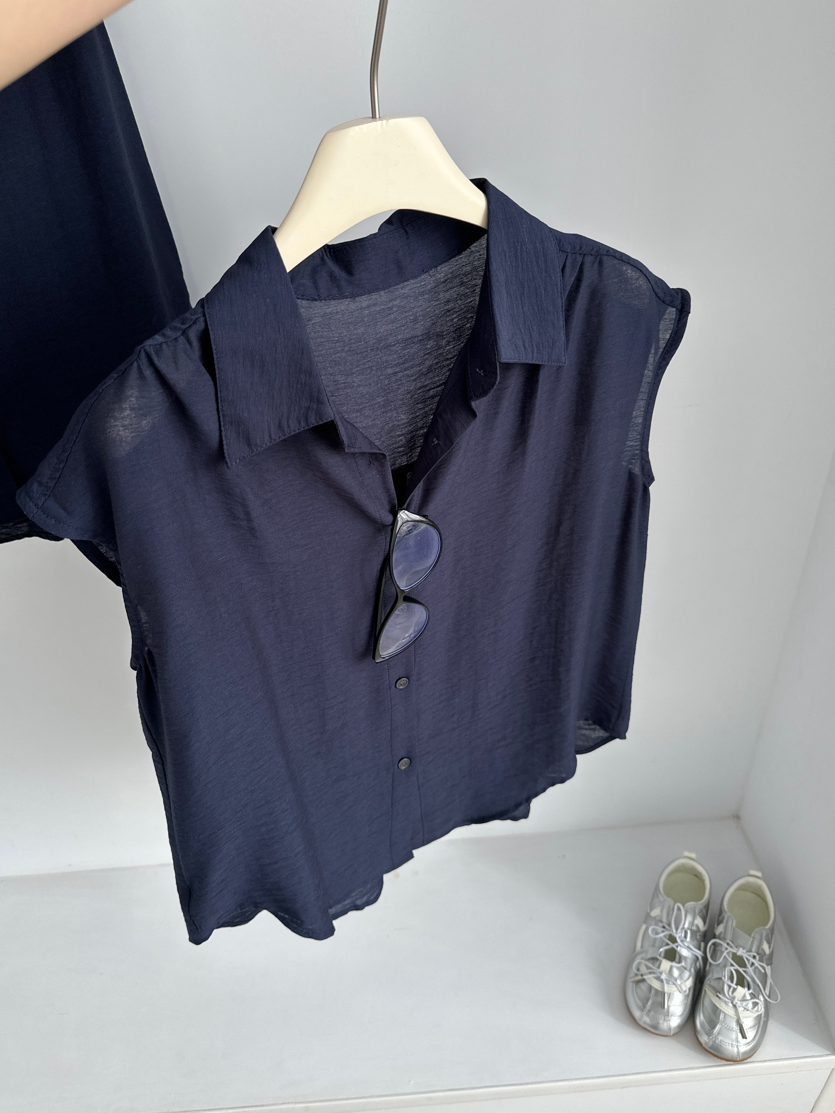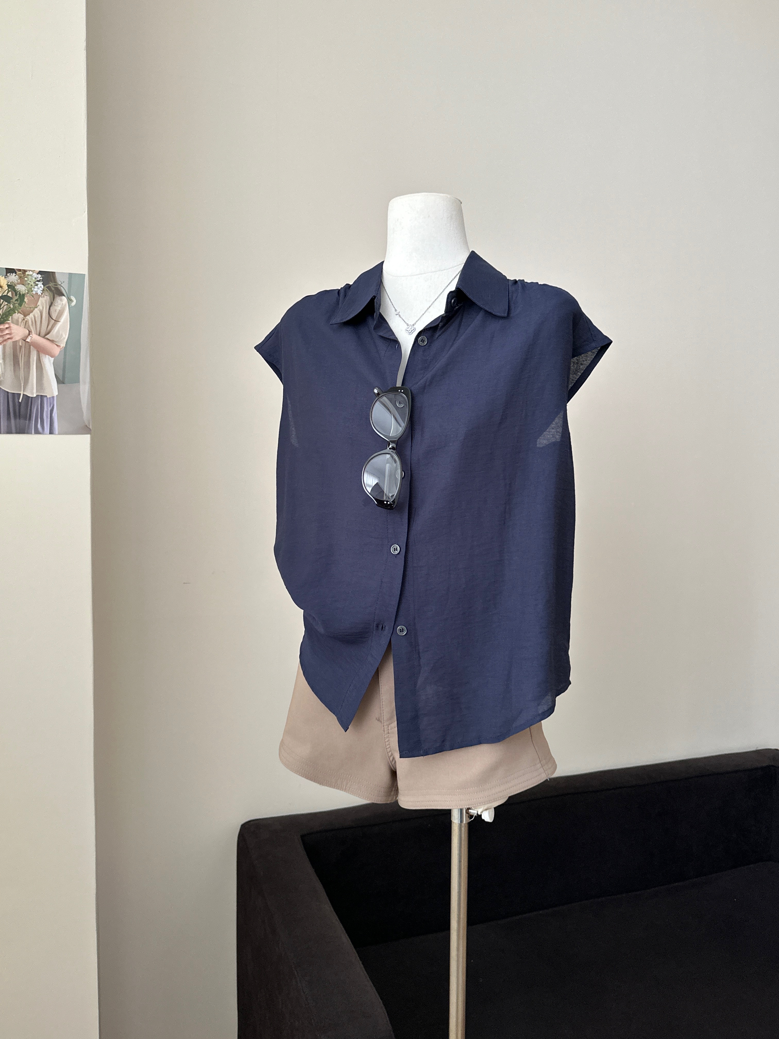 프랑스식 여성 셔츠 2026 여름 새로운 루즈핏 느긋한 바람 익스트림 제인 품격 출퇴근 파란색 맨위 여성