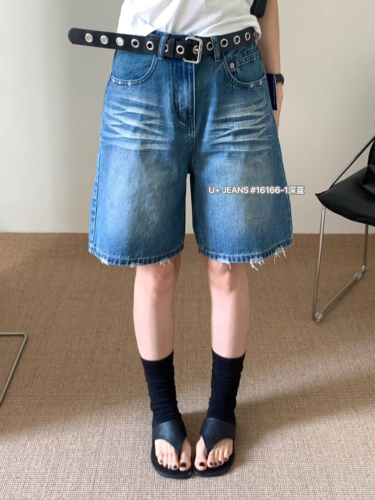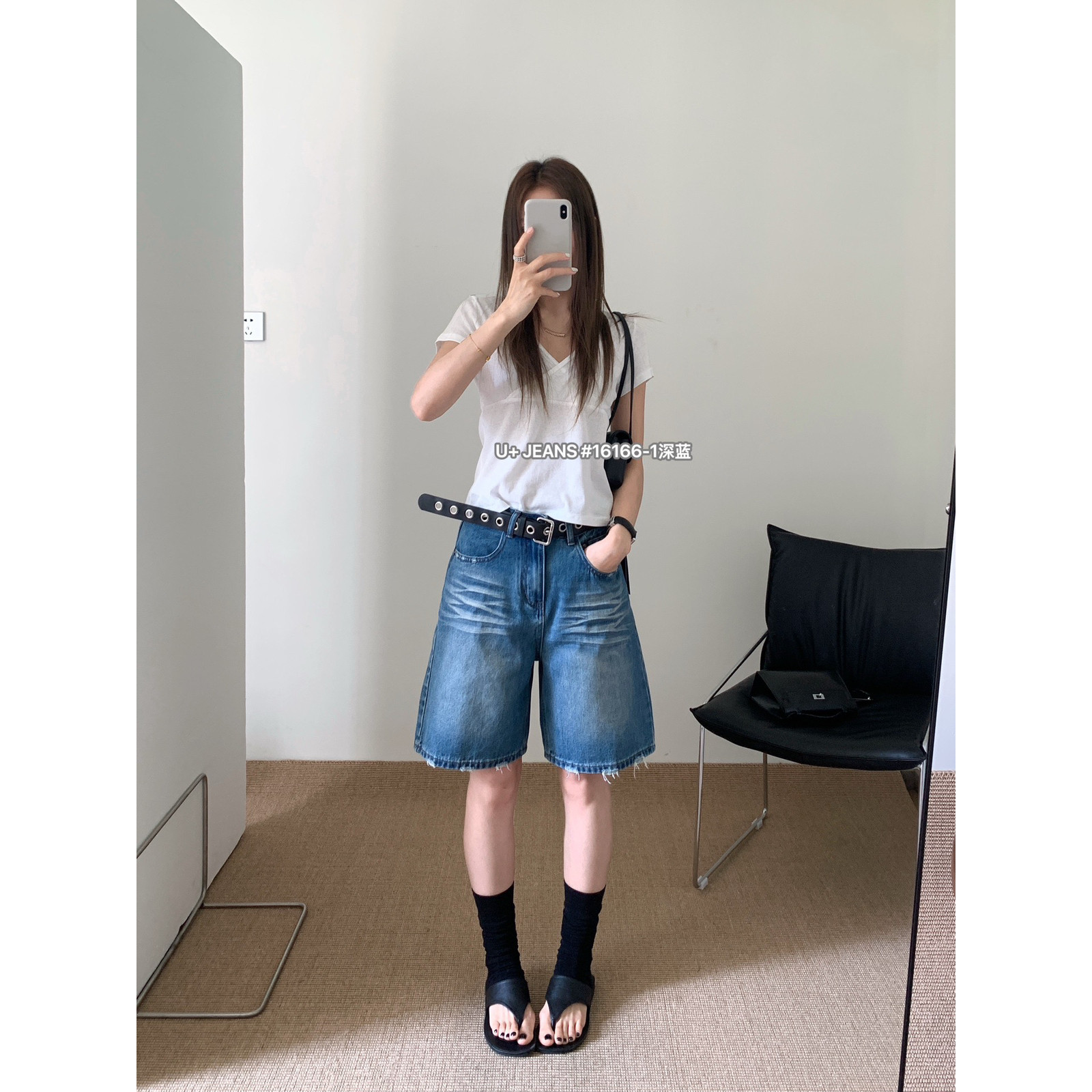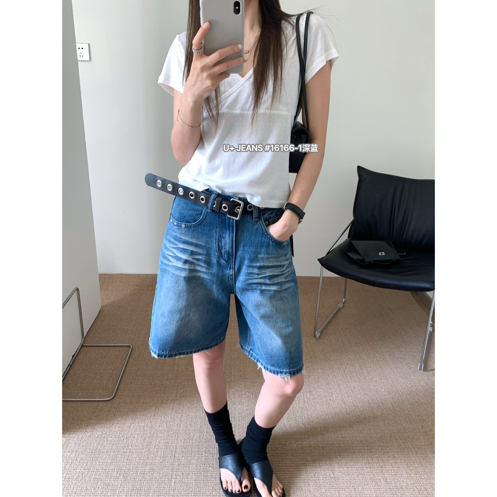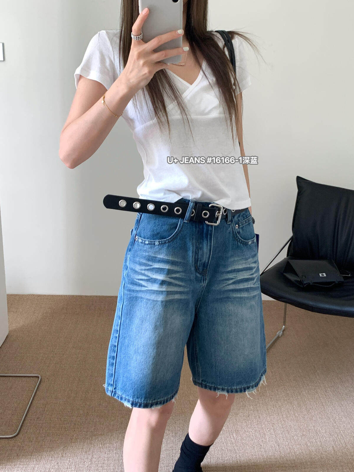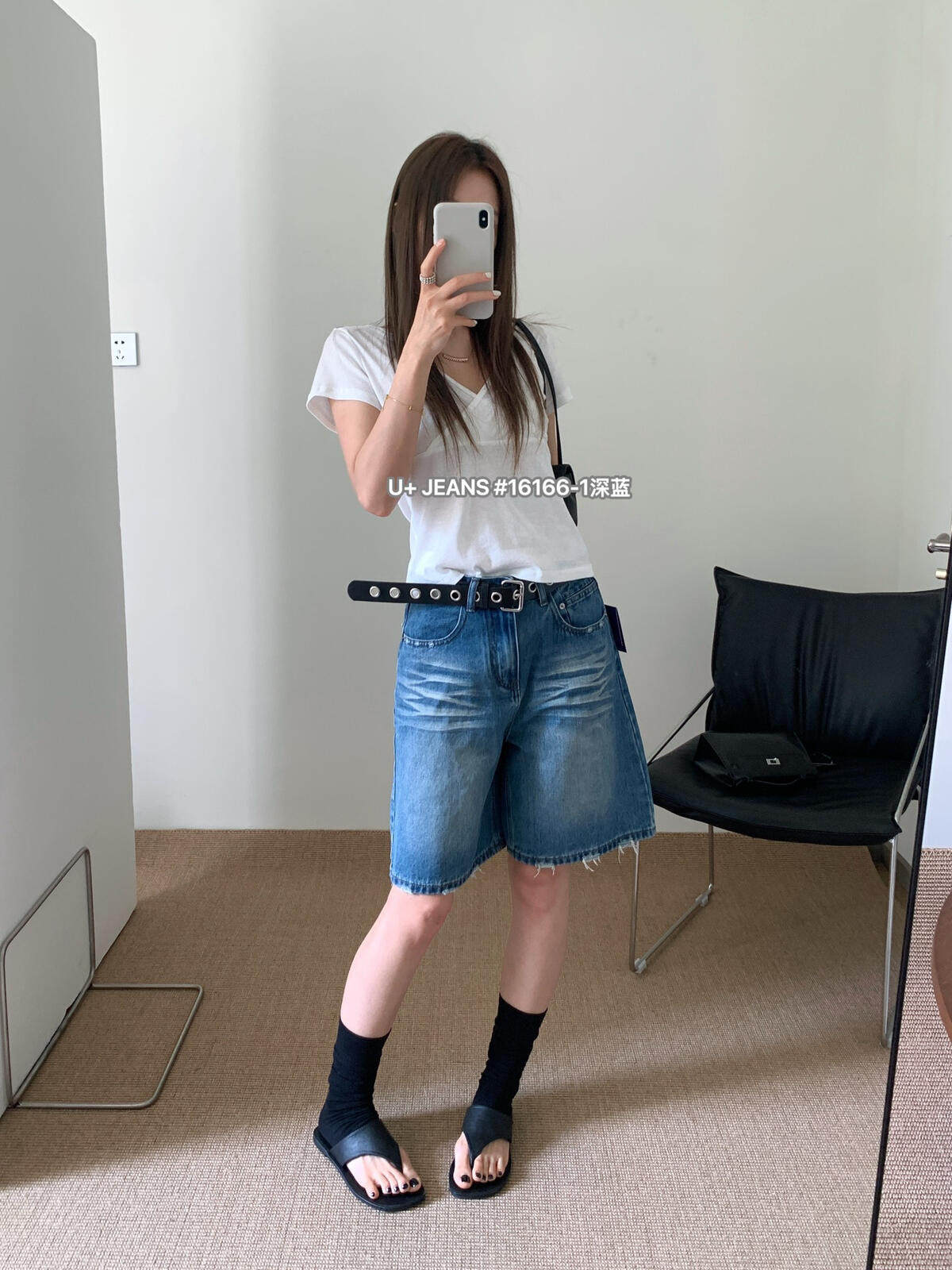 u+ 데님 여름 새로운 한국 스타일 패션 다용도 디자인 센스 하늘색 워시 수색 반바지 청바지 16166