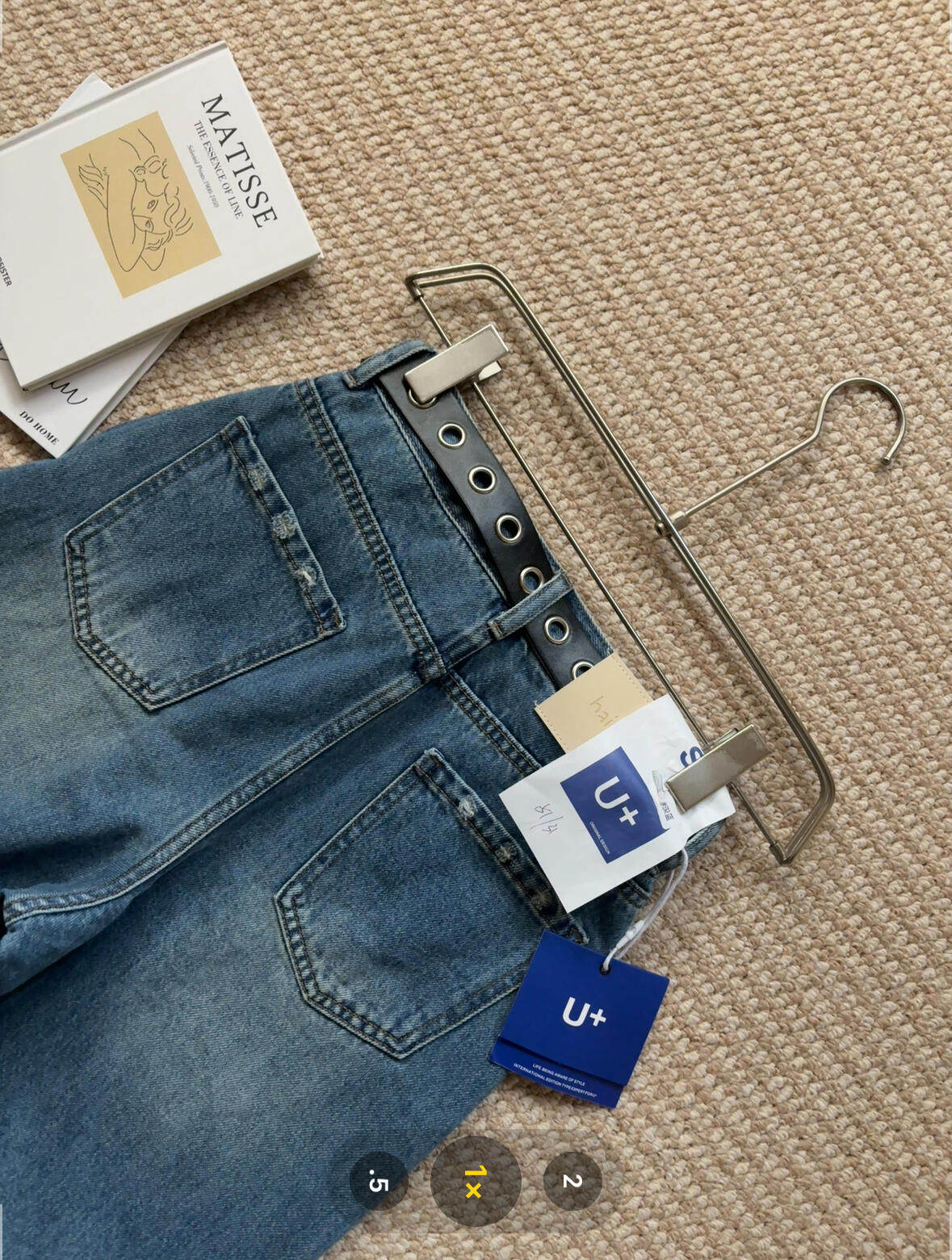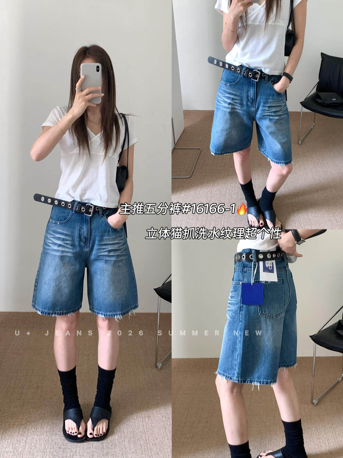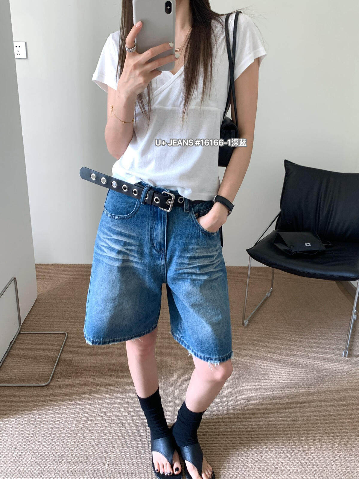u+ 데님 여름 새로운 한국 스타일 패션 작은 여자 다용도 슬림해 보이는 디자인 센스 반바지 청바지 16166-1