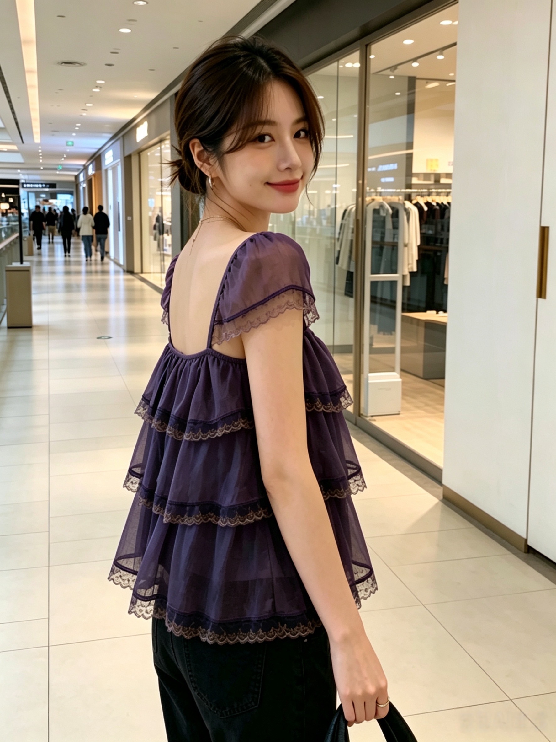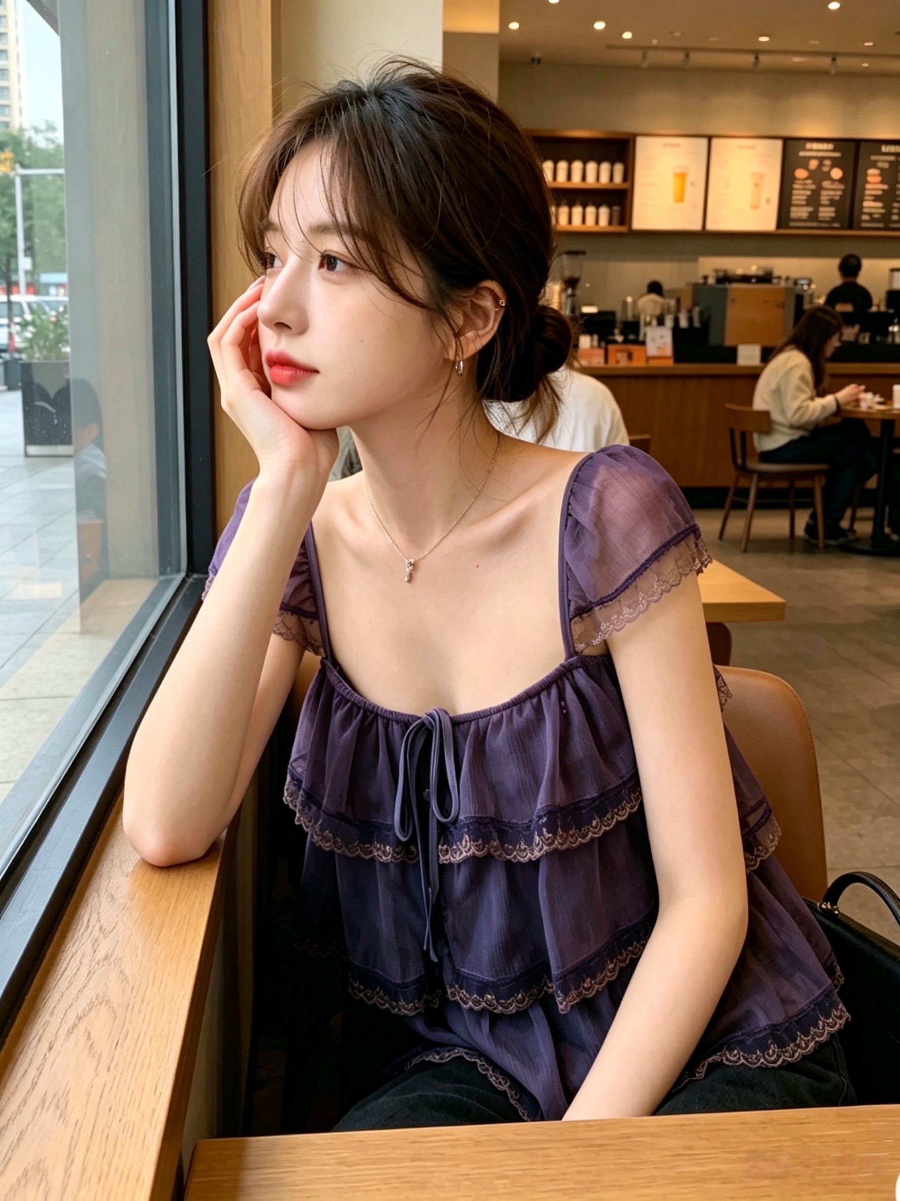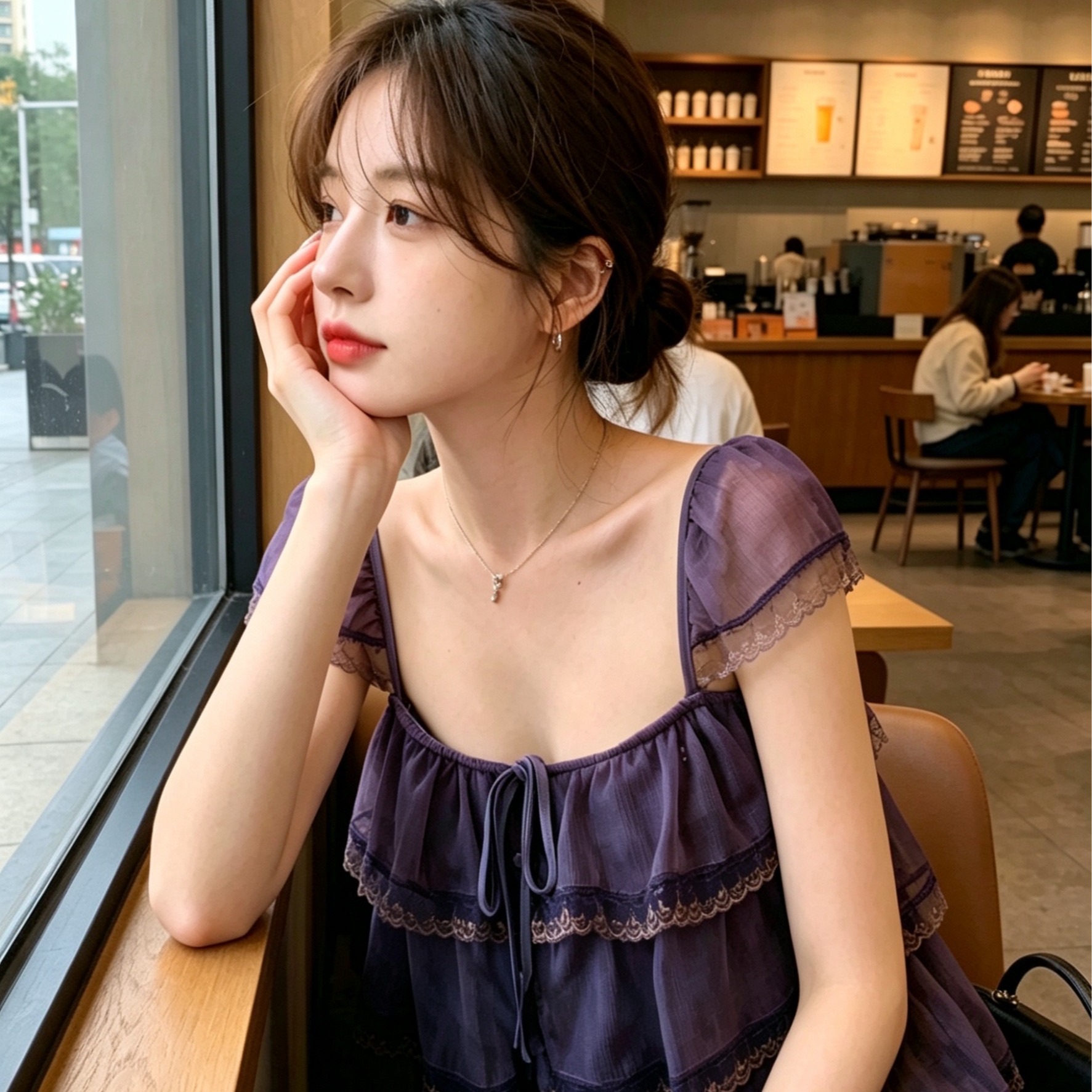 인터넷 그림 프릴 레이스 계층의 감각 작은 날다 소매 광장 칼라 슬립 여성