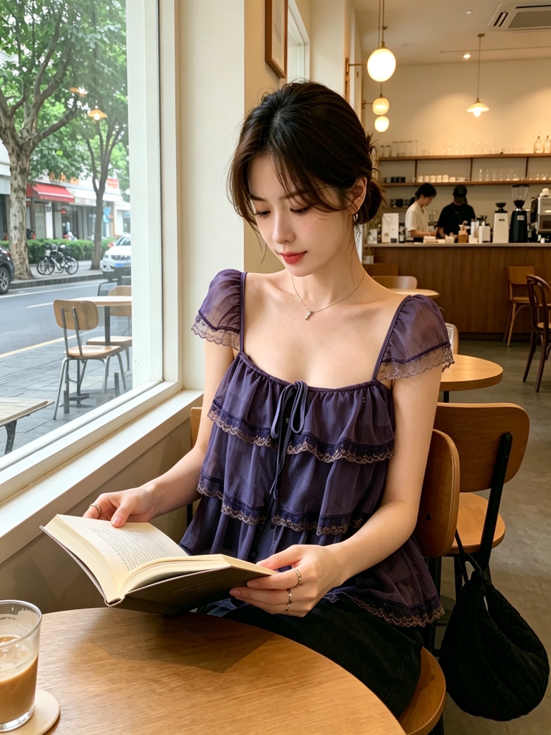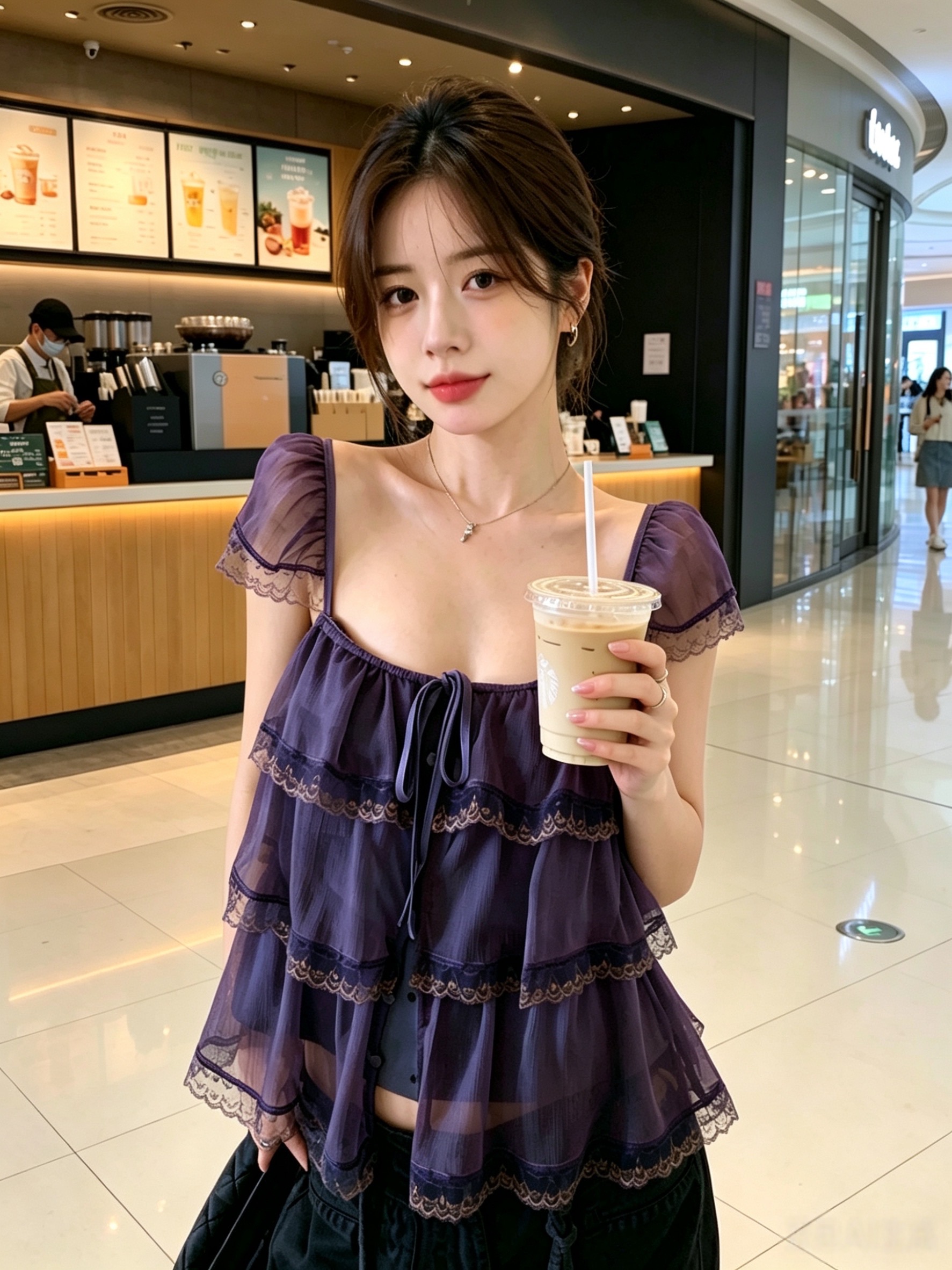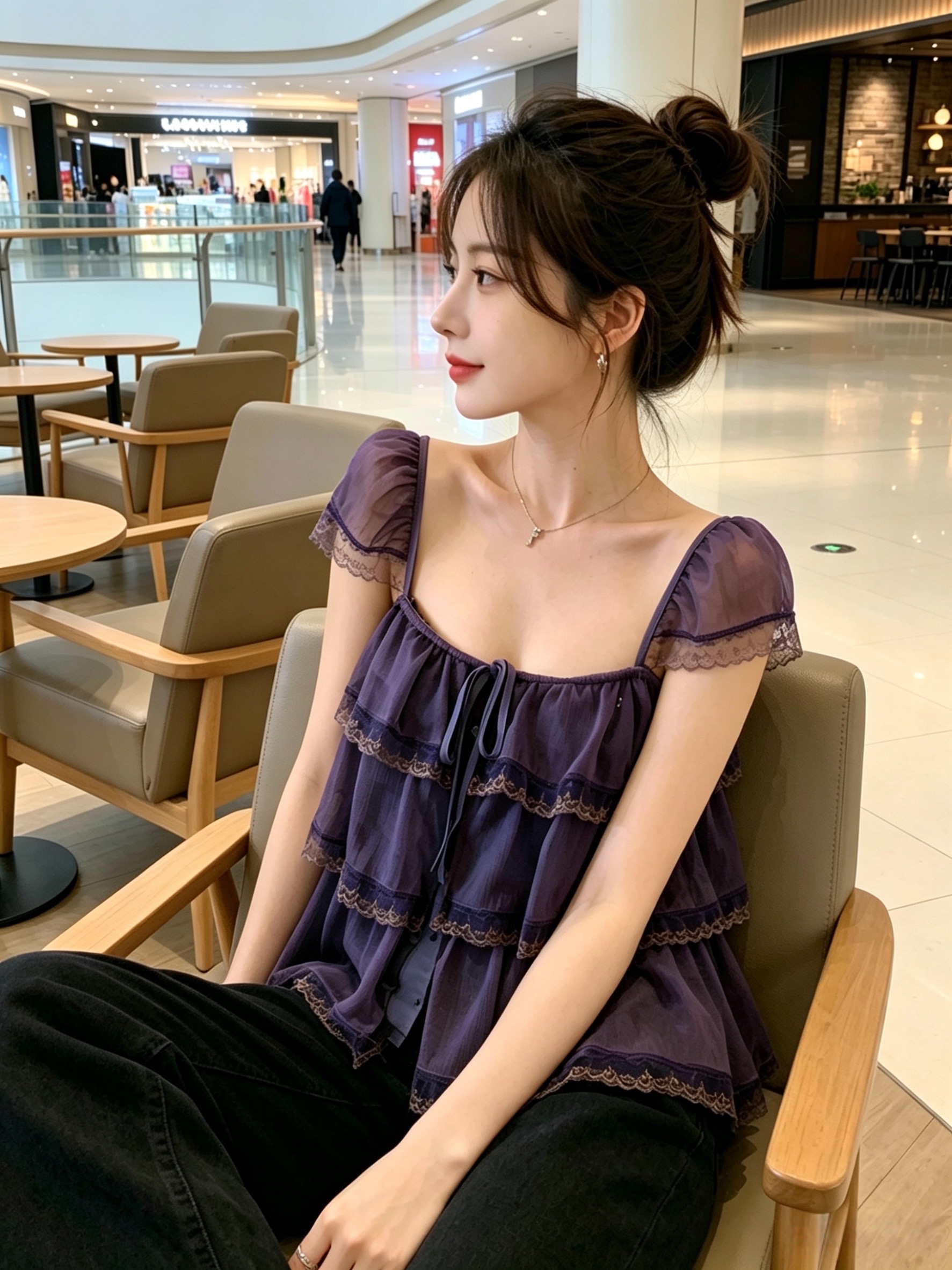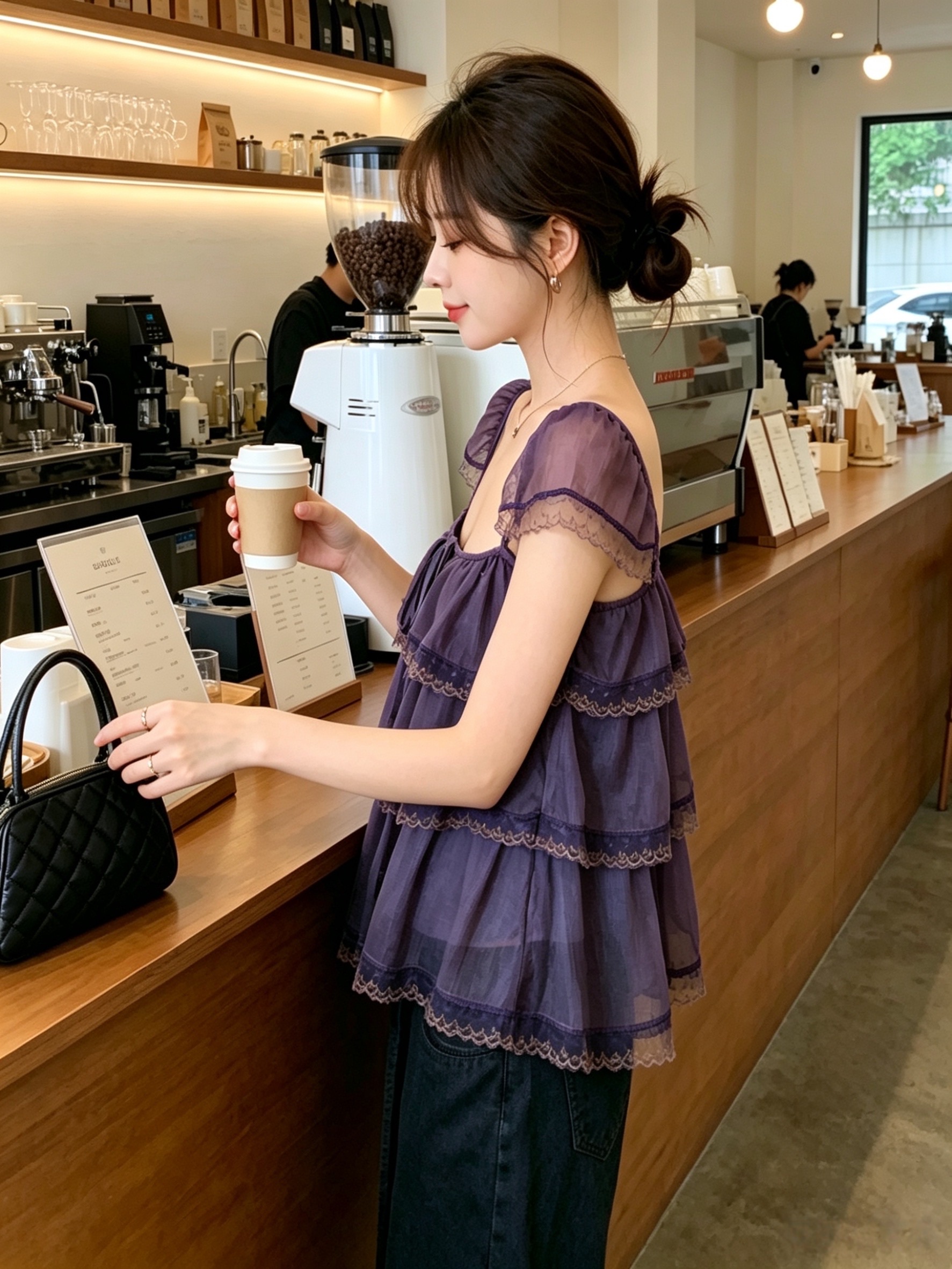 실사 정가 수 있습니다. 조정 어깨끈 오픈 가디건 프릴 레이스 계층의 감각 작은 날다 소매 광장 칼라 슬립 여성