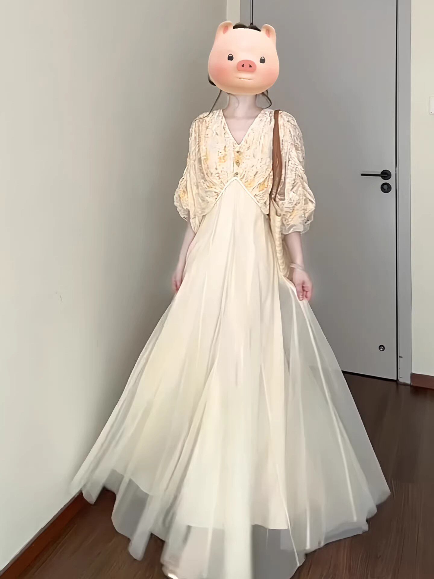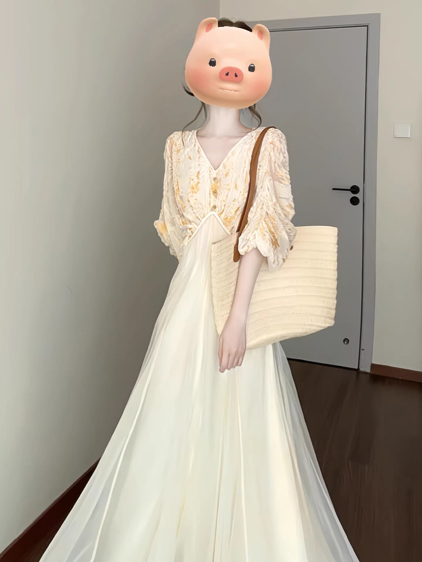새로운 중식 국풍 무거운 작업 V넥 품격 여성 드레스 여름 2026 새로운 관대 한 점잖은 꼬집기 허리 작은 치마