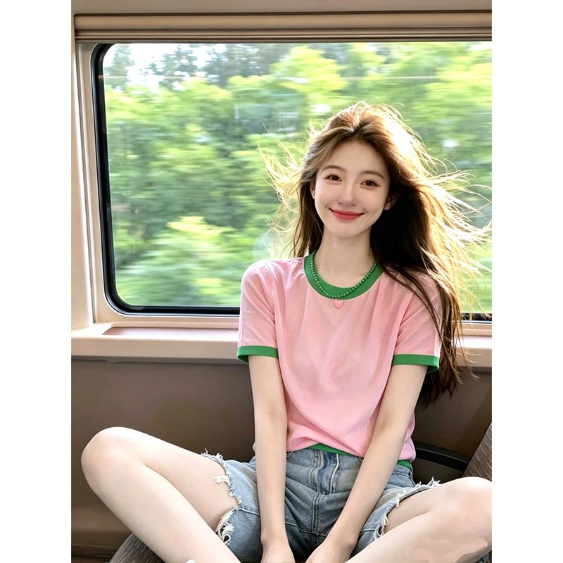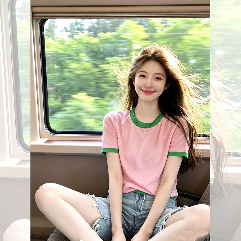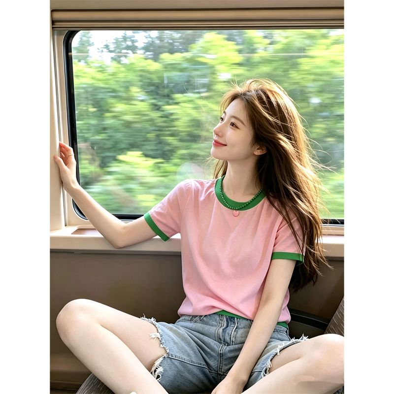 눈꽃 면 165g 빅 사이즈 다용도 라운드 넥 긍정적 인 어깨 반팔 티셔츠 여성 여름 새로운 슬림해 보이는 인사이드 가져 가라. 달콤함 맨위