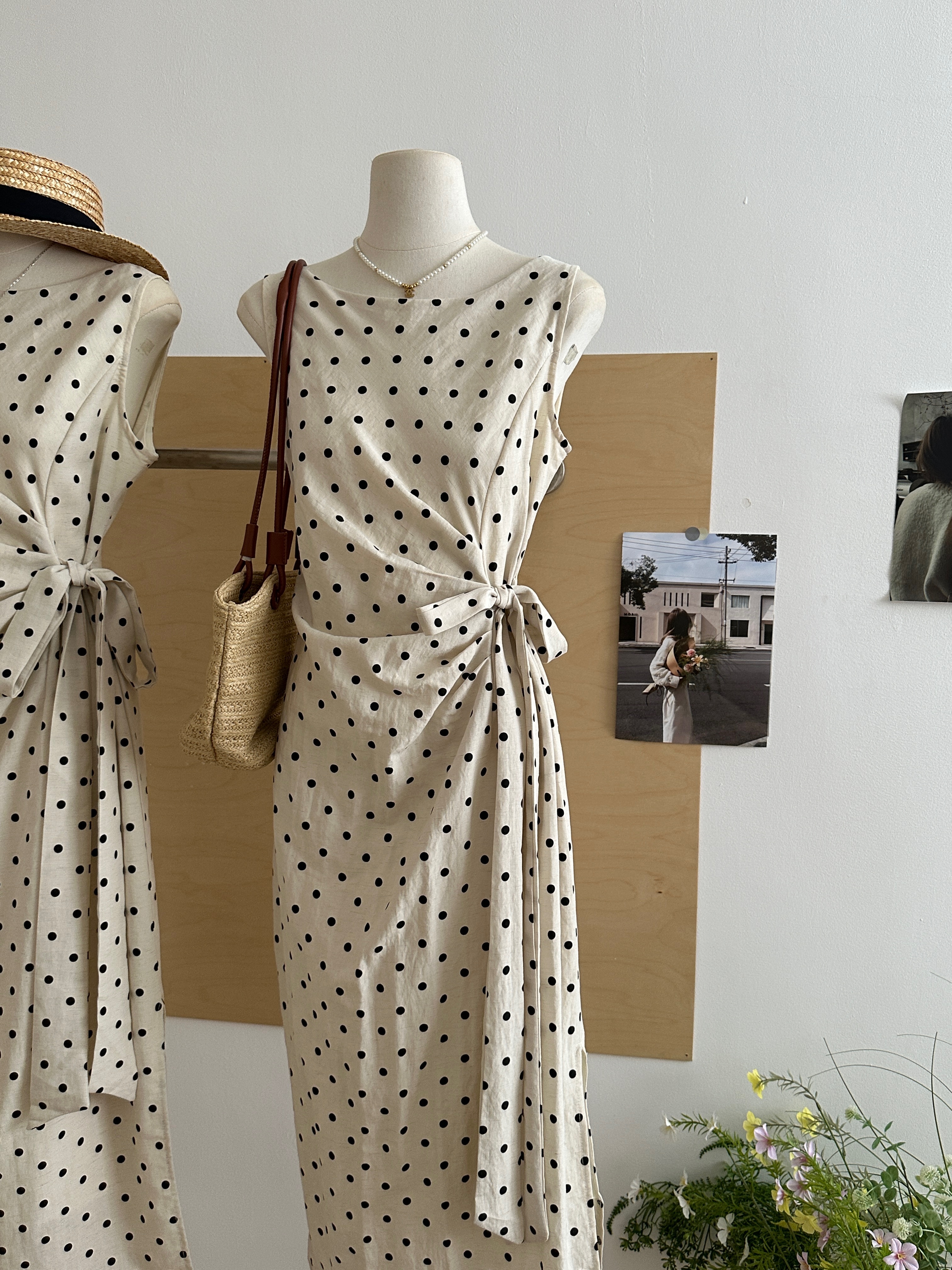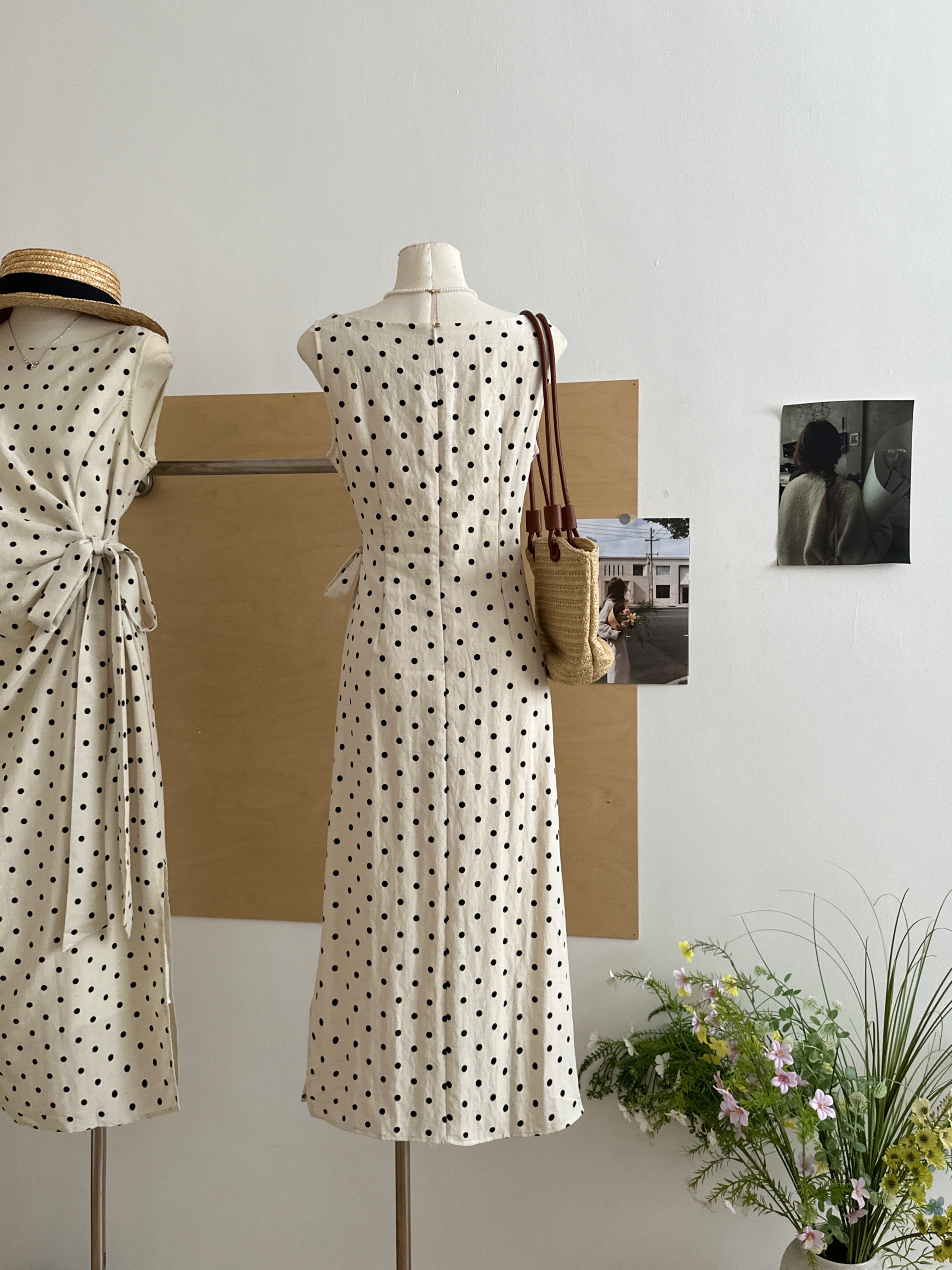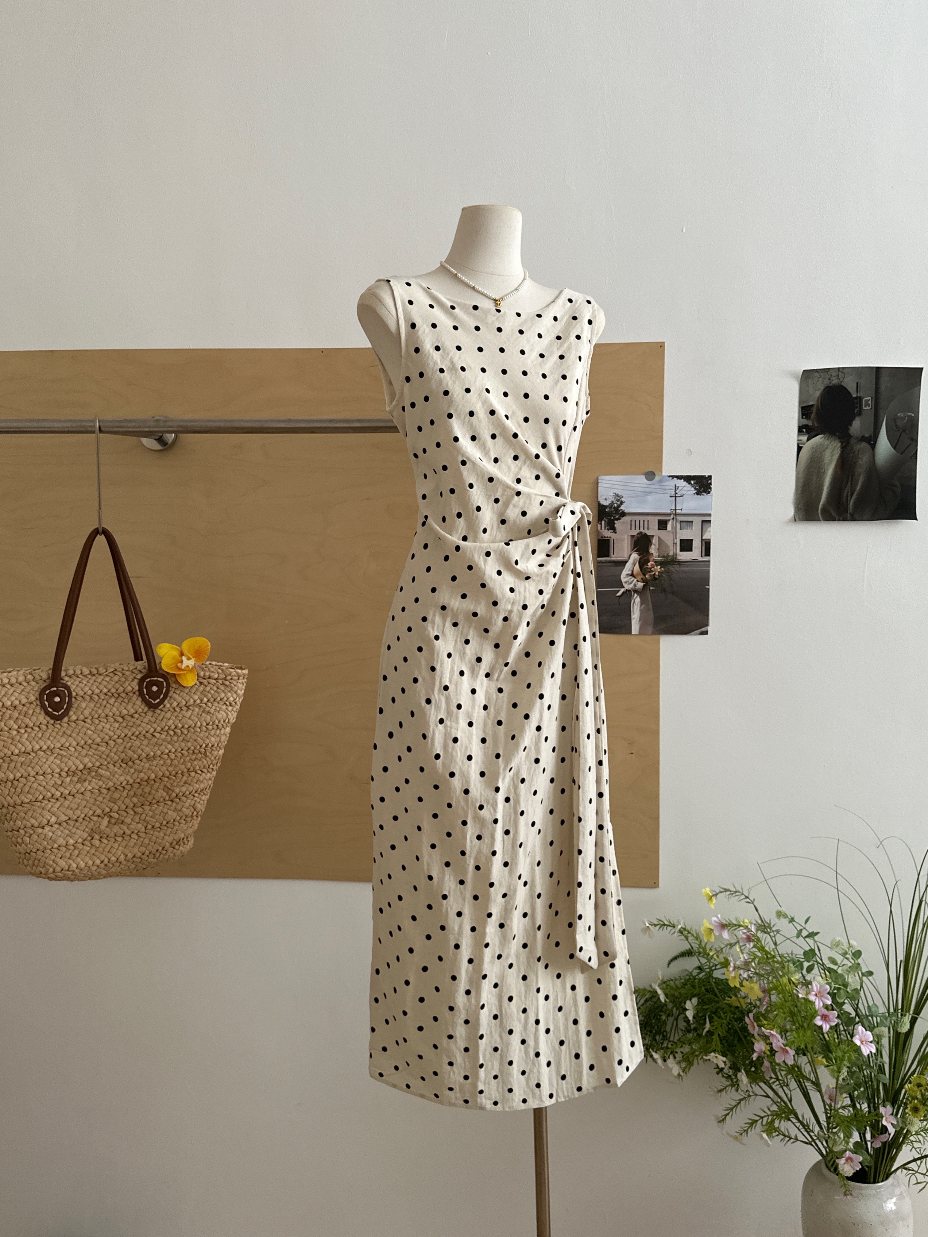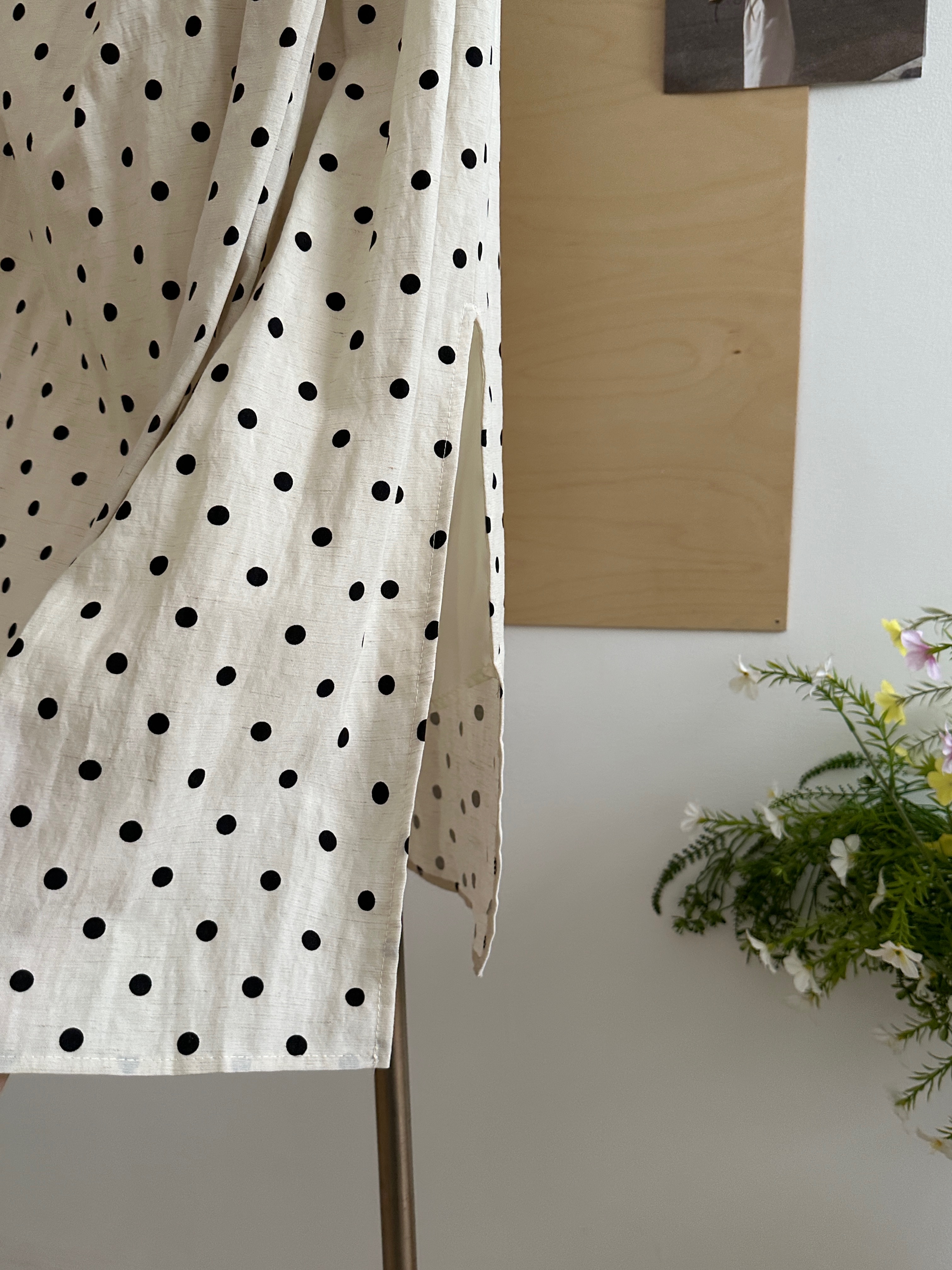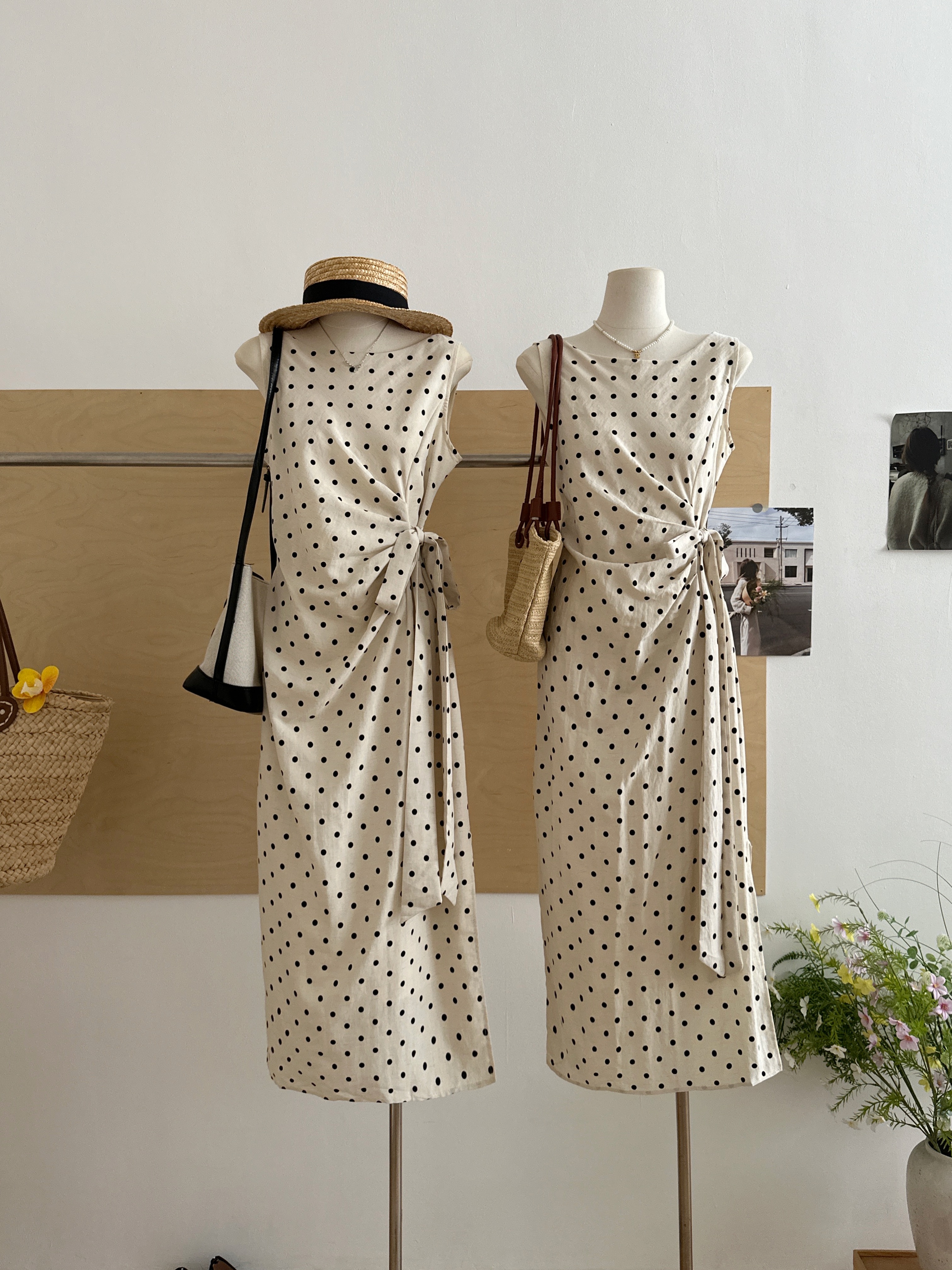 소나무 객실 달 고급 센스 품격 도트 무늬 여성 드레스 측면 허리 수축 리넨 면화 프랑스식 롱 스커트