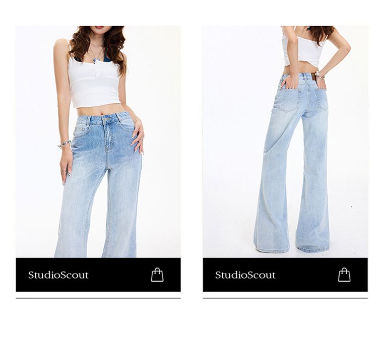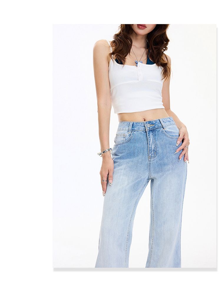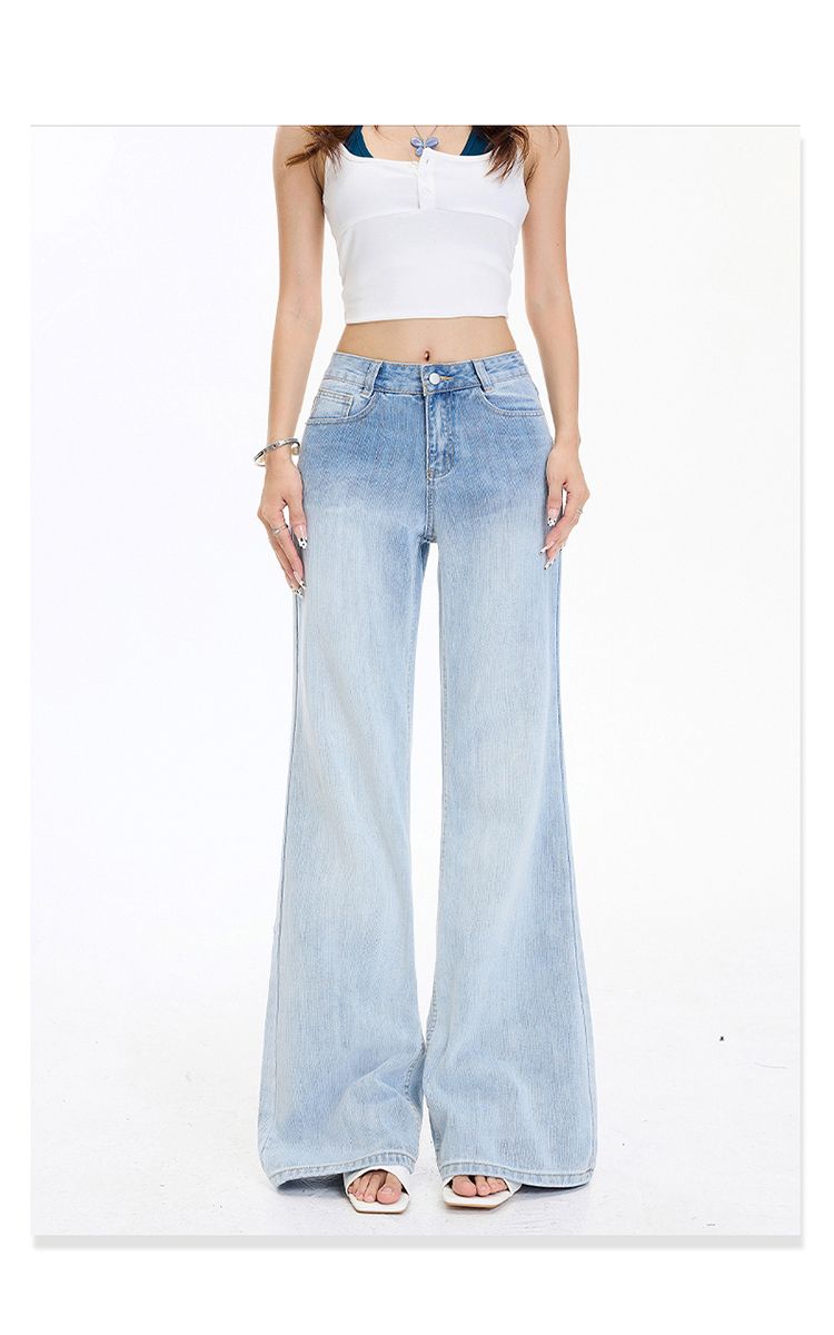 아메리칸 레트로 하이웨이스트 루즈핏 마이크로 나팔 바지 그라데이션 다용도 도루 센스 청바지 여성 봄 여름 새로운