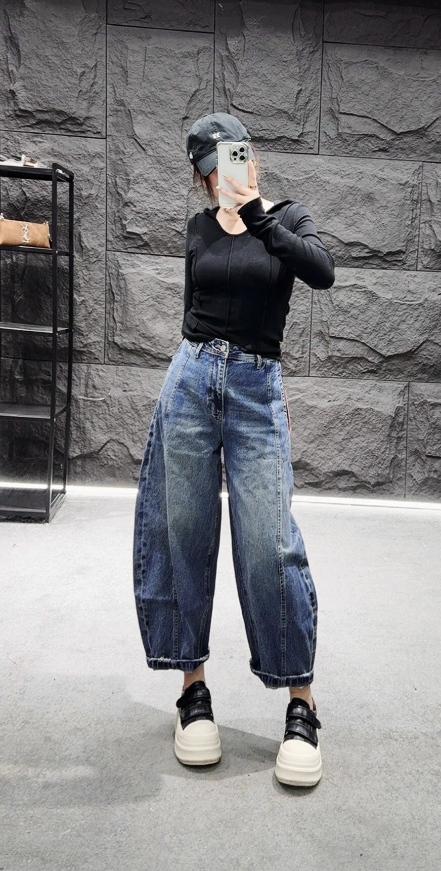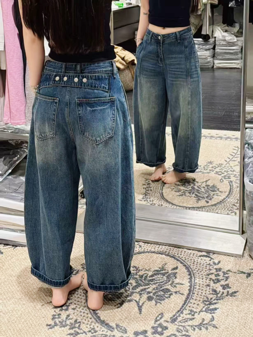 jeans 73261 여름 2026 새로운 하이웨이스트 루즈핏 캐주얼 다용도 순면 넓은 다리 애드벌룬 9부 바지 여성 b