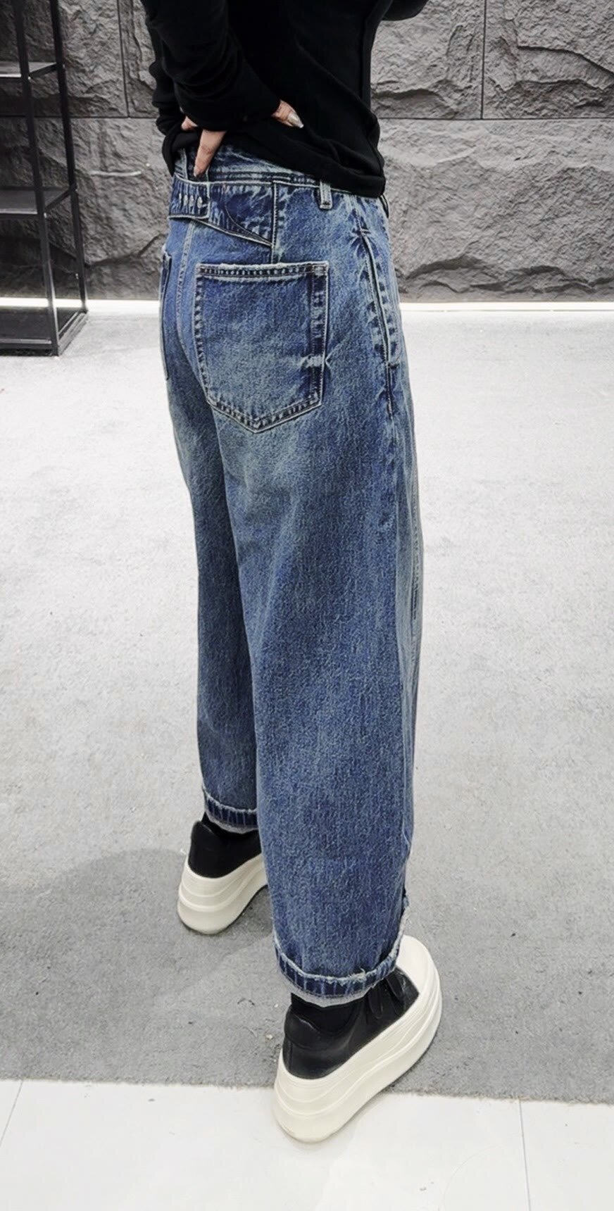 m8 데님 색상 바지 갈기 디자인 센스 루즈핏 대 에디션 와 성별 없음 폭탄 7 분 와이드 레그 팬츠 청바지 55862