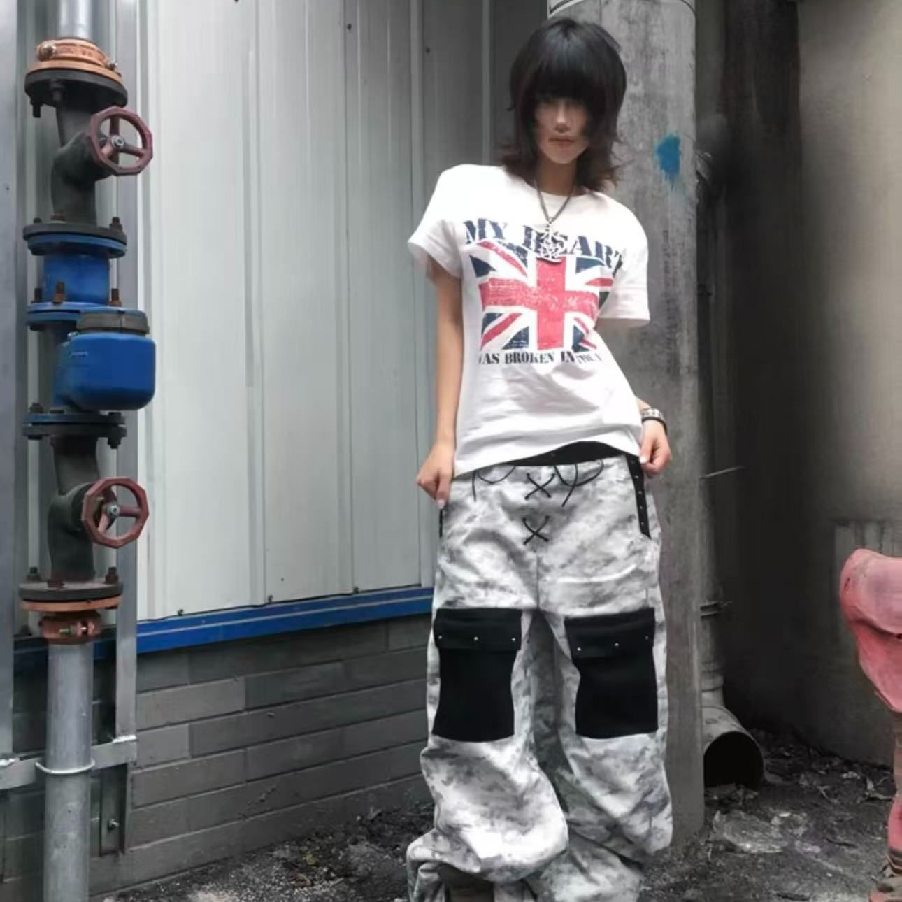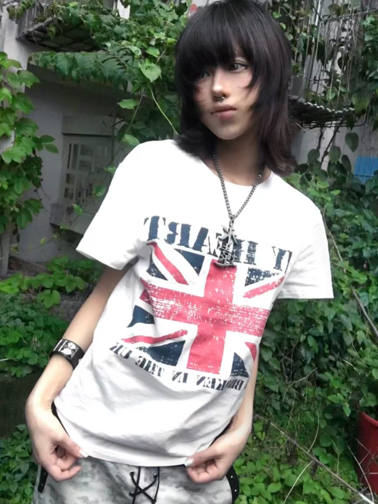 아메리칸 레트로 달콤한 차가운 핫걸 바람 별 프린트 반팔 티셔츠 여성 여름 새로운 맨위