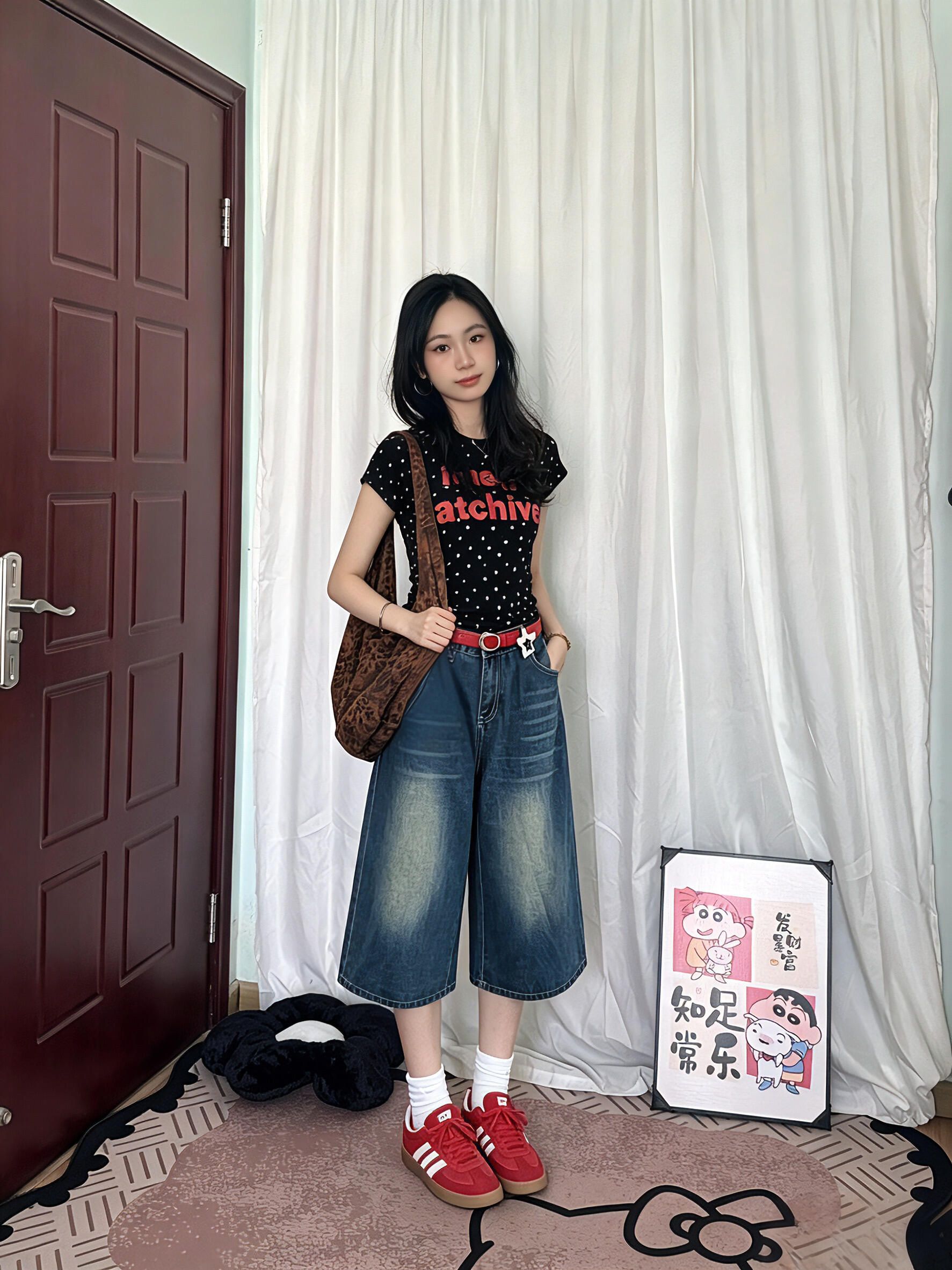 아메리칸 레트로 순면 프린트 반팔 티셔츠 여성