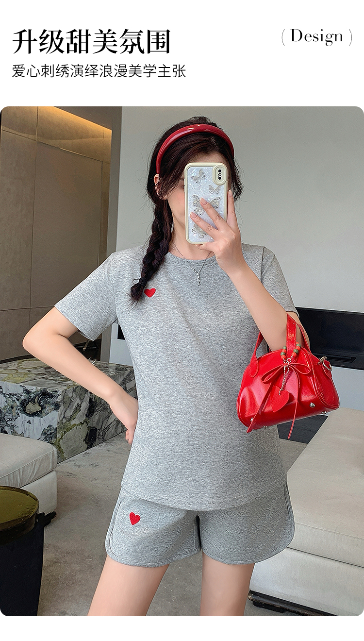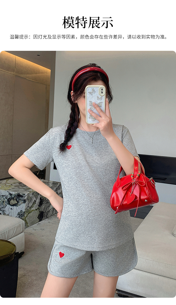 실사 임산부 여름 드레스 새로운 슬림해 보이는 캐주얼 외출용 스포츠 슈트 루즈핏 빅 사이즈 반바지 세트