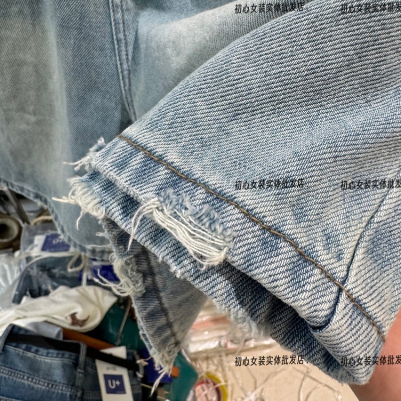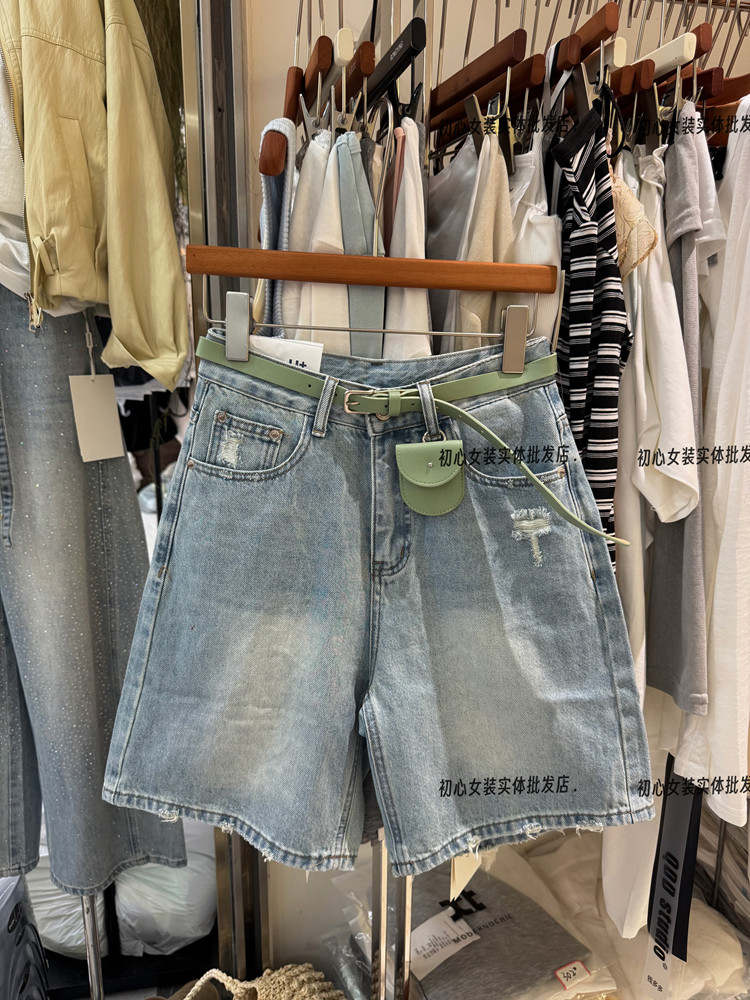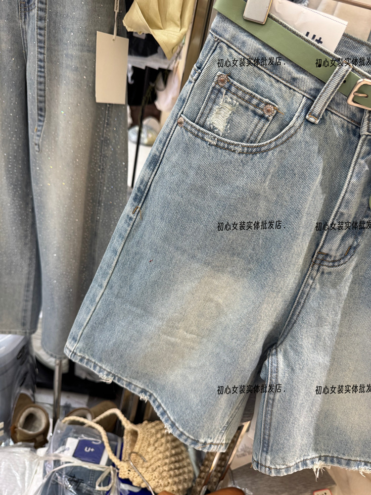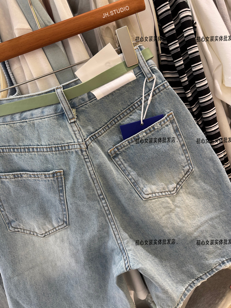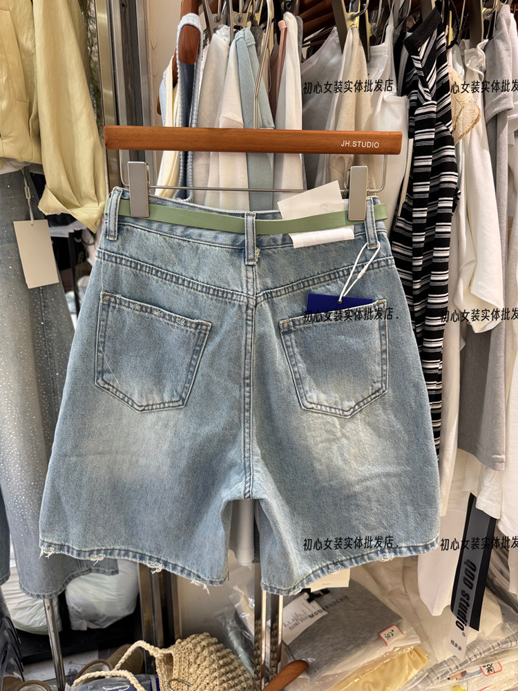 레트로 스타일 하이웨이스트 슬림해 보이는 데님 반바지 여성 26 봄 여름 새로운 찢어진 부분 오부 바지 작은 키 바지 트렌디 601