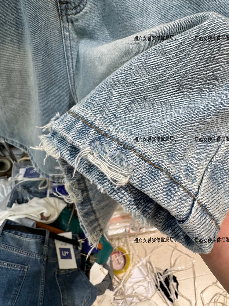 u+ 데님 여름 새로운 한국 스타일 패션 다용도 디자인 센스 하늘색 워시 수색 반바지 청바지 16166