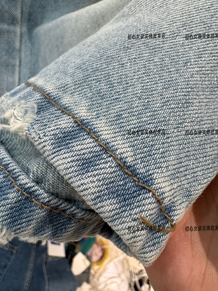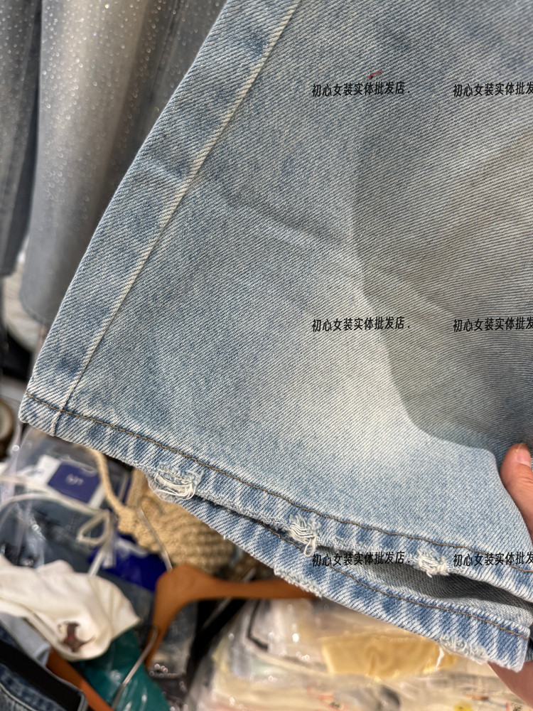 한국 스타일 오리지널 패션 찢어진 자수 데님 7부 바지 실행 싱글 구매 한도