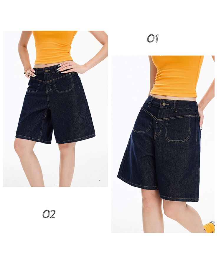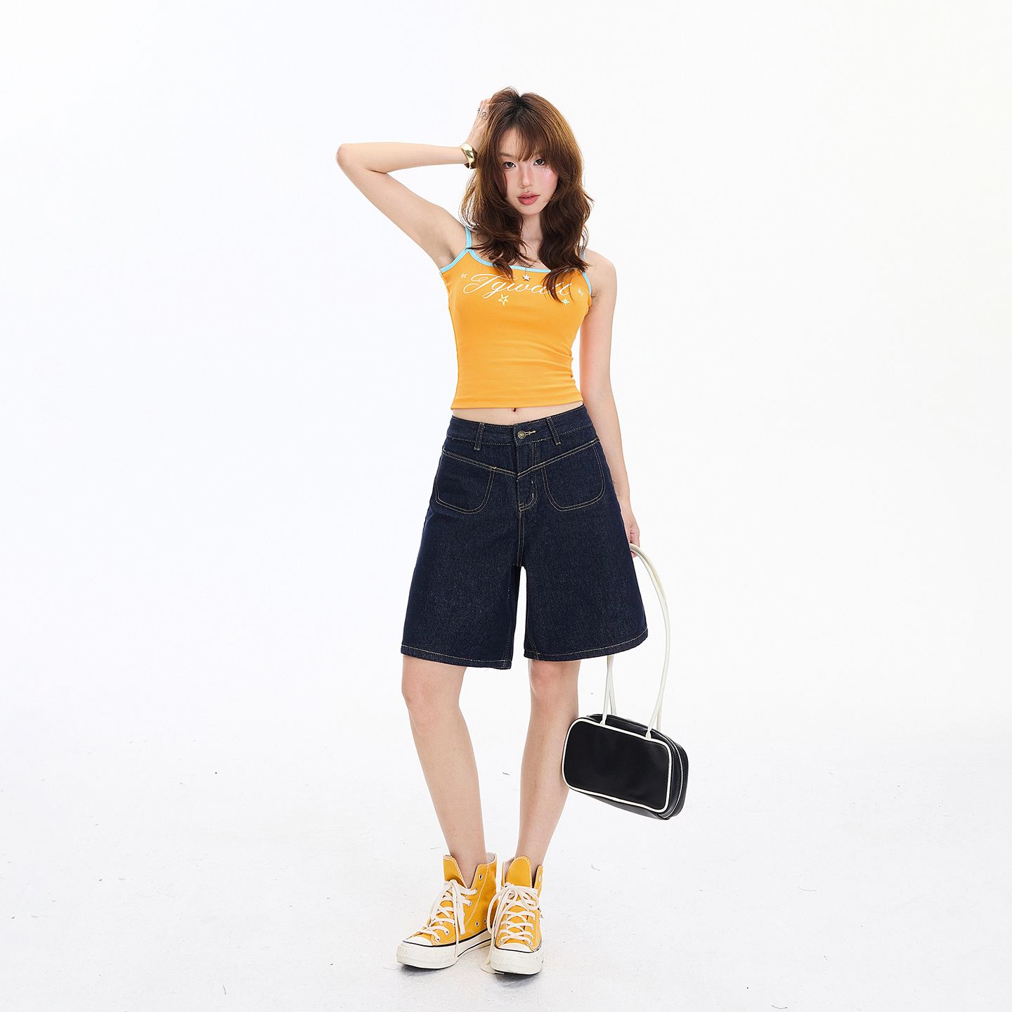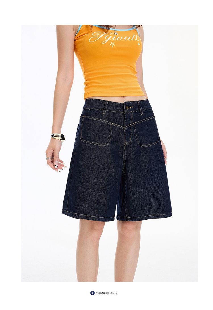 아메리칸 레트로 하이웨이스트 루즈핏 반바지 다용도 슬림해 보이는 여름 새로운 스트레이트 청바지 여성