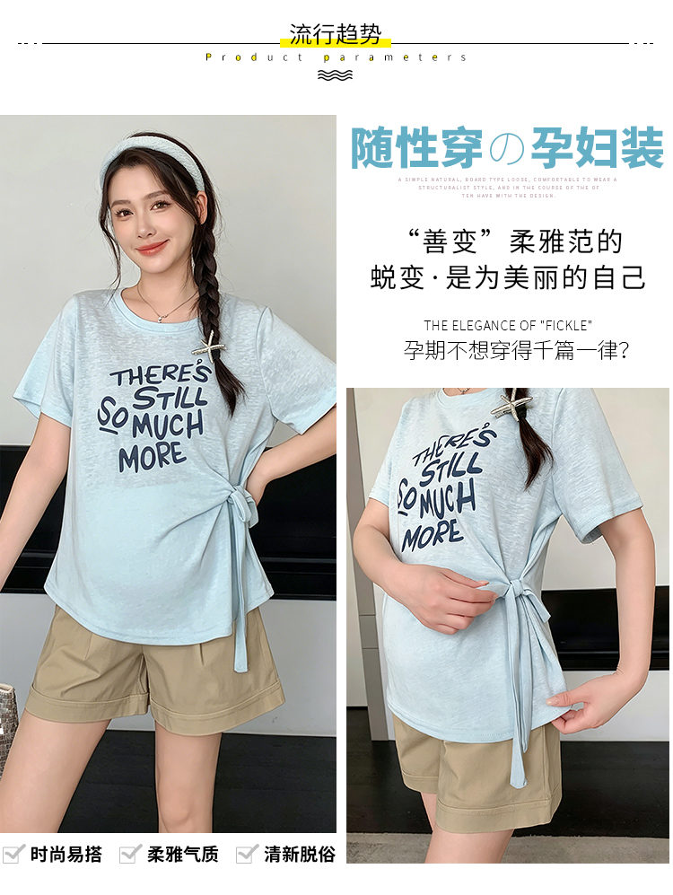 실사 임산부 여름 드레스 새로운 슬림해 보이는 캐주얼 외출용 패션 세트 루즈핏 빅 사이즈 9부 바지 세트